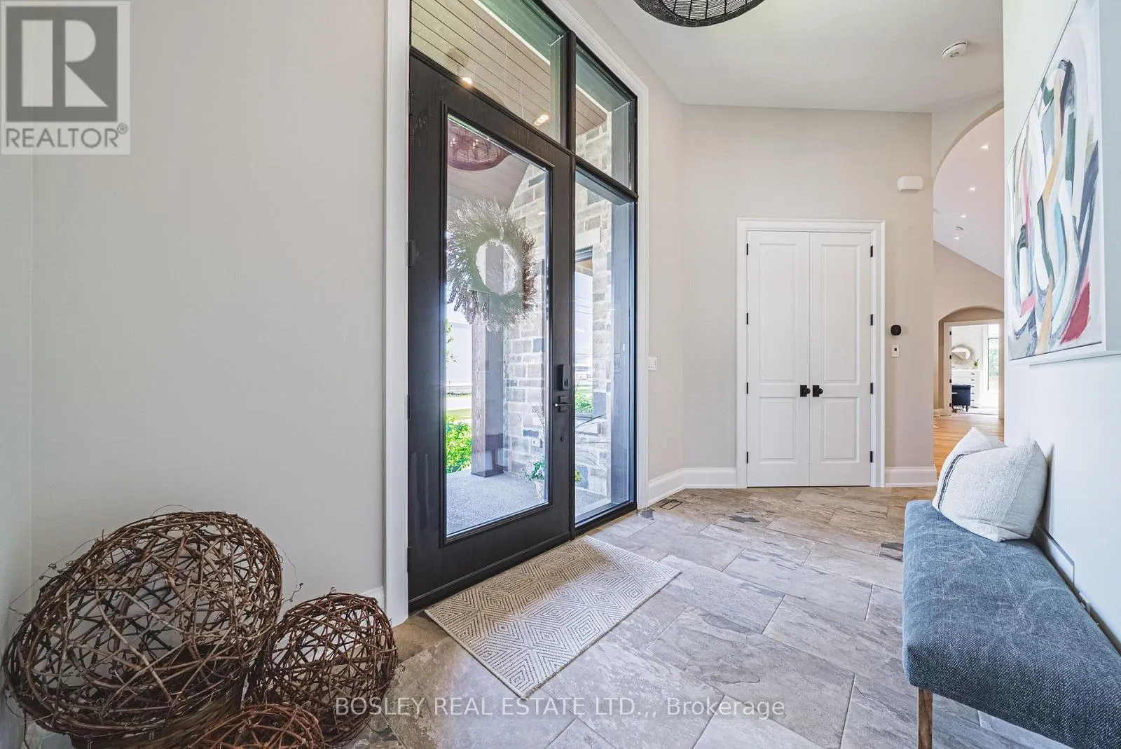Cross Streets: Four Mile Creek Rd/York. ** Directions: North on Four Mile Creek Rd. from York Millpond on Left Side. Discover 110 Millpond Road, a stunning custom-designed bungalow built by Ridgeline Homes, one of Niagara's local boutique builders. Located in the charming Village of St. David's, Niagara-on-the-Lake, surrounded by award-winning wineries, restaurants, and golf courses, all just minutes from Highway 405. The property features professional landscaping, hardscaping and irrigation system, plus a double-wide aggregate driveway and elegant stone walkways leading to multiple tranquil sitting terraces perfect for relaxation. Inside, the open-concept kitchen, living, and dining room is simply breathtaking. The gourmet kitchen boasts custom cabinetry, a massive island, and a stylish butler's pantry. The living room features a gas fireplace with modern mantle surround, while the inviting dining area is ideal for hosting large gatherings. The attention to detail throughout this home is remarkable. Impressive ceiling heights, unique architectural angles and arches, expansive windows flood every space with natural light, creating an airy and sophisticated ambiance. The primary bedroom is a serene retreat with a spacious walk-in closet and a luxurious five-piece ensuite bath, including in-floor heating, a custom double-sink vanity, a deep soaker tub, and a spacious walk-in glass shower. The equally gorgeous second bedroom features vaulted ceilings and warm hardwood flooring, along with a convenient three-piece ensuite privilege bath. The main floor is completed by a highly functional mudroom with ample custom cabinetry and a well-designed laundry room. The lower level is unfinished but fully insulated, offering a fantastic opportunity to create an additional living space of your own creation. (id:27476)