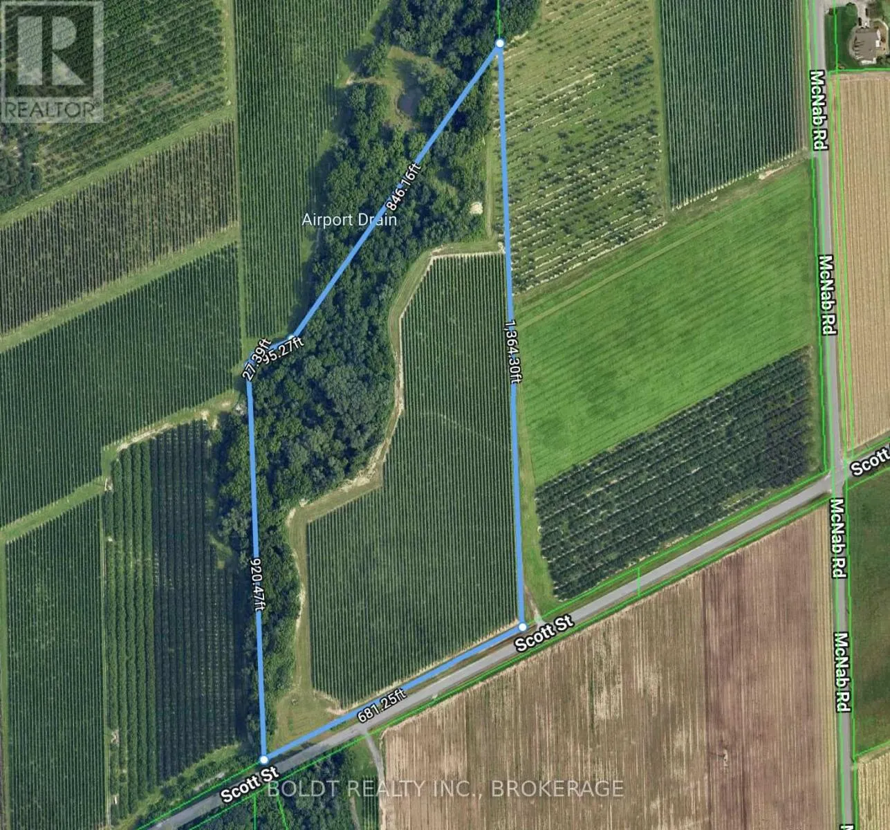 Cross Streets: McNab and Scott. ** Directions: McNab to Scott Street. Exceptional opportunity in Niagara-on-the-Lake. This approximately 15-acre parcel includes +/- 8 acres planted in mature Chambourcin grapes and offers a rare blend of agricultural utility and residential appeal. Vineyard infrastructure includes tile drainage installed on alternating rows. The site features fine sandy loam soils well suited to premium grape production. Zoned Rural (A), the property permits one single detached dwelling, subject to municipal requirements and approvals. Buyers may assume the existing vineyard contract or acquire the property free of contract, and the vendor is open to a vineyard leaseback arrangement. A picturesque ravine with a flowing creek runs through the property, complemented by a mature tree line that provides privacy, natural beauty, and an ideal setting for a custom dream home. The landscape creates a tranquil, estate-like atmosphere while remaining within close proximity to local amenities and Niagara's renowned wine country. A truly special property offering both income potential and an outstanding building lot with long-term value. (id:27476)