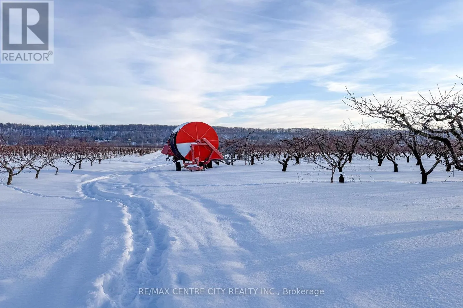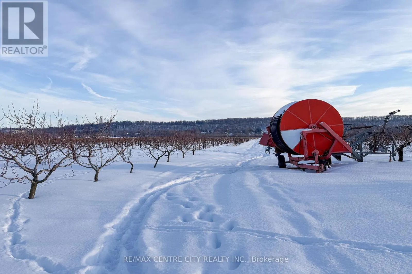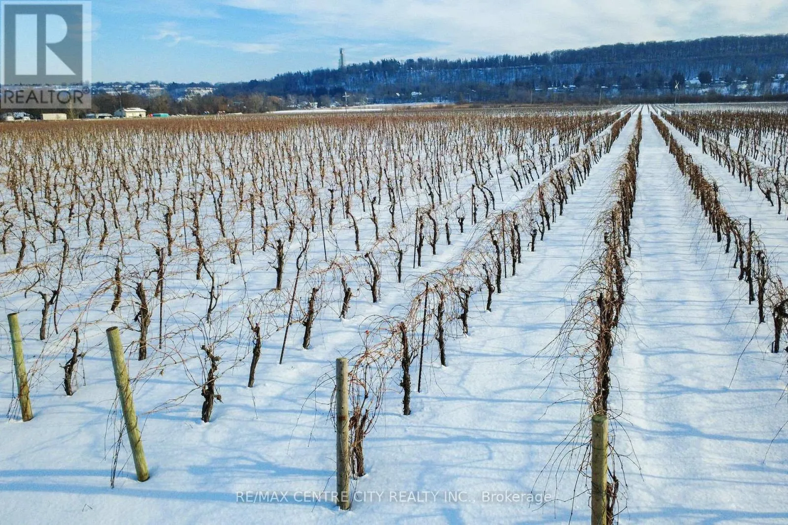 Cross Streets: Concession Road 1 and Liine 9 Road. ** Directions: From Niagara River Parkway head West on Line 8 Road for approximately 900M. At Concession 1 Road/Railroad Street, turn South and the property will be on the Left side of road after approximately 280M. This large parcel of land is tucked up against the beautiful town of Queenston in Niagara on the Lake. This 43.8 acre parcel of land is an established and operating tender fruit farm with a large irrigation pond, diesel powered frost fan, and as some equipment included to add to an existing operation or help an aspiring fruit farmer get started. This productive farm has approx. 12 acres of table grape vines, over 16.75 acres of Peach trees, nearly 5 acres of yellow plums, and 4.33 acres of European dark plums all with systematic tile drainage. The tree/vine varieties have allowed for a balance of workload throughout the season and they perform with excellence here as the niche micro-climate has proven results for the existing farmer. Currently this property is Zoned RA. (id:27476)