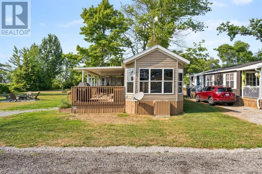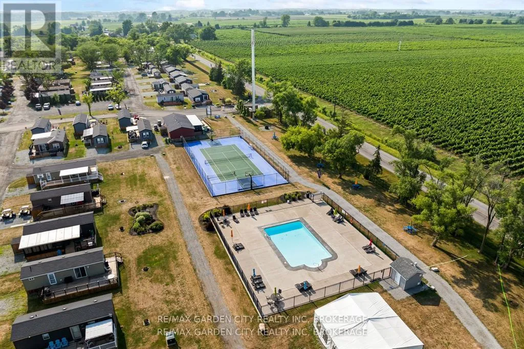 Cross Streets: Niagara River Pkwy. ** Directions: QEW to, 420 to, Stanley Avenue to, Portage Road to, Niagara River Pkwy to, Line 8 Road. Located at Vineridge Resort. Location, Location, Location! Welcome to your perfect Seasonal escape or income-generating investment opportunity the "Breckenridge Finlife Ridge Mobile Home" is situated on a premium lot, located at Vineridge Resort in beautiful Niagara-on-the-Lake. This fully furnished 2-bedroom, 1- bath seasonal resort cottage offers 545 sq. ft. of indoor living space plus a massive 545 sq. ft. covered patio, ideal for entertaining, relaxing, or al fresco dining. Enjoy a rare private lot backing onto a tranquil vineyard with breathtaking sunset views, a peaceful retreat all just minutes from the QEW. The open-concept layout features a well-equipped kitchen, cozy living/dining area, and a 4-piece bathroom, all ready for your family to move in or guests to enjoy. The extended outdoor space includes a full cooking area, dining area, lounge area to kick your feet up. In the yard, a bonus, a fire pit to enjoy on cozy summer evenings. Top it off with a storage shed, and parking for two vehicles. Whether you are hosting family, enjoying a weekend getaway, or renting for income, the possibilities are endless. Resort amenities include a heated in ground pool, splash pad, multi-sport areas; tennis/pickleball/basketball courts, playgrounds, picnic zones, kids Club, scenic walking/biking trails, laundry facilities, EV charging, and available golf cart rentals. Land Leased; Season runs May 1st to Oct 31st. Maintenance fees cover hydro, water, and full access to all resort features. Do not miss this opportunity to own a slice of seasonal paradise in one of Ontario's most desirable vacation destinations, wine country! Visit My Website for further information about this Listing! (id:27476)