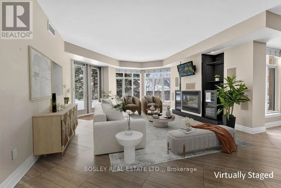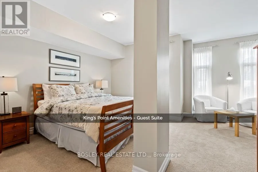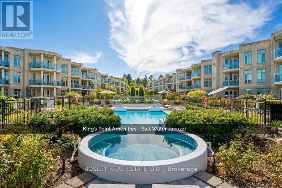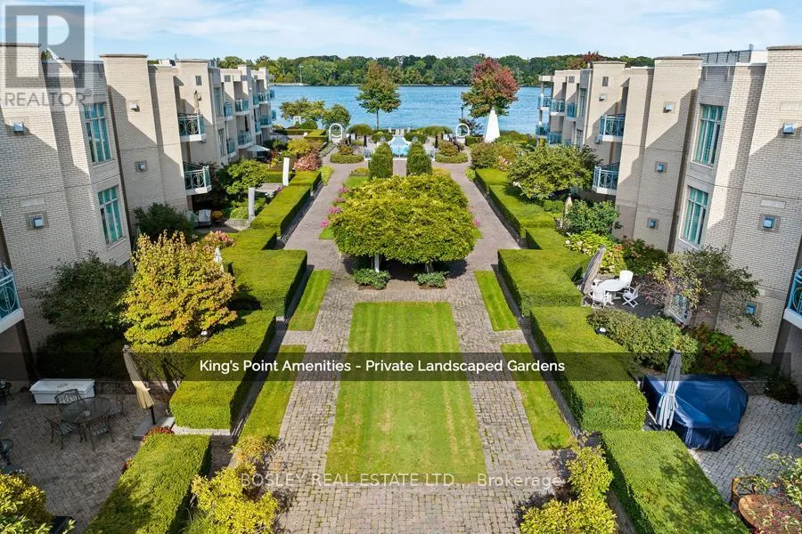 Cross Streets: Ricardo & Melville. ** Directions: Niagara Parkway to Ricardo or King St to Ricardo. Welcome to King's Point -- luxury condominium waterfront living along the Niagara River and in the heart of the Old Town. This upgraded ground floor 1,500 sq ft, 2 bed, 2 bath suite features a spacious living and dining area with a walk out to a large private terrace with a view of the Niagara River. A contemporary, open concept kitchen features over 20 ft of granite countertop with breakfast bar. Included are 9-foot ceilings, gas fireplace, in-suite separate laundry closet, a large pantry and floor to ceiling windows. The primary bedroom offers an extra large walk in closet and ensuite with a large walk-in shower and linen closet. The second bedroom overlooks a private atrium and easily serves as a home office or den. This secluded side of the King's Point complex provides a treed landscape and relaxing "cottage" feel. Enjoy the morning sun with this south east exposure. King's Point amenities include an outdoor salt water pool and spa, Muskoka Chair Terrace overlooking the Niagara River, BBQ Terrace, award-winning gardens, exercise room, Guest Suite booking privileges, underground parking, bike storage, and underground car washing bay. Bell Fibe Internet and TV is included in your condo fees. (id:27476)