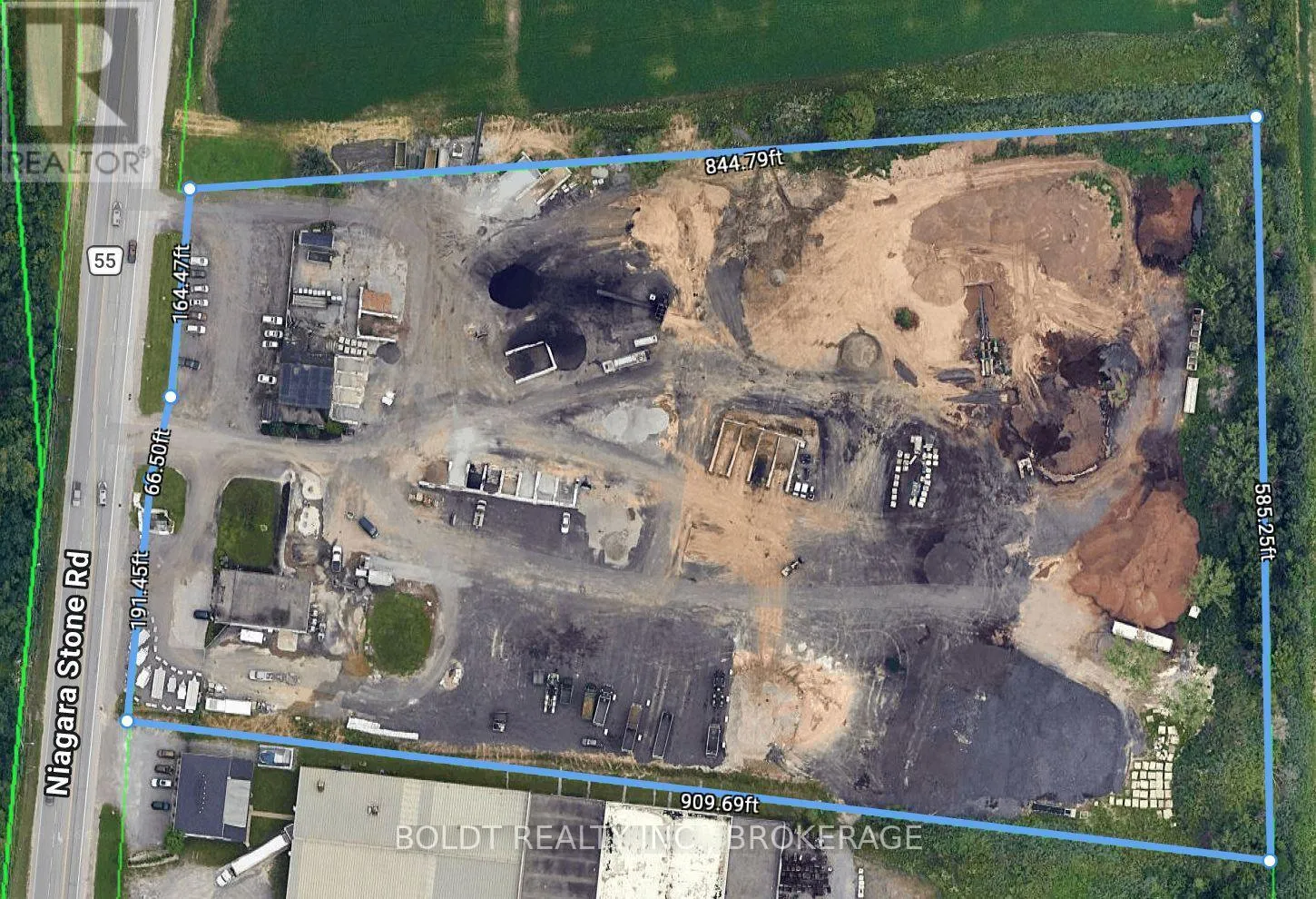 Cross Streets: Queenston Rd and Niagara Stone Road. ** Directions: Queeston to Niagara Stone Road. Rare opportunity to acquire a 9.76-acre property in Niagara-on-the-Lake offering a combination of General Industrial (M2) zoning (+/- 3 acres) on the developed industrial portion and Rural (A) zoning (+/- 6.76 acres) on the balance of the lands. The industrially zoned area contains the existing buildings and primary yard space, while the remaining lands form the agricultural component. Strategically located on Niagara Stone Road with 419 feet of frontage, the property offers exceptional visibility and accessibility. Quick access to the QEW, Highway 406, and U.S. border crossings provides excellent connectivity for logistics, contractor operations, and regional service businesses. Proximity to major transportation corridors and the Welland Canal further enhances the property's appeal for industrial users. The site includes a 2,400 sq.ft. main industrial/retail building and a 4,217 sq.ft. secondary shop building, for a total of 6,617 sq.ft. of building area. The improvements feature four grade-level (drive-in) overhead doors and functional interior space suitable for showroom, storage, workshop, or light industrial operations. Expansive asphalt and gravel yard areas provide ample space for outdoor storage, equipment staging, fleet vehicles, or contractor use. Municipal water service and septic system in place. A unique opportunity to secure a large industrial parcel in Niagara-on-the-Lake with strong frontage, excellent highway access, and significant yard capacity. (id:27476)