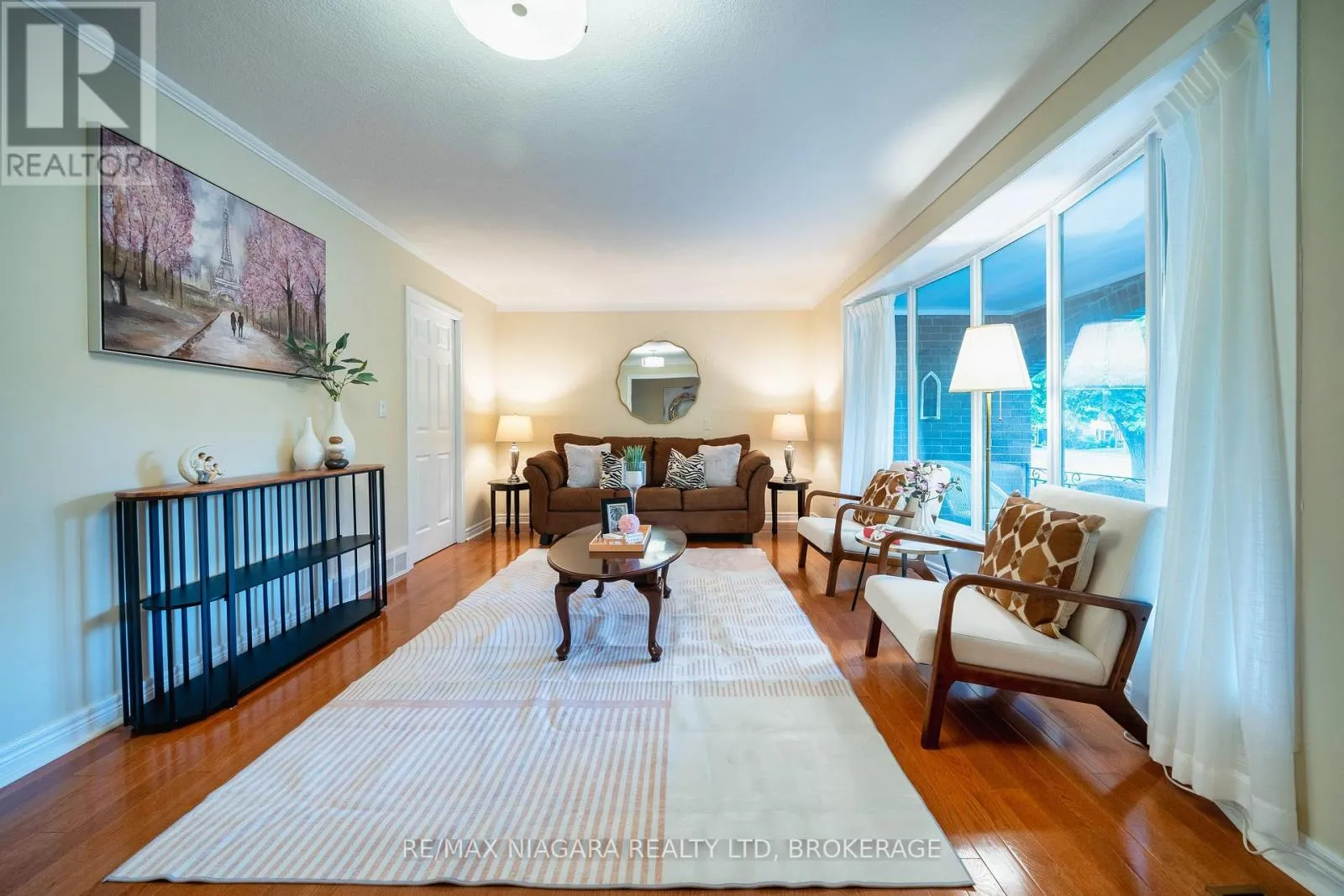 Mary St. & King St. Welcome to this stunning, meticulously maintained home, ideally located in one of Niagara-on-the-Lakes most sought-after neighborhoods. Set among mature landscaping and situated on a large lot, this property offers exceptional privacy both front and back.Flooded with natural light from an abundance of windows, this carpet-free home features a spectacular main-level layout. Enjoy a spacious living room with a cozy fireplace, a formal dining area, and an open-concept kitchen complete with stainless steel appliances, quartz countertops, and ample cabinetry. A bright and inviting family room provides plenty of space for gatherings and entertaining.Upstairs, youll find two generously sized bedrooms, each with its own private 4-piece ensuite bathroom. Just a few steps down, two additional beautifully appointed bedrooms share a 3-piece bathroom.The fully finished lower level offers even more living space, including a fifth bedroom, a laundry room, and a large recreation room perfect for a home gym, media room, or play area.An extra-long circular driveway provides parking for up to 8 vehicles, in addition to a double attached garage.This unique 4-level side-split ho looking for a peaceful retreat, a retirement haven, or an income-generating property, this home is full of opportunity. (id:27476)