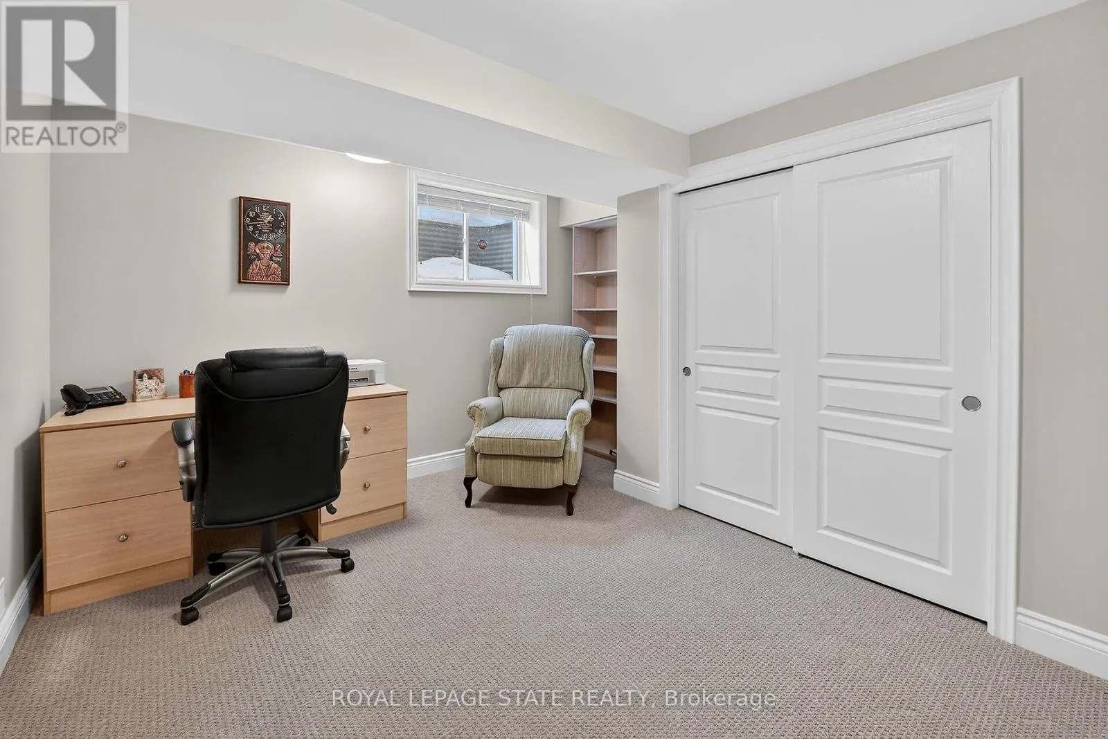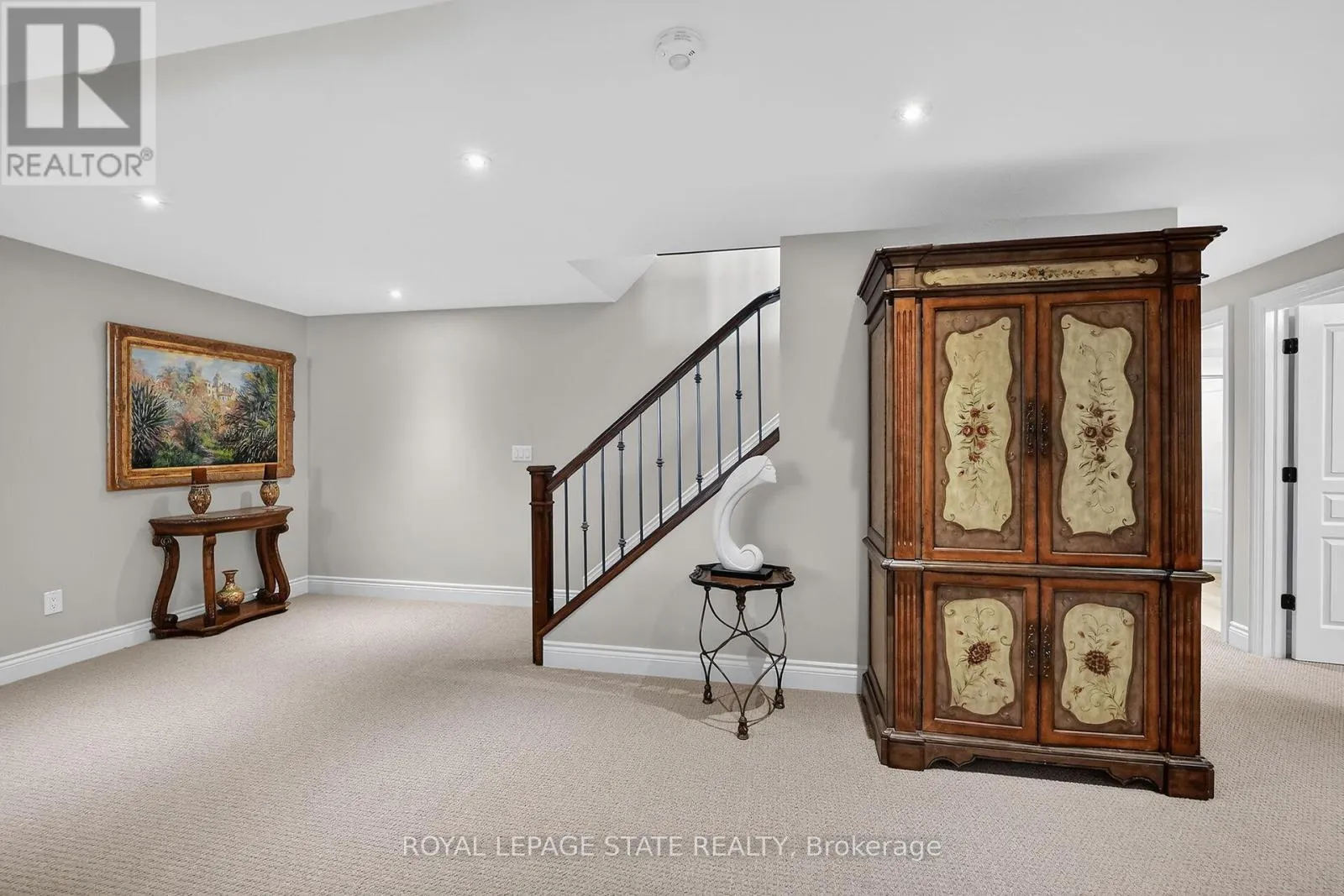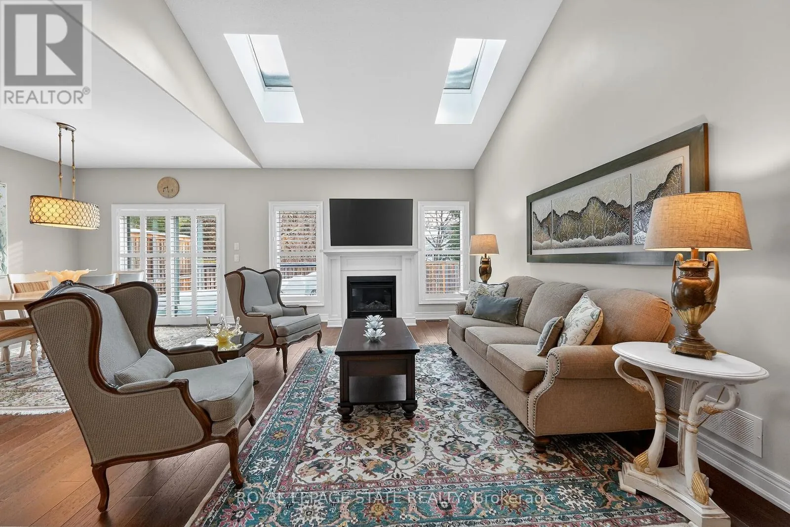 Cross Streets: York & Tanbark. ** Directions: York Road, South on Tanbark, East on Pinecroft. Stunning St. Davids Bungalow Townhome: Unrivaled Privacy & Master CraftsmanshipExperience maintenance-free luxury in this executive end-unit bungalow townhome, perfectly situated in the prestigious St. Davids community. From the moment you arrive, the stone exterior, interlock double drive, and professional landscaping set a sophisticated tone. The interior reveals over 2,200 sq. ft. of refined living space defined by cove ceilings, low-sheen hardwood, and California shutters. The chef-inspired kitchen features premium solid-surface counters, an expansive breakfast bar, and an abundance of cabinetry. Bathed in natural light from skylights and vaulted ceilings, the living room offers a cozy gas fireplace-the heart of the home. Retreat to the primary suite featuring a walk-in closet and private ensuite, or host guests in the airy front bedroom with its own vaulted ceilings. The fully finished lower level feels like an extension of the main floor, boasting large windows in every room, a spacious rec room, two additional bedrooms, and a 3-piece bath. Step outside to your private oasis: a large composite deck with an electric awning overlooking a serene, treed view. Low condo fees cover snow and lawn care, ensuring a lifestyle of pure relaxation. (id:27476)