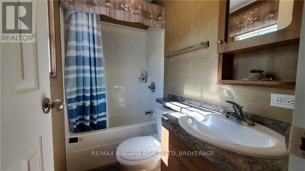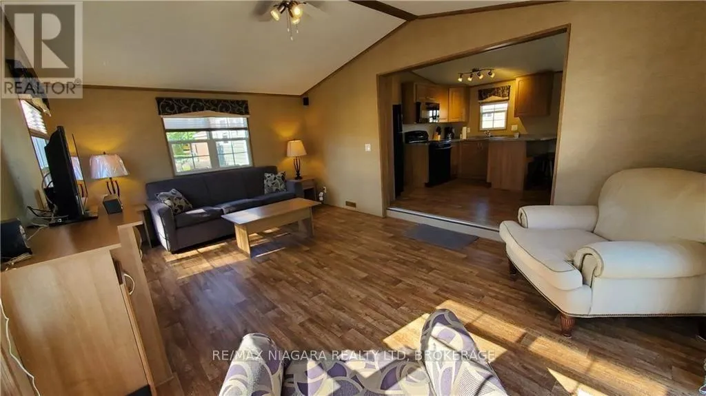 Niagara Parkway to Line 8 Road Vine Ridge Resort is located in the sweetest spot! A short drive to Queenston Heights, Niagara Falls and all the renowned attractions of Niagara-On-The-Lake including the picturesque Niagara River Parkway. This 2014 HEMLOCK model is favored for it's open design and 3 bed 1 bath layout. Extra storage space and roomy for hosting guests! The kitchen opens to the family room and dining area with direct access to the patio. This sought after park includes common amenities such as unlimited use of all resort facilities, WiFi in welcome centre, Kidz Klub, 1 acre splash pad, inground pool multi sport courts, playground and special events, as well as, resort maintenance, water and sewage, hydro, grass cutting. (id:27476)