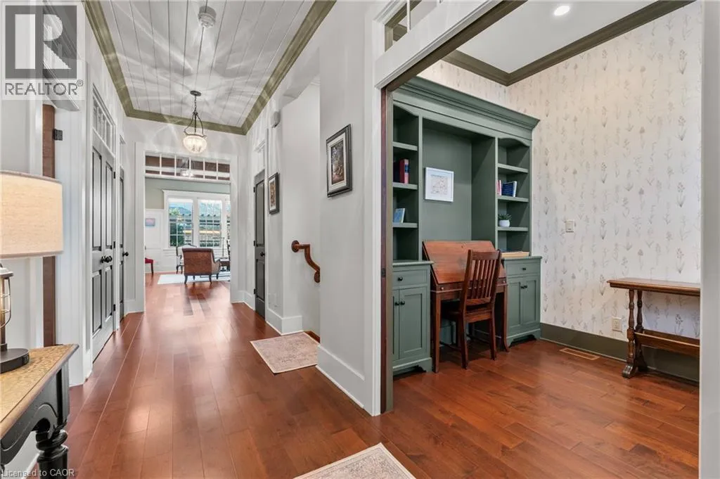 Niagara Stone Rd to Garrison Village Dr to Colonel Cohoe Located in the award-winning community of The Village, this beautifully maintained 3-bedroom + den, 3-bathroom townhome offers quality craftsmanship and an ideal lifestyle setting just minutes from wineries and Old Town Niagara-on-the-Lake.The main floor features a bright, open-concept living and dining area, complemented by a well appointed kitchen with upgraded appliances and over 9' ceilings. The spacious primary bedroom includes a walk-in closet and private ensuite, along with the convenience of main-floor laundry.The fully finished lower level extends the living space with in-floor heating, a generous bedroom, dedicated office/den, 4-piece bathroom, and ample storage, perfect for guests or additional living flexibility.Outside, enjoy a fully fenced private courtyard with a pergola covered seating area surrounded by mature garden beds. A single-car attached garage adds everyday convenience.Built by Brooklite as one of the original homes in the community, this property has been meticulously maintained by its original owners. Located within walking distance to scenic trails, the Medical Centre, and the shops, restaurants, and historic charm of Old Town Niagara-on-the-Lake, as well as the Community Centre and Library.An exceptional opportunity to live in one of Niagara's most sought after and vibrant communities. (id:27476)