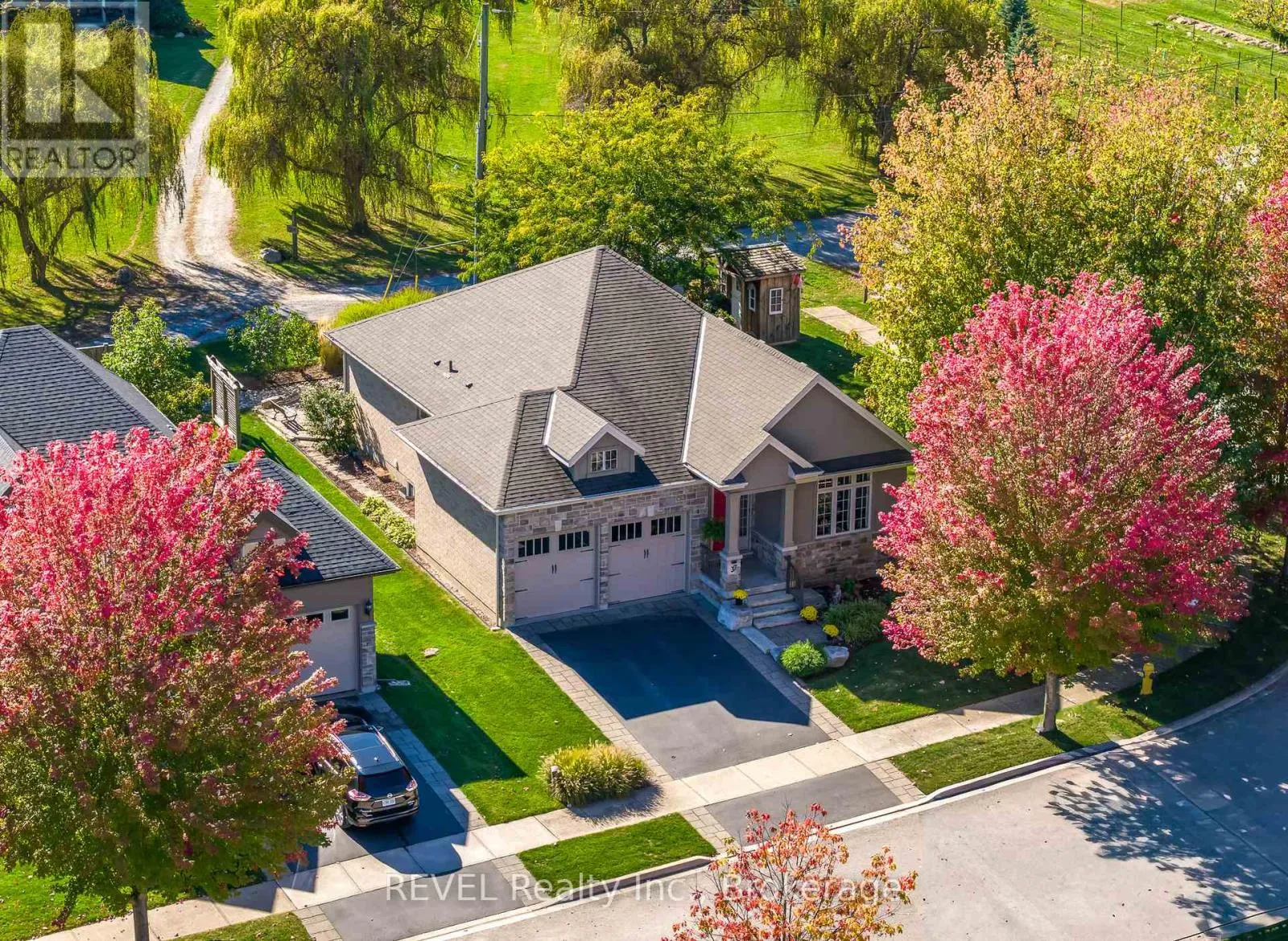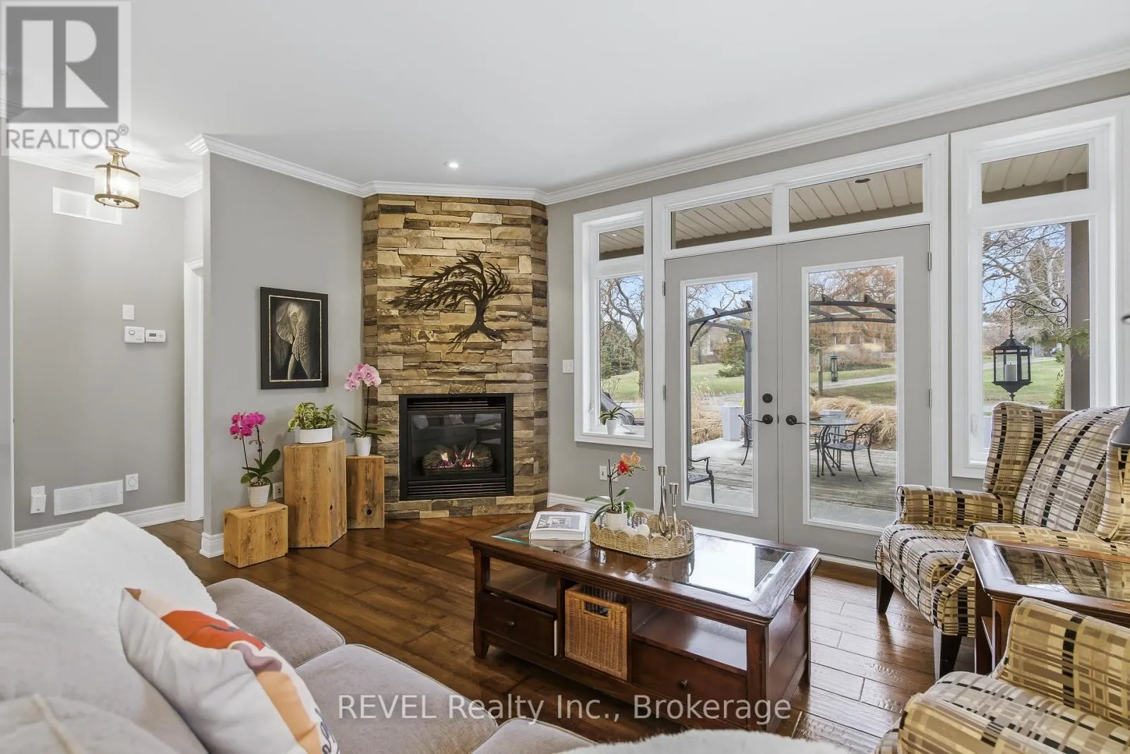 Cross Streets: York Road/Tanbark. ** Directions: QEW to Glendale exit towards Niagara-on-the-Lake right on York Road, Right on Tanbark, Right on Hickory. This stunning custom-built bungalow boasts 3 bedrooms, 3 full bathrooms, a tastefully designed finished basement and approximately 2500 square feet of total living space. Perfectly positioned on a generous corner lot, this home offers enhanced privacy, and scenic views on a quiet street. Nestled in the desirable town of St.Davids, this coveted neighbourhood of Niagara-on-the-Lake is the epitome of wine country living and convenience. Stroll to award winning wineries, renowned restaurants, boutiques and cozy cafes. The open concept main floor offers 2 bedrooms, 2 full bathrooms with heated floors, 9 foot ceilings, gas fireplace with stone feature wall, Phantom screen, French doors leading to backyard, an abundance of windows for ample natural light, crown moulding, upgraded baseboards and trim and an additional laundry hook-up. The spacious main floor primary suite is a serene retreat, featuring a large walk-in closet and a spa-like ensuite with heated floors, double sinks and an oversized shower. Recent updates include wide plank engineered hardwood, updated countertops and kitchen cabinetry (w Lee Valley double sided pantry), an oversized 71" island.. Additional living space continues in the basement with 8 foot ceilings & upgraded trim, a spacious guest bedroom with adjacent full bath with infrared sauna. The entertainer's dream rec room includes a gas fireplace with built-in cabinetry and shelving, built-in speakers, pool table and workshop. Plenty of space and comfort for you and your guests. Outdoor living shines with a covered porch, expansive deck, and stone patio- perfect for your morning coffee, or sunset dinners with friends and family. Completing the backyard is a storage shed, and opportunity awaits to create a large vegetable garden with south-western exposure. For added convenience you will enjoy the central vac, automatic garage door openers with remotes, a newer furnace (2020), new stove and fridge (2024), and above the range microwave (2020). (id:27476)