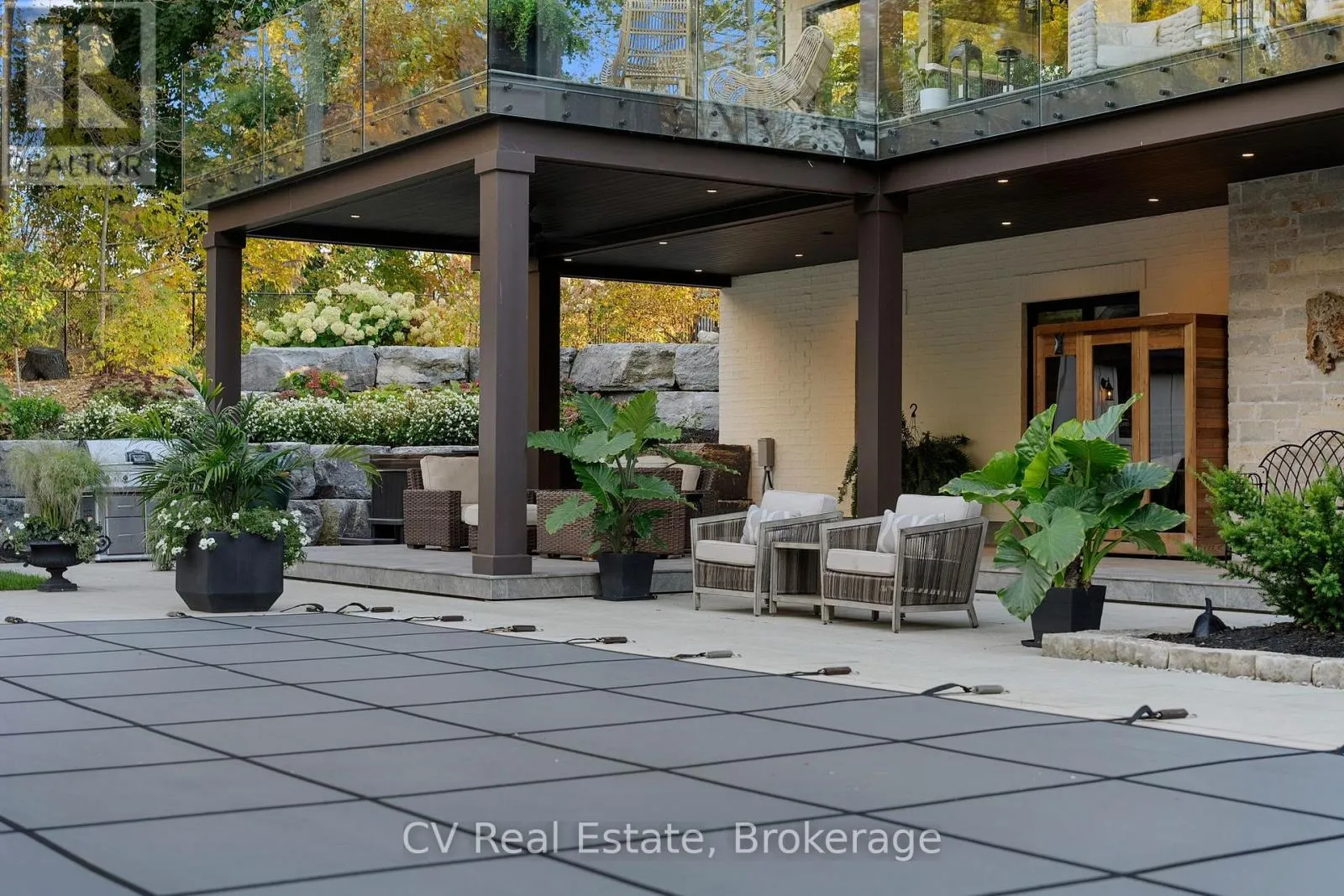 Off of Mississauga St. at the end of William St, next to circle street. Presenting a stunning estate in historic Niagara-on-the-Lake, this custom home plus lots 4 & 5 at the front of the property features a modern French Country style of private, wooded landscape. Offering ultimate privacy, the property is steps from the lake and a short walk to charming shops, restaurants, theaters, and golf courses, providing a vibrant lifestyle. Enter through an elegant stone entrance into a foyer adorned with crystal chandeliers, setting a luxurious tone. The formal living room boasts a cozy cast stone gas fireplace, creating an inviting space for entertaining. The expansive great room features a vaulted ceiling with exposed beams and large windows that fill the space with natural light. A delightful sunroom provides a serene retreat for morning coffee, while the upper deck has a gas fireplace for cozy evenings outdoors. The gourmet kitchen is a chef's dream, complete with granite countertops, a Sub-Zero refrigerator, Wolf induction cooktop, and a spacious walk-in pantry for ample storage. The main-level primary suite features walk-in closets and a luxurious ensuite with elegant finishes. Descend to the lower level, where you'll find a family entertainment area, a pool deck, sauna, hot tub, wine cellar, and four additional ensuite bedrooms, ensuring plenty of space for family and guests. Beautifully landscaped grounds create an ideal setting for outdoor entertaining and relaxation, making this extraordinary home a perfect blend of luxury &comfort. Truly no other estate like this one. (id:27476)