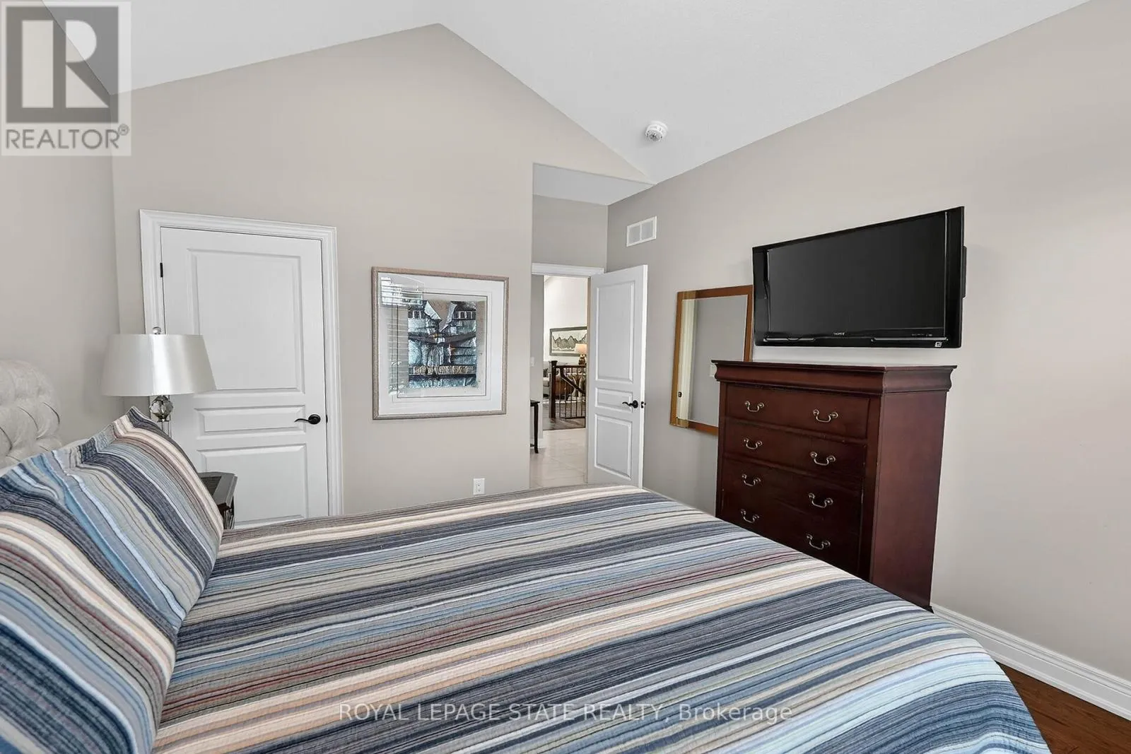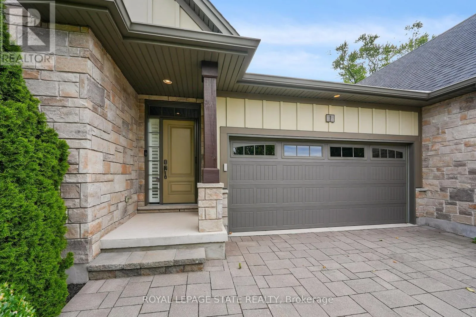 Cross Streets: York & Tanbark. ** Directions: York Road, South on Tanbark, East on Pinecroft. Stunning St. Davids Bungalow Townhome: Unrivaled Privacy & Master Craftsmanship - Experience maintenance-free luxury in this executive end-unit bungalow townhome, perfectly situated in the prestigious St. Davids community. From the moment you arrive, the stone exterior, interlock double drive, and professional landscaping set a sophisticated tone. The interior reveals over 2,200 sq. ft. of refined living space defined by cove ceilings, low-sheen hardwood, and California shutters. The chef-inspired kitchen features premium solid-surface counters, an expansive breakfast bar, and an abundance of cabinetry. Bathed in natural light from skylights and vaulted ceilings, the living room offers a cozy gas fireplace-the heart of the home. Retreat to the primary suite featuring a walk-in closet and private ensuite, or host guests in the airy front bedroom with its own vaulted ceilings. The fully finished lower level feels like an extension of the main floor, boasting large windows in every room, a spacious rec room, two additional bedrooms, and a 3-piece bath. Step outside to your private oasis: a large composite deck with an electric awning overlooking a serene, treed view. Low condo fees cover snow and lawn care, ensuring a lifestyle of pure relaxation. (id:27476)