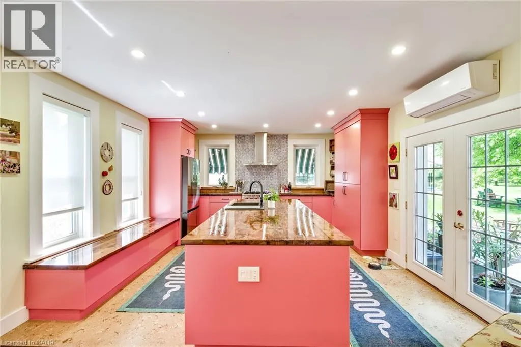Take Townline Rd to Queenston Rd. Welcome to 519 Queenston Road, a rare and remarkable offering set on a stunning 1.2-acre lot in the heart of Niagara-on-the-Lake. Just moments from award-winning wineries, renowned dining, The Shaw Festival Theatre, and world-class golf, this exceptional property captures the very best of the regionâs celebrated lifestyle. This charming two-storey home radiates pride of ownership, blending timeless character with thoughtful modern upgrades. Inside, a chef-inspired redesigned kitchen (2023) anchors the home, while sophisticated principal rooms, built-in living room shelving, and tasteful finishes throughout create warmth, function, and style. Custom exterior awnings add both charm and comfort, enhancing the homeâs inviting indoor-outdoor appeal. Step outside to enjoy serene mornings on the private terrace or relaxed summer days by the recently added 20' x 40' inground pool (2022), surrounded by professionally landscaped gardens filled with vibrant perennials and mature shrubbery. A spacious detached two-storey garage with finished upper level offers incredible flexibility as a home office, creative studio, or future guest suite. All south-facing windows have been treated with 3M UV film protection, helping preserve interior finishes and improve energy efficiency. Additional upgrades include an elegant upstairs bathroom (2022), new main level bath (2023), furnace and AC (2024), heat pump (2023), numerous new windows, and a complete septic system (2022). Whether envisioned as a full-time residence, a country retreat in wine country, or a stylish pied-a-terre for a Toronto buyer seeking a refined escape in NOTL, this property also holds exceptional appeal as a cottage or second home. Peaceful yet connected, it offers a rare opportunity to own a truly special retreat in one of Ontarioâs most desirable communities. (id:27476)