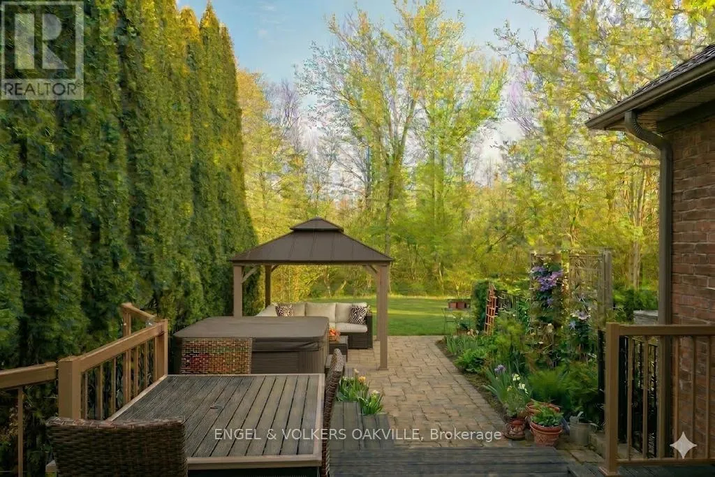 Cross Streets: Charlotte Street. ** Directions: John Street right on Charlotte Street and right on James Street. Tucked away on a quiet cul-de-sac, just a short stroll from the Historic Commons and downtown, this exceptional custom-built Lifestyle Homes residence offers refined living in a truly private setting. Built with the highest quality materials and thoughtful design throughout, this impressive two-storey home features 5 bedrooms and 4 bathrooms, ideal for both everyday living and entertaining.A stamped concrete driveway and patio lead to a large, private side garden, complete with a multi-zoned irrigation system, hot tub, and gazebo-perfect for relaxing or hosting outdoor gatherings. Backing onto a wooded area, the property offers an uncommon level of privacy rarely found so close to town.Inside, a dramatic Great Room with fireplace sets the tone for the home's open and airy feel, complemented by gleaming hardwood floors throughout. The well-appointed galley-style kitchen features granite countertops, high-end appliances, and a bright eat-in area, seamlessly connecting to the inviting family room with a second fireplace and large windows that flood the space with natural light.The main-floor primary suite is a private retreat, offering vaulted ceilings, large windows, a walk-in closet, and a spa-inspired ensuite with air tub. Upstairs, two additional bedroom suites with fireplaces provide comfort and privacy for family or guests.The fully finished lower level extends the living space with two more bedrooms and a recreation room, ideal for guests, hobbies, or a home gym. A double car garage completes this outstanding property.A rare opportunity to enjoy custom craftsmanship, privacy, and walkability-this home delivers an exceptional lifestyle in one of the area's most desirable locations. (id:27476)