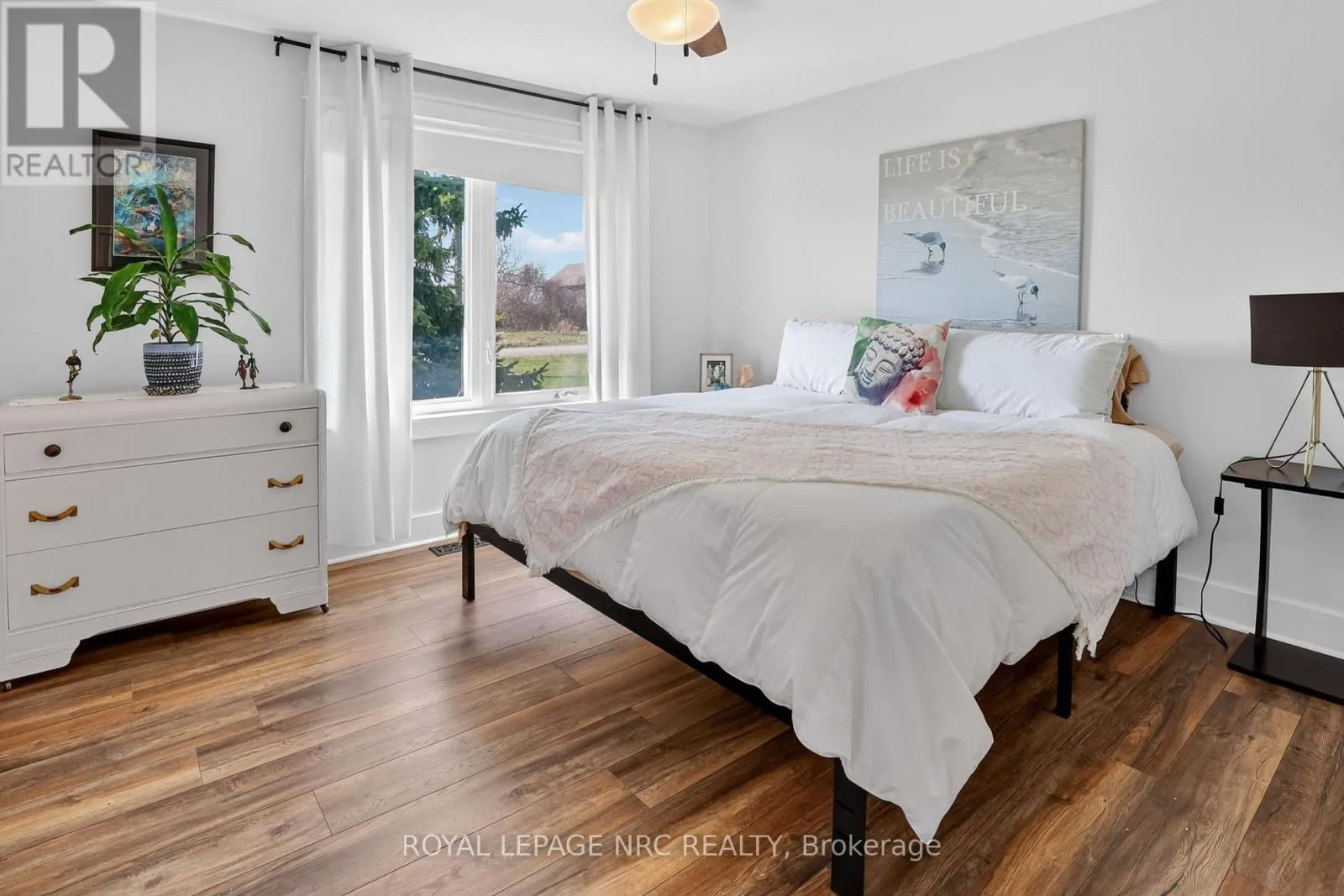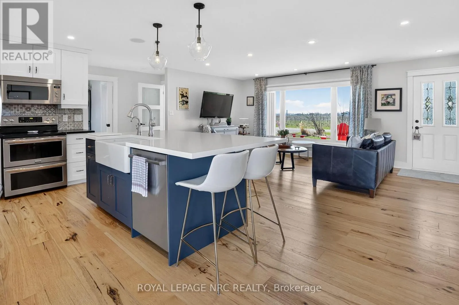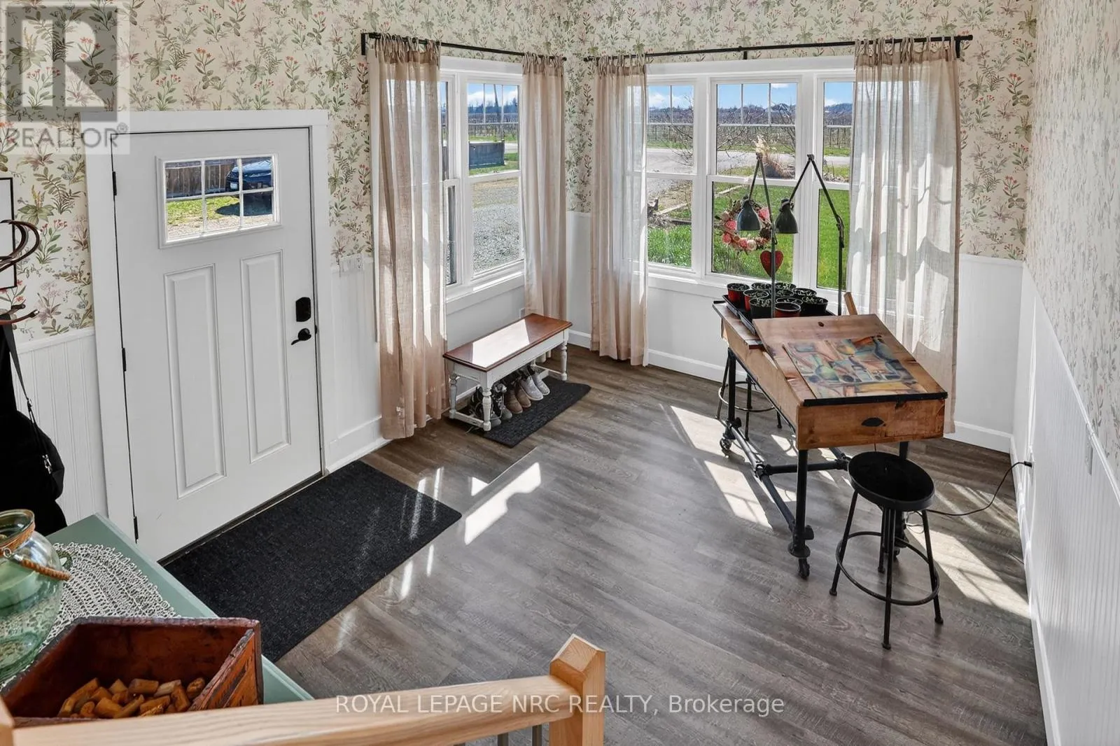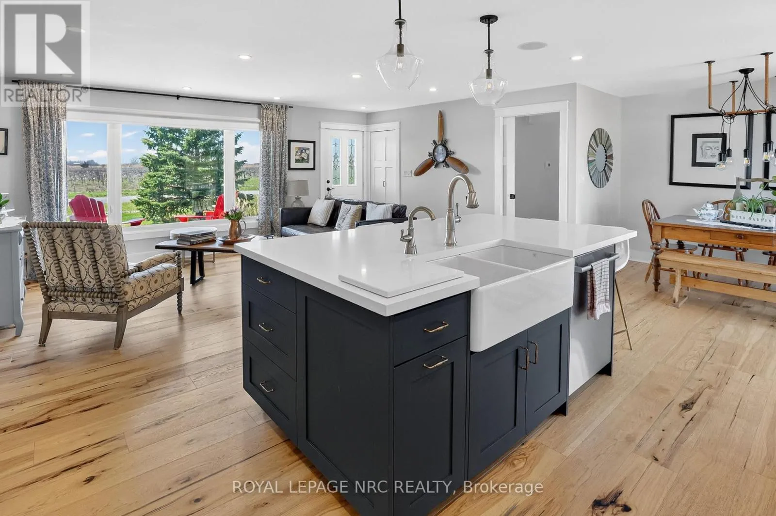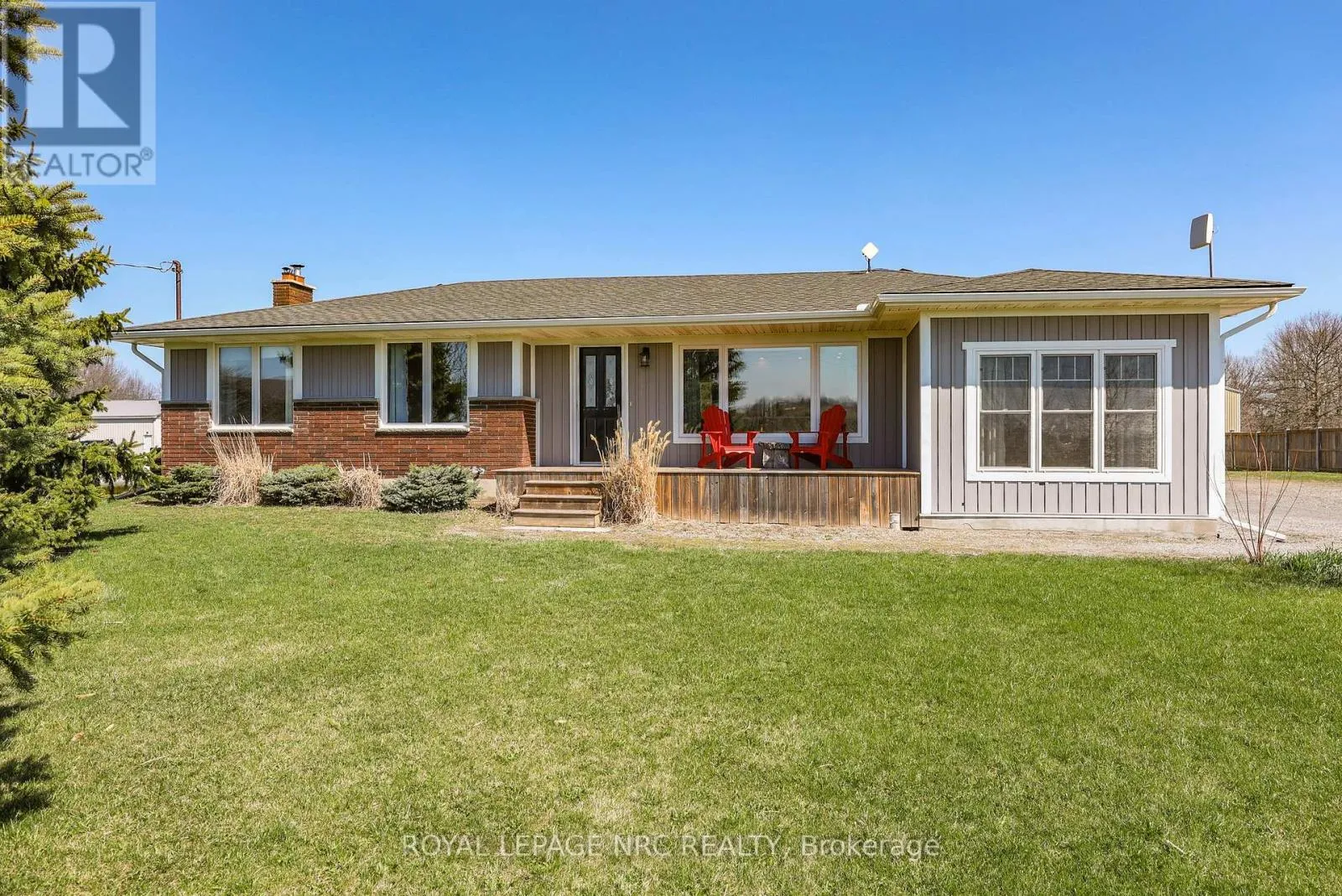 Cross Streets: Concession 5 Rd & Line 6 Rd. ** Directions: QEW to Glendale Ave N then turn right on York Rd then turn left on Concession 7 Rd then turn right on Line 6 Rd then left on Concession 5 Rd. Imagine ending your day on your front porch or in the great room watching vivid sunsets wash over the neighboring grapevines. This immaculate bungalow offers a picturesque lifestyle in rural Niagara-on-the-Lake, set on a sprawling .9 acre lot surrounded by vineyards and farmland. Living here means immersing yourself in the Niagara lifestyle, with world-class wineries, farm-to-table restaurants, and the historic charm of downtown Niagara-on-the-Lake just a short drive away. This 3 bedroom, 2.5 bathroom renovated home feels like a country retreat. The floor plan is designed for functionality, featuring a main-floor laundry and a dedicated mudroom that leads out to an expansive 34' x 16' deck. Open concept great room, dining and kitchen has a warm, natural feel with engineered hardwood. 7.5 ft patio door from the dining area leads to the entertaining sized deck. Kitchen space balances modern function with "farmhouse charm", featuring a center island, perfect for morning coffee, anchored by a classic apron-front sink that adds a timeless country flair. Triple-glazed windows in the bedrooms & great room "frame" the view (2022). Updates include furnace, AC, electrical panel, septic tank & bed, added attic insulation and so much more. For the hobbyist, a DETACHED OVERSIZED GARAGE (33' X 26'11") with hydro and a long double driveway offer plenty of space for hobby projects and parking. The property itself is a dream for those seeking a connection to the land, complete with two pear trees and established raspberry bushes. Start a vegetable garden or just take time to enjoy nature. Experience the beauty of the Niagara countryside from a home where so much has already been done. Easy access to city amenities and highway access. The Sunroom is not included in square footage of the home. (id:27476)