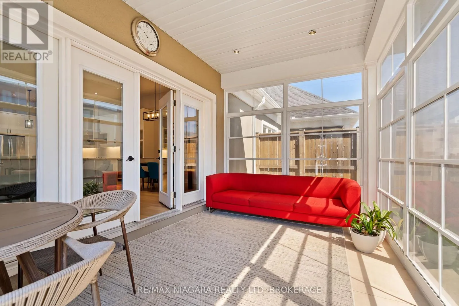 Cross Streets: YORK & FOUR MILE CREEK. ** Directions: FOUR MILE CREEK TO MILLPOND TO MILLS LN. Welcome to the Vintages in Niagara-on-the-Lake, a sought-after enclave in the heart of St. Davids known for its strong sense of community and seasonal gatherings, offering exceptional value through luxury, maintenance-free living. This quality-built bungalow, built in 2021, offers over 2,500 sq ft of finished living space, featuring 3 bedrooms and 3 full bathrooms, thoughtfully designed with engineered hardwood flooring, Silestone premium countertops and backsplash, a built-in speaker system, and an abundance of storage throughout. The main living and kitchen area are highlighted by impressive 11-foot ceilings, creating an open, airy feel that enhances both everyday living and entertaining. The home provides a peaceful, quiet interior-ideal for those concerned about condo living-along with efficient heating and cooling costs, an air exchanger, furnace-mounted humidifier, and an owned on-demand hot water heater. The primary ensuite features a glass walk-in shower, offering both a modern touch and ease of accessibility. Enjoy seamless indoor-outdoor living with a bright 3-season sunroom, in-ground sprinkler system, and a spacious two-car garage complete with built-in storage. Perfectly positioned, this home is just minutes from the charming shops, restaurants, and waterfront of Old Town Niagara-on-the-Lake, while also being a short drive to the everyday conveniences of Stamford Centre, offering grocery stores, major retail, and dining options. Additionally, it is within walking distance to Ravine Vineyard Estate Winery, St. Davids Golf Club, and a variety of local cafes, placing you in the heart of Niagara's wine country lifestyle. Condo fees are just $258/month and cover landscaping and winter maintenance, making this an exceptional opportunity to enjoy refined, low-maintenance living in one of Niagara's most desirable communities. (id:27476)