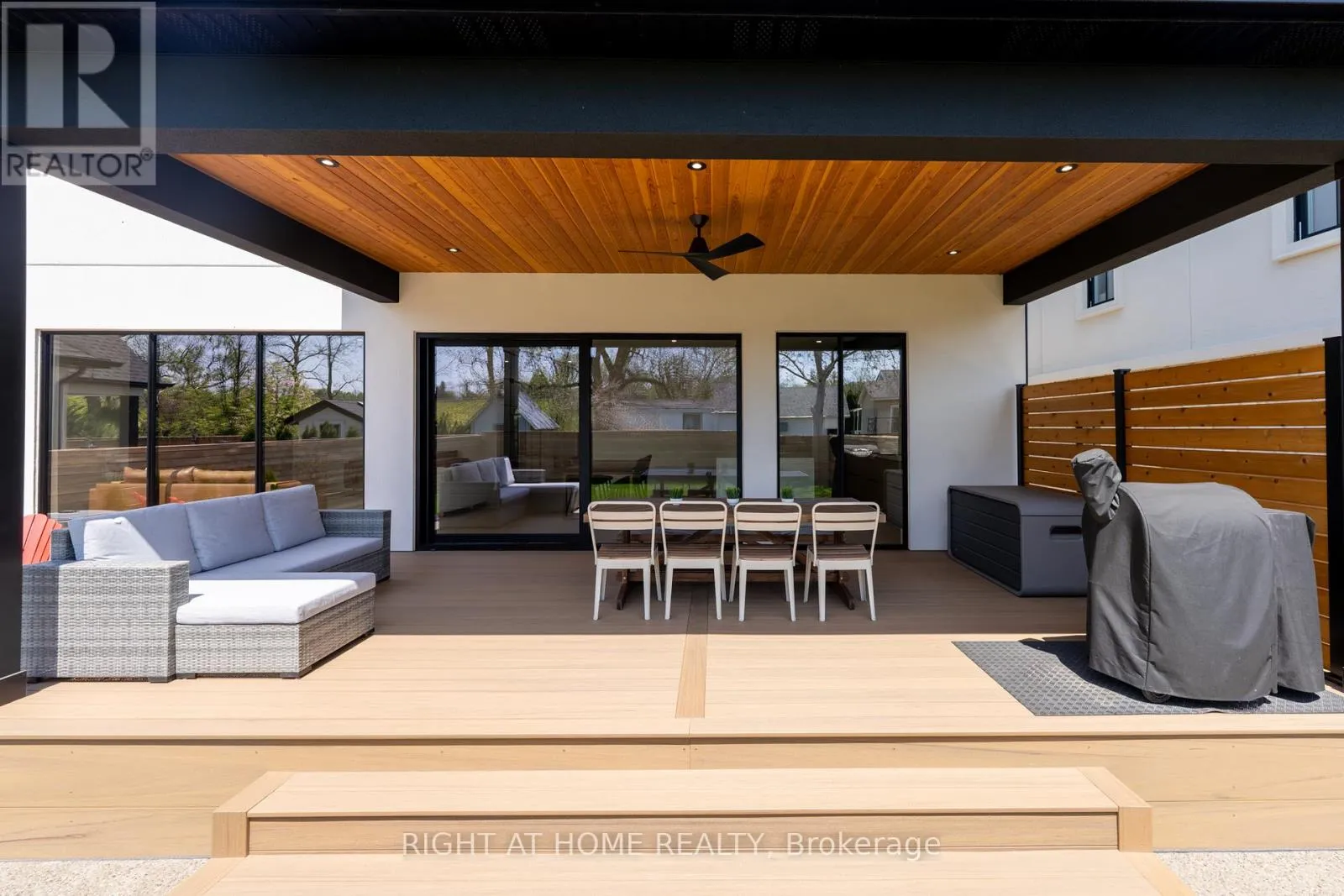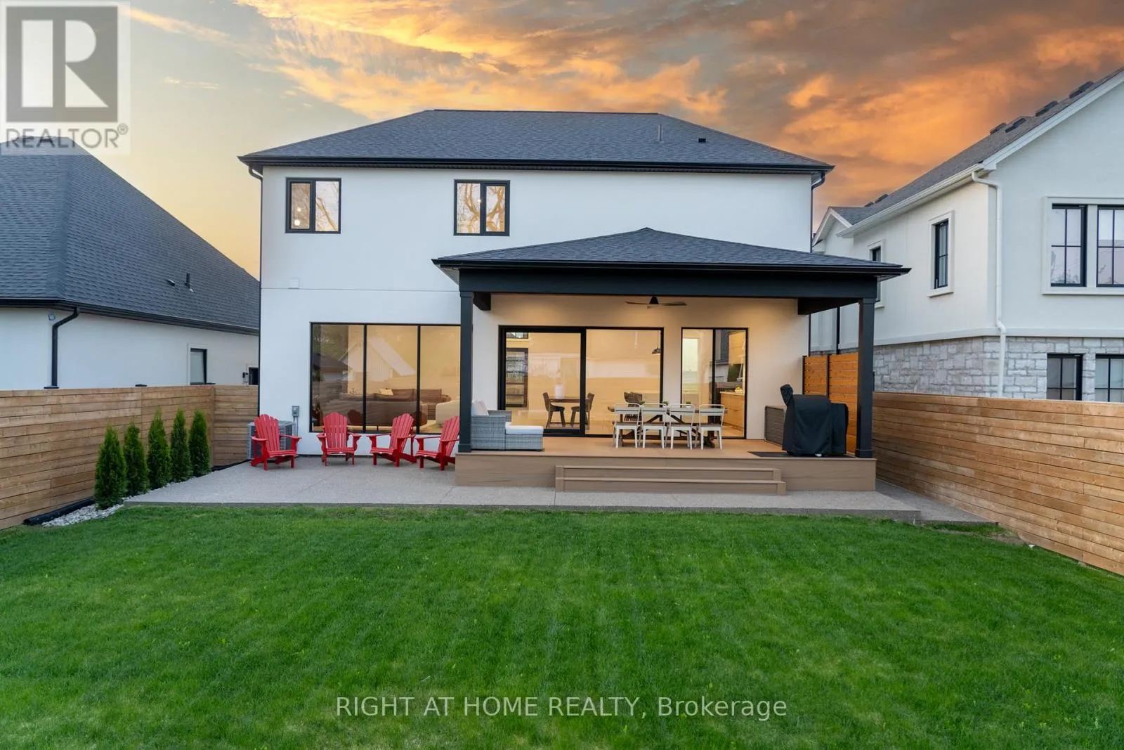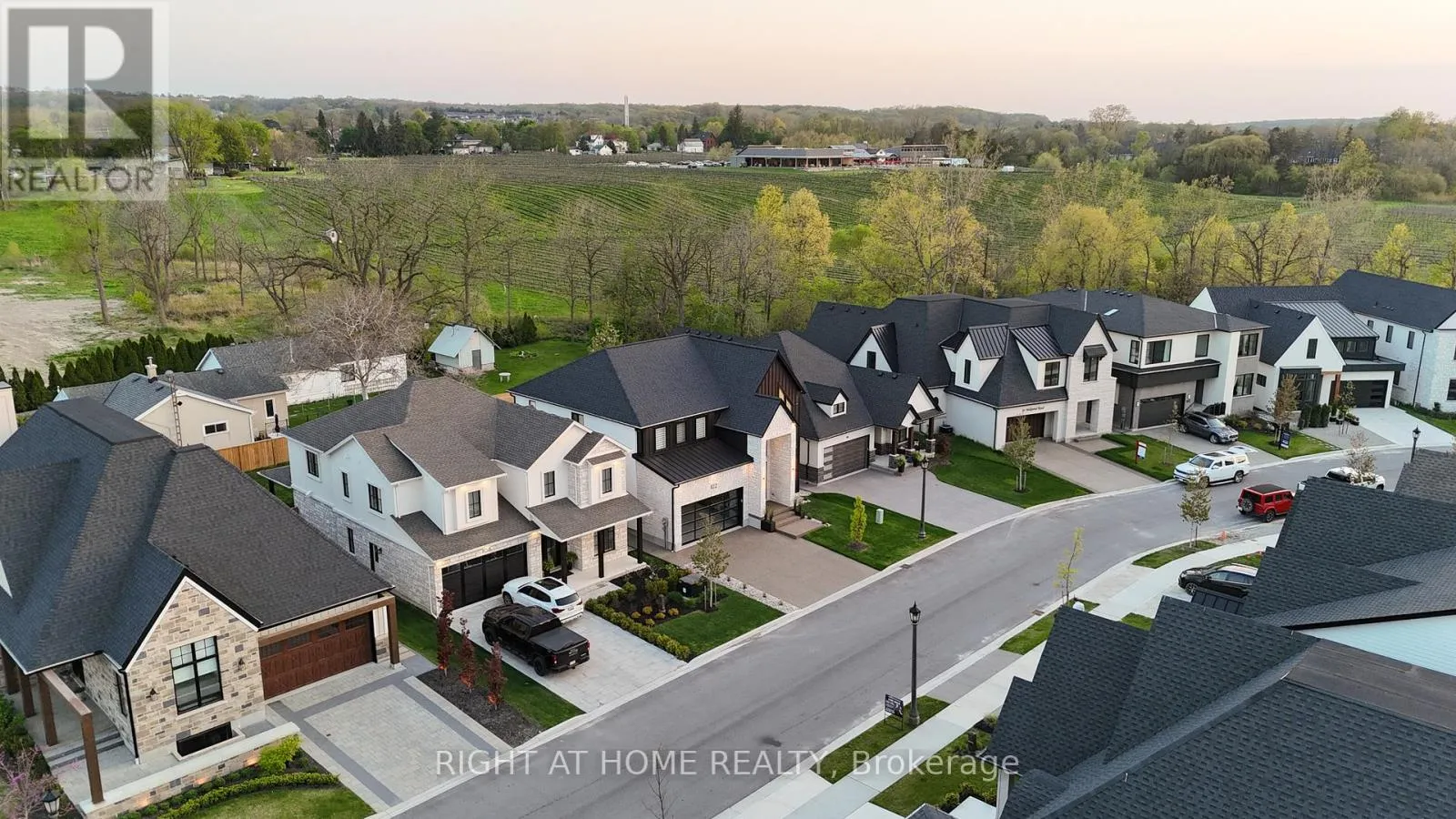 Cross Streets: YORK RD - FOUR MILE CREEK RD. ** Directions: YORK RD left to FOUR MILE CREEK RD left to Millpond Rd. Welcome to 102 Millpond Rd, a stunning custom built home offering over 4,300 sq ft of luxurious living in the heart of prestigious St. Davids. The striking exterior blends stone, sleek glass, hardie board, stucco & a concrete driveway with exposed aggregate - all creating a clean, upscale authentic with lasting durability. Step inside to discover a modern open-tread staircase, 10-ft ceilings, wide-plank engineered hardwood flooring & European style tilt-and-turn windows. The designer kitchen is the showpiece with premium built-in appliances, a 10-ft quartz waterfall island, seamless slab backsplash, & a walk-in pantry with built-in cabinetry. An oversized sliding door opens to a large covered composite deck with spectacular vineyard views, a lower patio, in-ground irrigation & a fully fenced, professionally landscaped yard - perfect for entertaining or serene relaxation. Main floor highlights include a bright dining & living area with a chic, minimalist gas fireplace, private office enclosed by a floor-to-ceiling glass wall, a laundry room with integrated storage & convenient access to the double car garage. Upstairs, the primary suite offers a spa-like retreat with a soaker tub, oversized walk-in rainfall shower, dual vanity & a walk-through closet complete with custom shelving. Three additional bedrooms each feature their own ensuite access, providing comfort and privacy for family or guests. The fully finished basement boasts a sprawling rec room with show stopping 100-inch electric fireplace with a granite stucco surround, luxury vinyl flooring, a 5th bedroom & a stylish full bathroom. Ideally located just minutes from local coffee shops, award-winning wineries, top-rated golf courses & the charm of Old Town Niagara-on-the-Lake. (id:27476)