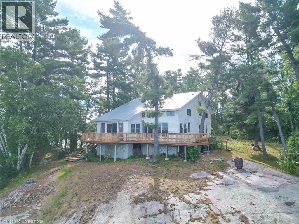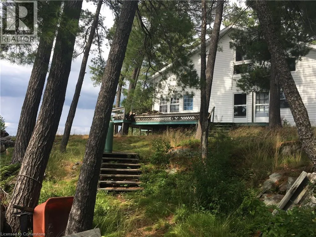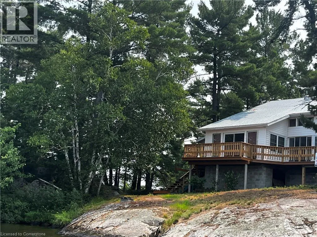 Take Hwy 64 to Lavigne. 5 Minute boat ride to the Island in Mid West Bay of Lake Nipissing Welcome to your Piece of Paradise This beautiful Island and gorgeous 2 story home is nestled in a quiet Bay on the West End of Lake Nipissing. This home has 5 separate entries which is located high on the island with a sensational view of Mid West Bay on Lake Nipissing. The 3 bedrooms are wonderful for any size family or guests and enjoy your mornings or evenings in your own screened in sunroom. The main floor has a wonderful wood burning fireplace for those colder evenings. The wrap around deck has been recently renovated and the metal roof and elevated block foundation means little maintenance. This home is powered by Solar Energy and Propane and has an efficient Holding Tank. Enjoy the beauty of Lake Nipissing and all the water activities suited for your family. Only 3.5- 4 hour drive to the GTA. This home is ready for occupancy, but could use further refinements if desired. (id:27476)