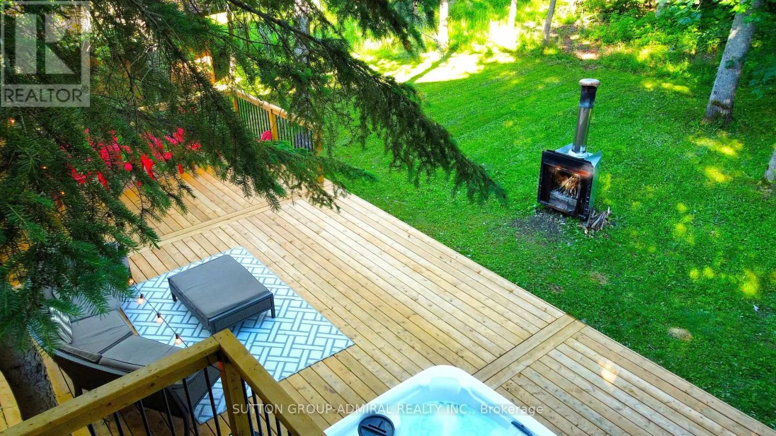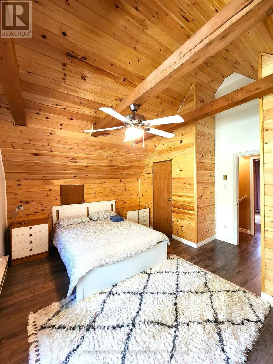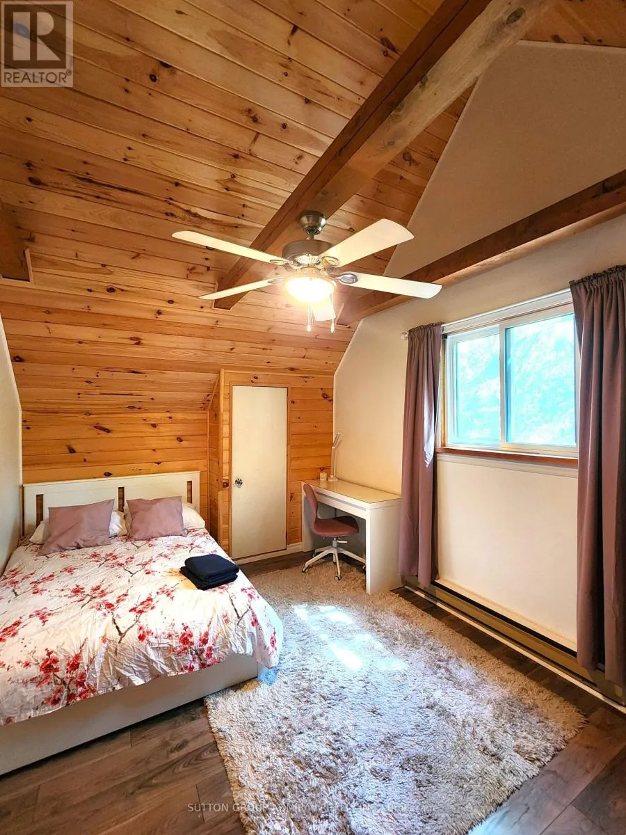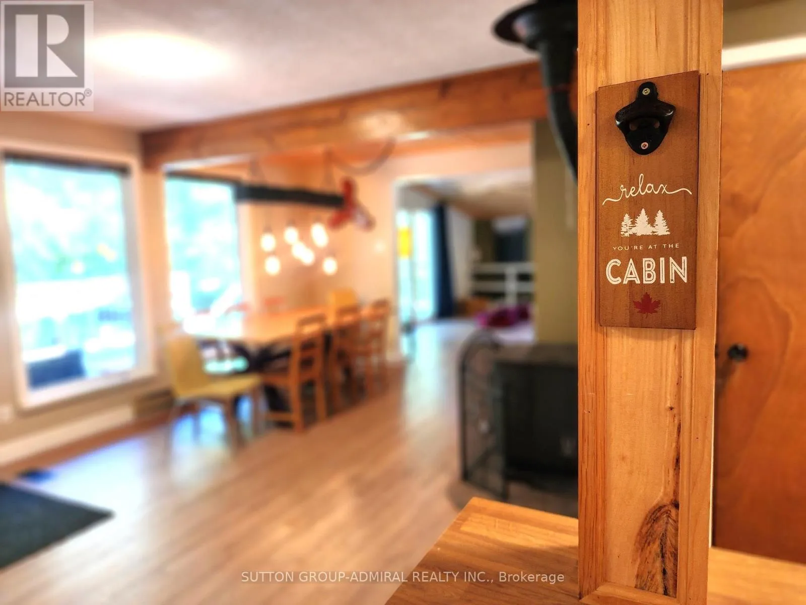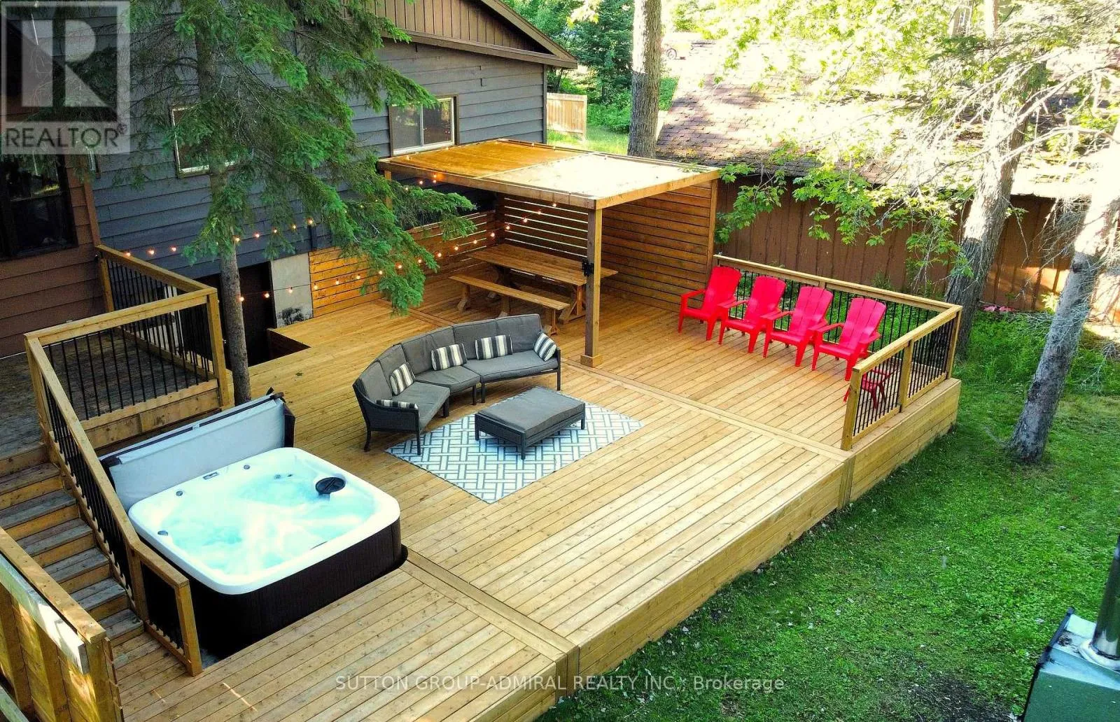 Cross Streets: Waltonian / Pine. ** Directions: Across from Waltonian Inn. Detached home w/ thousands in recent upgrades right in the heart of Lake Nipissing fishing community, this 1.5 storey home w/ dbl detached garage on over 2 acres across from the Lake. Exuding rustic vibes as you drive in, the home is complemented by a 2020 built house-wide front composite deck, Massive deck in the rear w/ a hot tub, cedar siding, metal roof, and trees everywhere - Features 4 bedrooms, 2 baths, open concept rustic design with wood beams, and pine ceilings. The basement is unfinished, and left to your creative finishings but features a spare room, a large laundry room/walkout to the back yard, and utility room with ample storage. The double garage and driveway can help store all your toys w/ a workshop at the back. Backyard is private, plenty of room for a firepit, for a dog to run, or a garden. (id:27476)