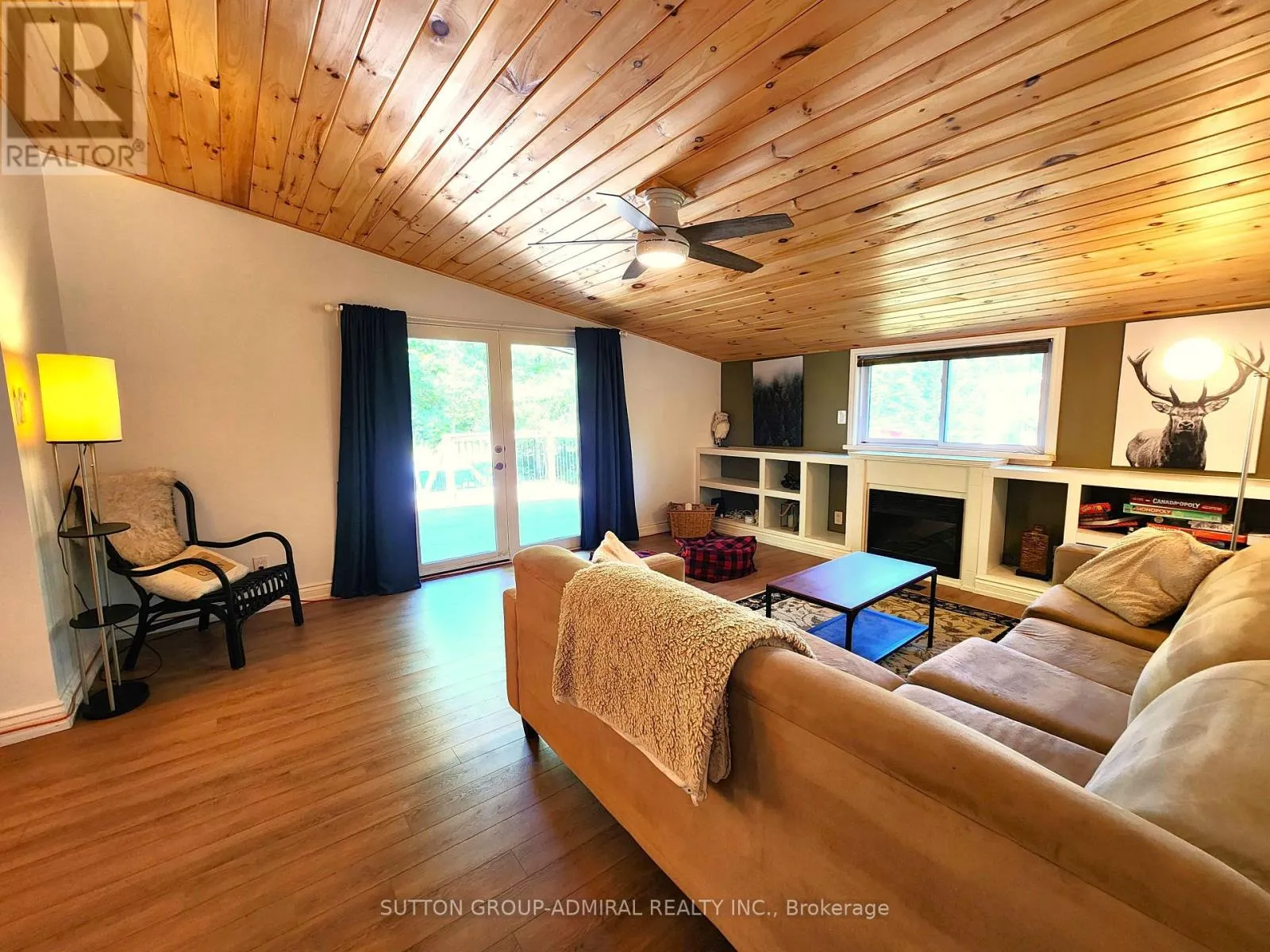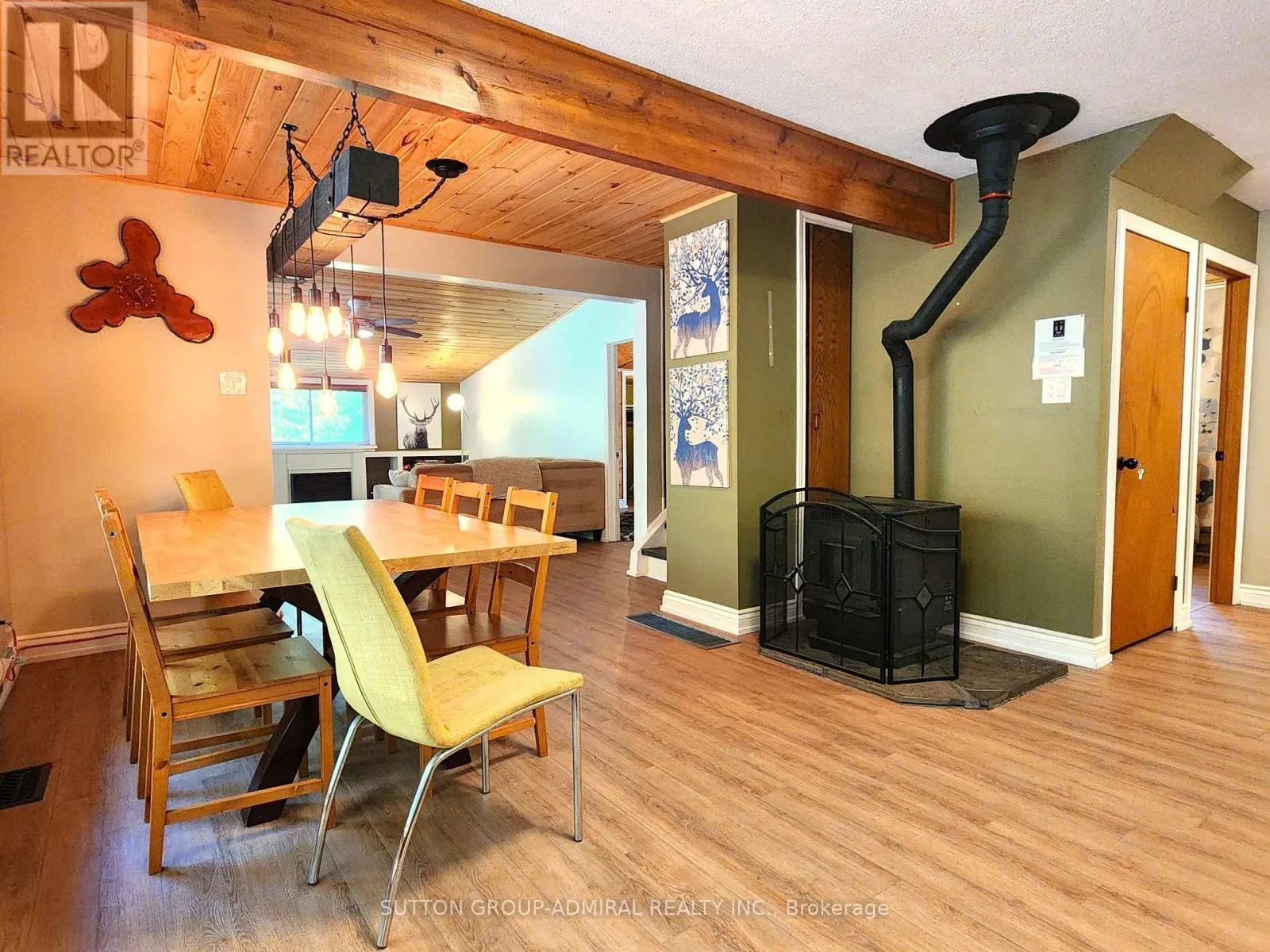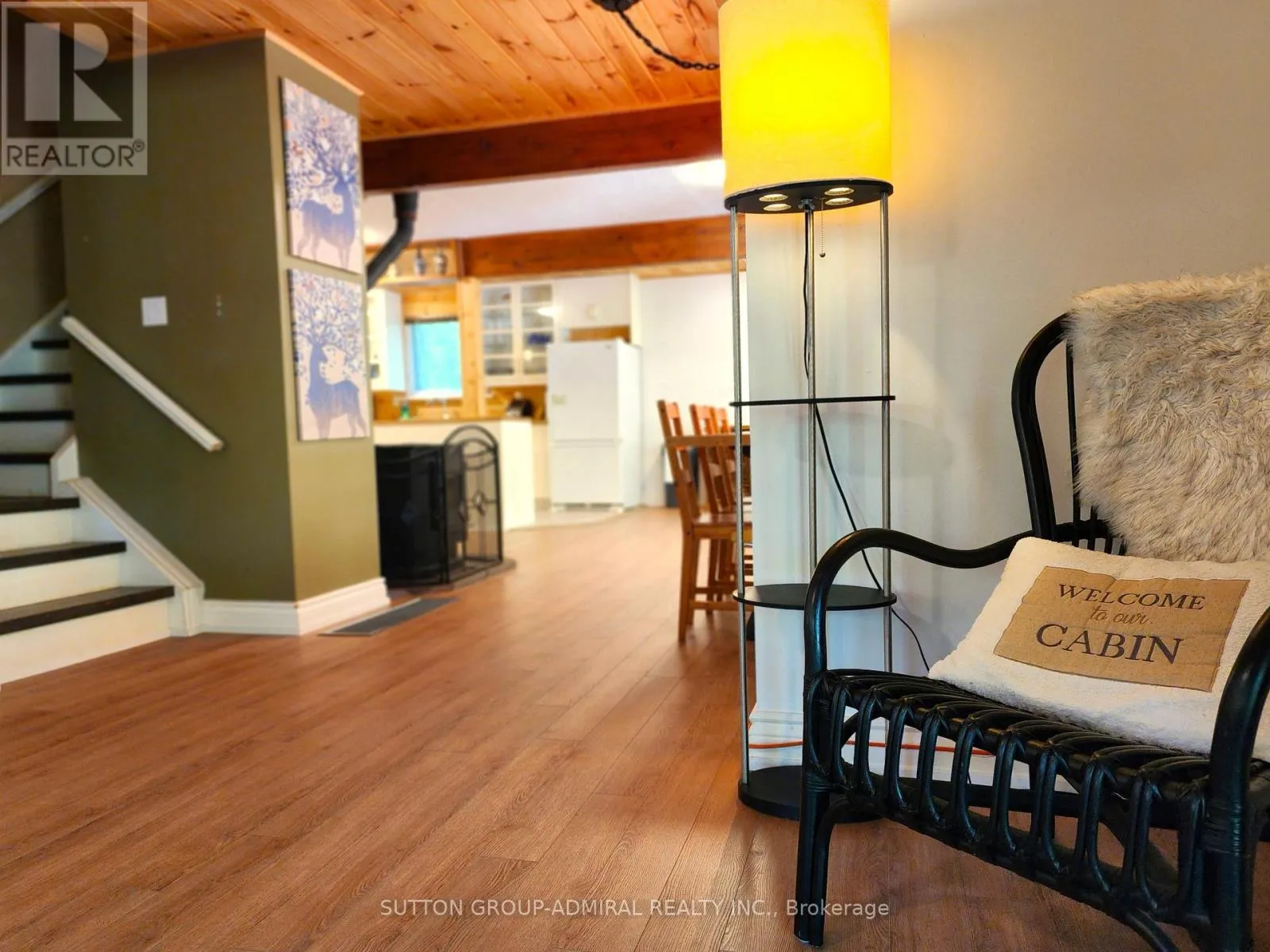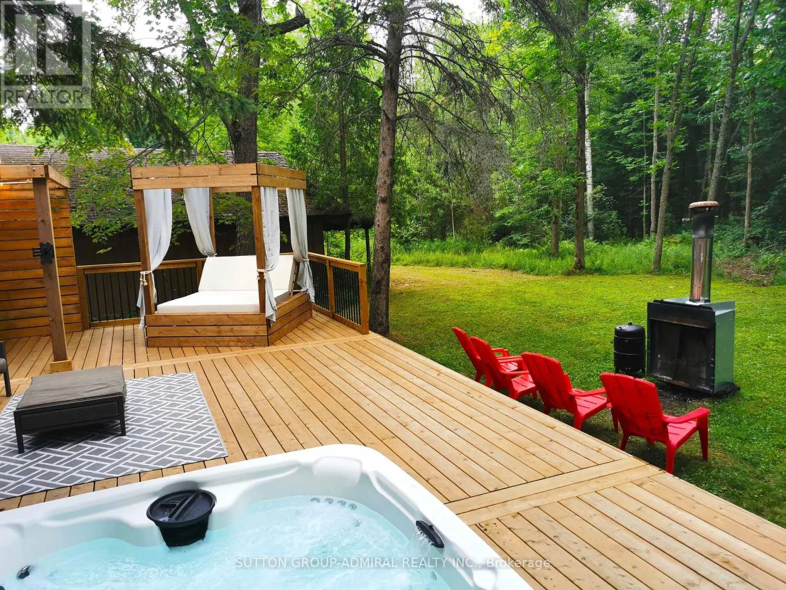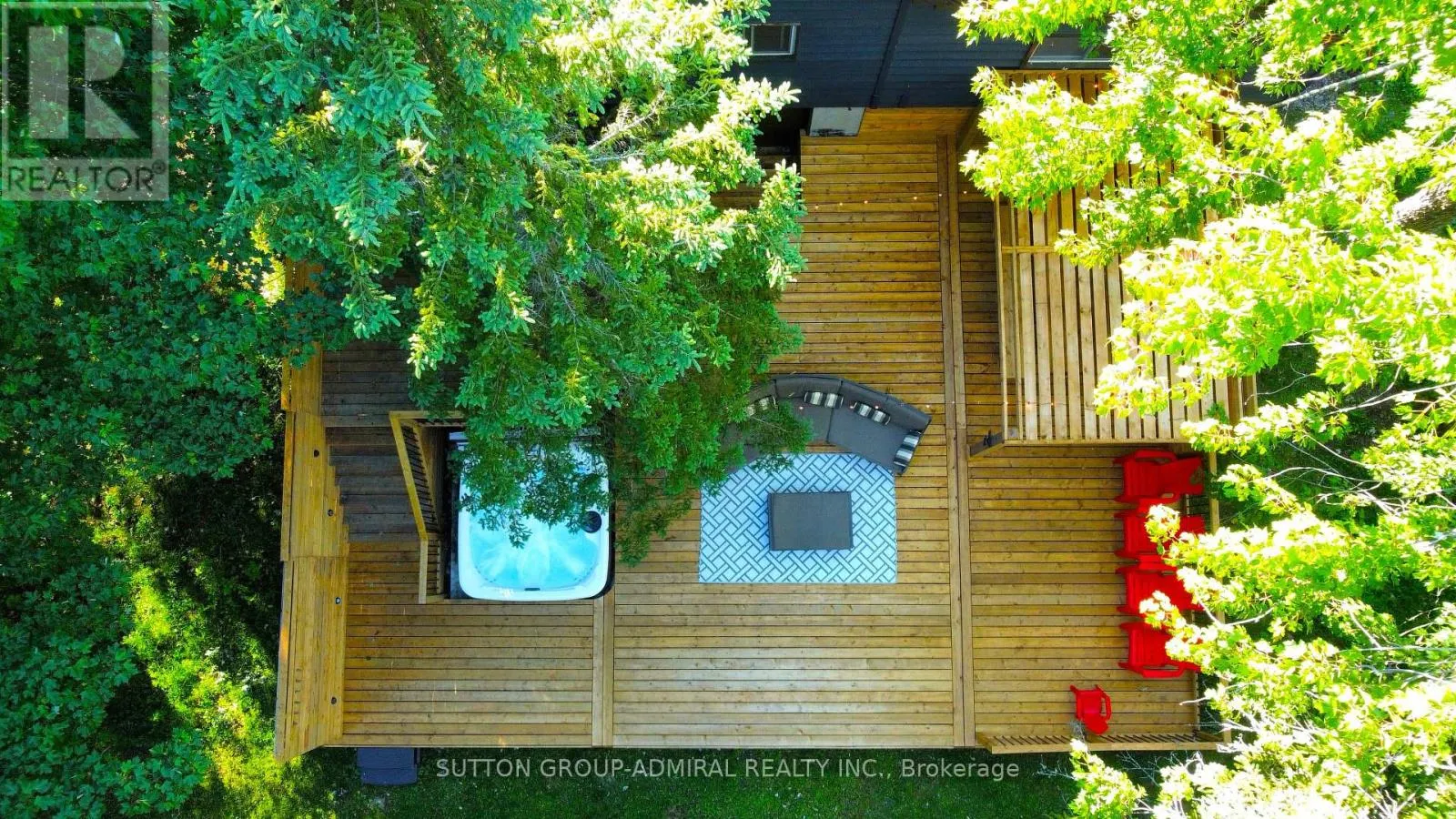 Cross Streets: Waltonian / Pine. ** Directions: Across from Waltonian Inn. Detached home w/ thousands in recent upgrades right in the heart of Lake Nipissing fishing community, this 1.5 storey home w/ dbl detached garage on over 2 acres across from the Lake. Exuding rustic vibes as you drive in, the home is complemented by a 2020 built house-wide front composite deck, Massive deck in the rear w/ a hot tub, cedar siding, metal roof, and trees everywhere - Features 4 bedrooms, 2 baths, open concept rustic design with wood beams, and pine ceilings. The basement is unfinished, and left to your creative finishings but features a spare room, a large laundry room/walkout to the back yard, and utility room with ample storage. The double garage and driveway can help store all your toys w/ a workshop at the back. Backyard is private, plenty of room for a firepit, for a dog to run, or a garden. (id:27476)