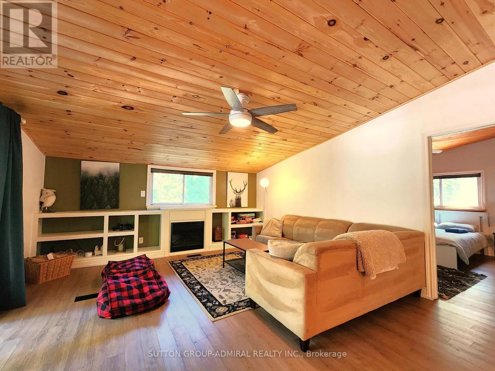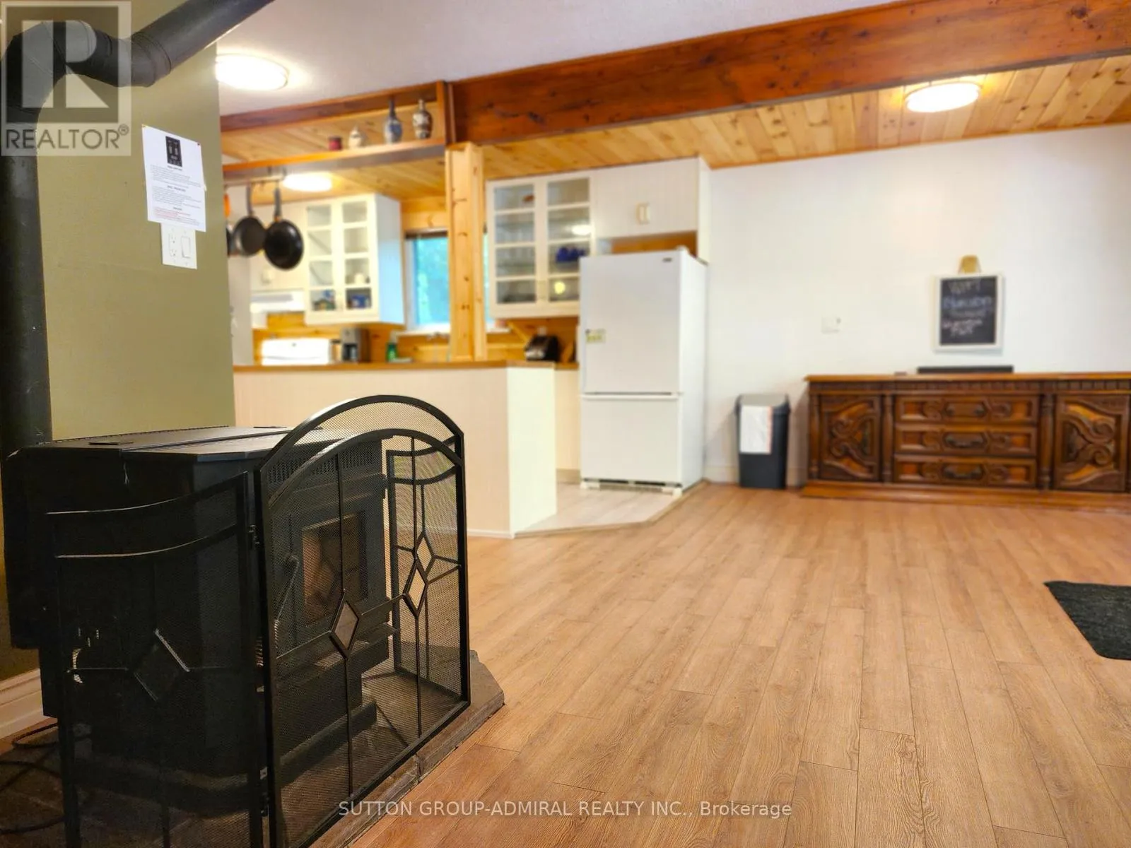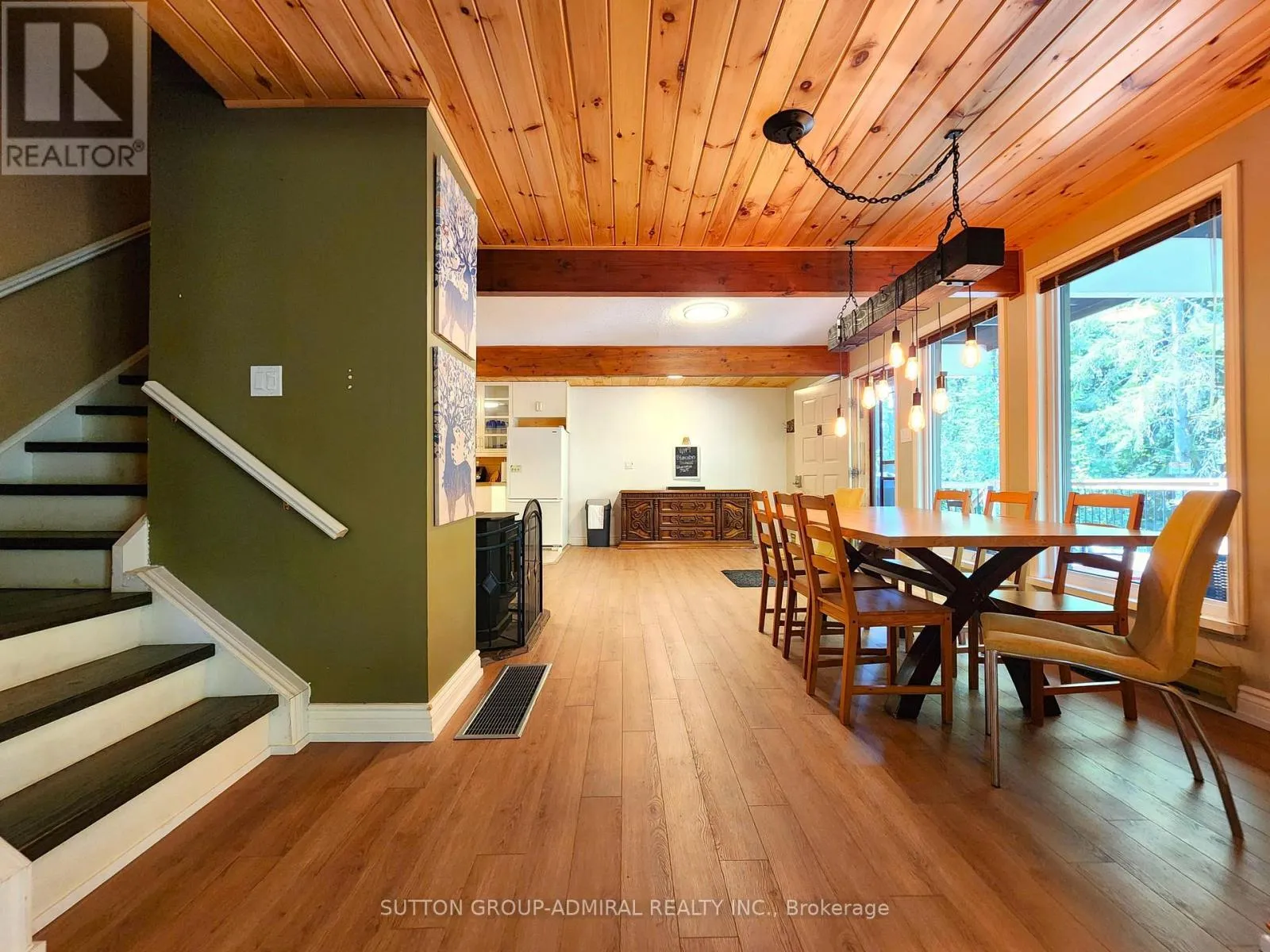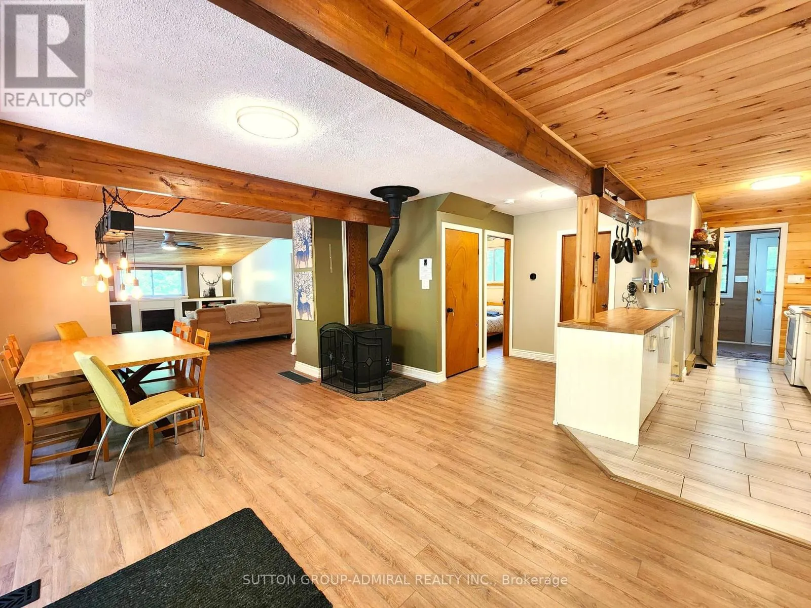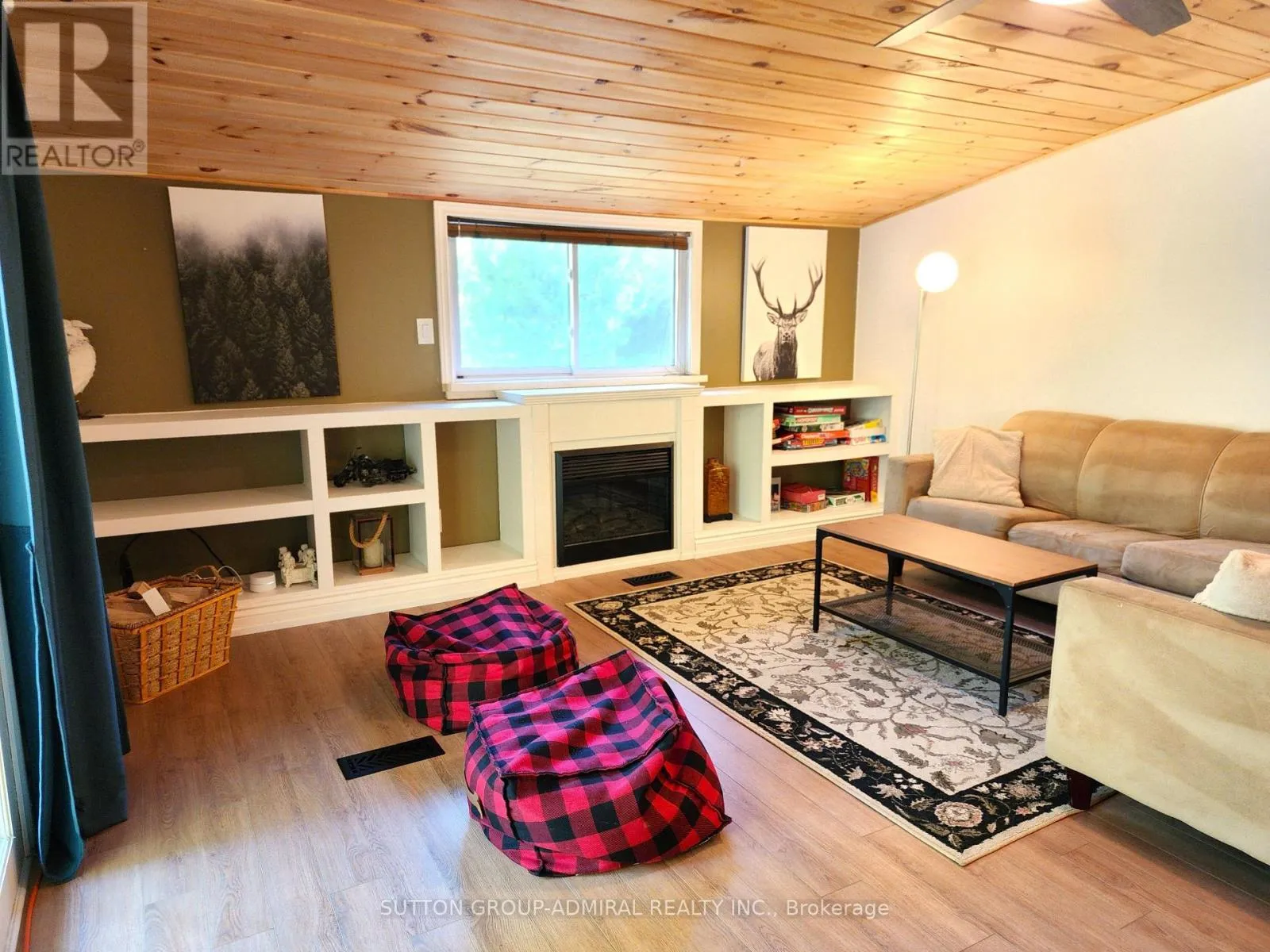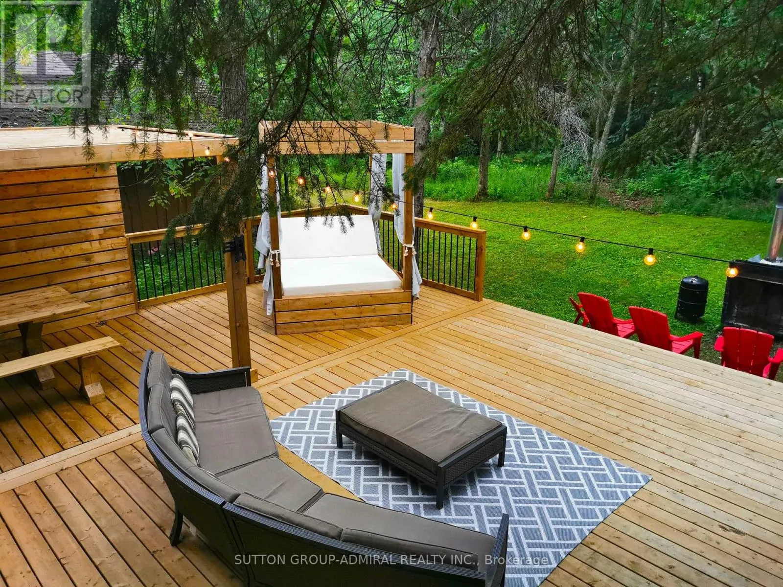 Cross Streets: Waltonian / Pine. ** Directions: Across from Waltonian Inn. Detached home w/ thousands in recent upgrades right in the heart of Lake Nipissing fishing community, this 1.5 storey home w/ dbl detached garage on over 2 acres across from the Lake. Exuding rustic vibes as you drive in, the home is complemented by a 2020 built house-wide front composite deck, Massive deck in the rear w/ a hot tub, cedar siding, metal roof, and trees everywhere - Features 4 bedrooms, 2 baths, open concept rustic design with wood beams, and pine ceilings. The basement is unfinished, and left to your creative finishings but features a spare room, a large laundry room/walkout to the back yard, and utility room with ample storage. The double garage and driveway can help store all your toys w/ a workshop at the back. Backyard is private, plenty of room for a firepit, for a dog to run, or a garden. (id:27476)
