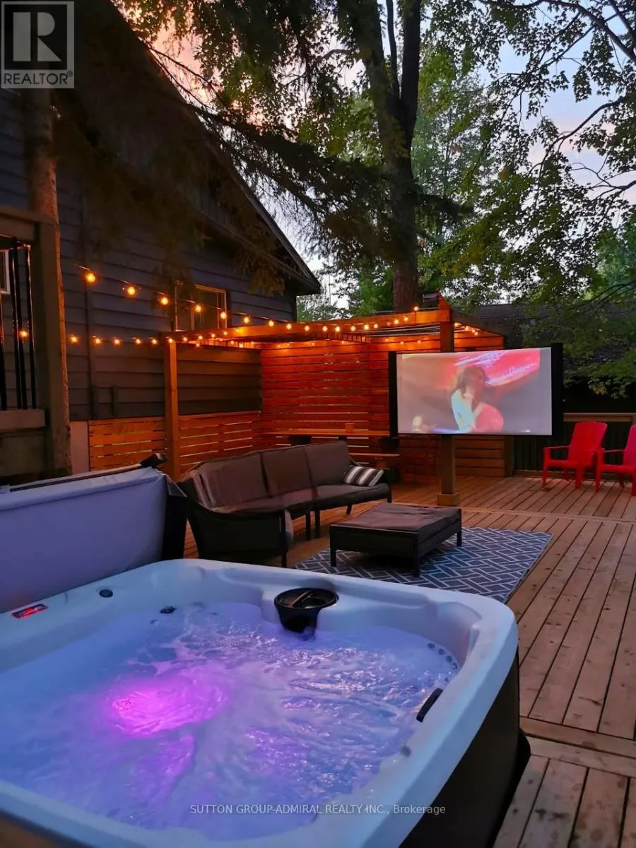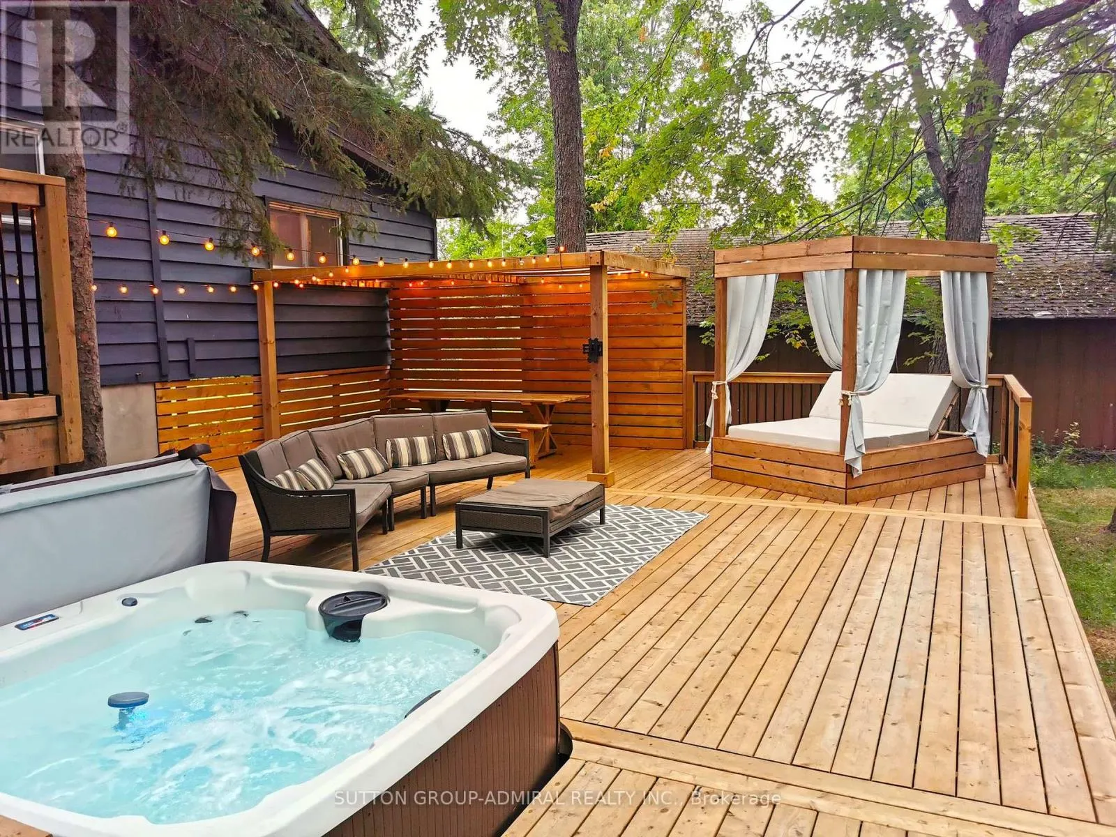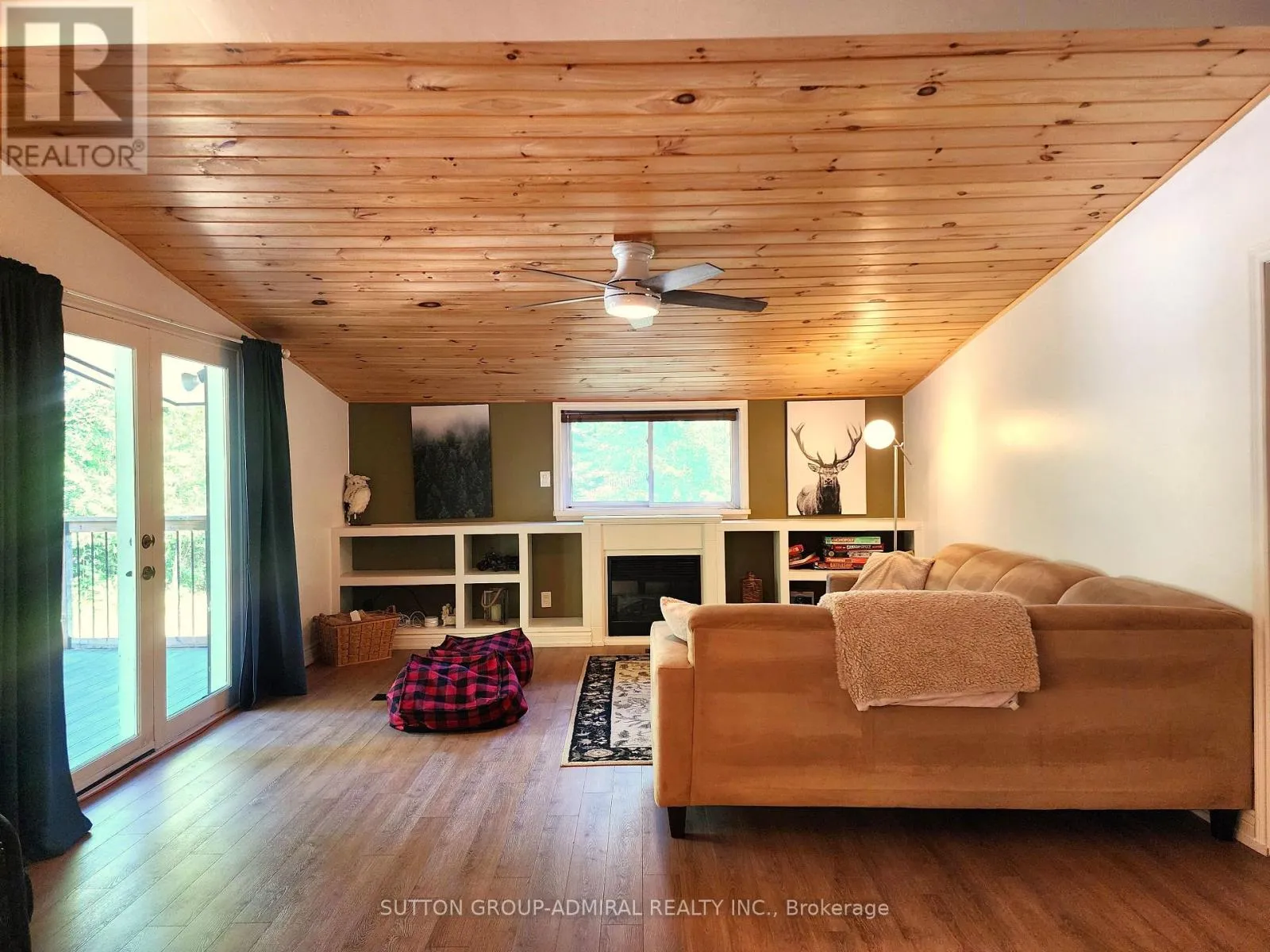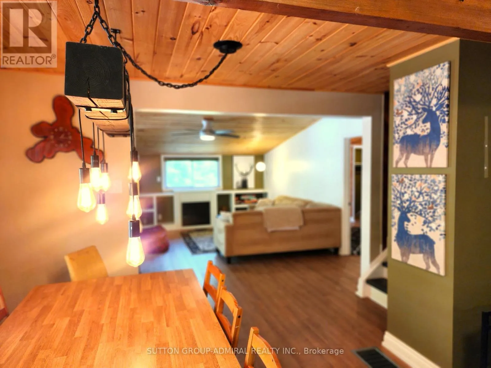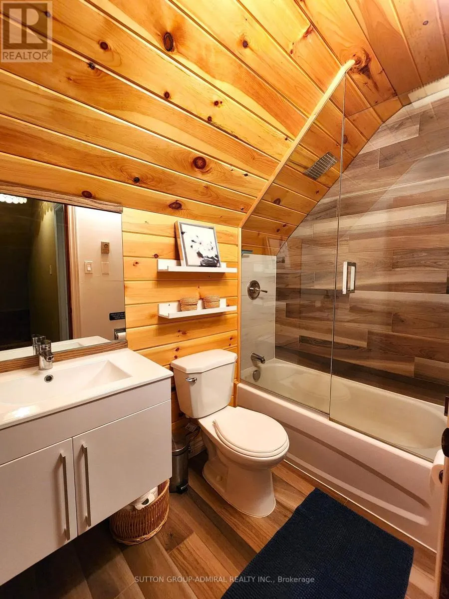 Cross Streets: Waltonian / Pine. ** Directions: Across from Waltonian Inn. Detached home w/ thousands in recent upgrades right in the heart of Lake Nipissing fishing community, this 1.5 storey home w/ dbl detached garage on over 2 acres across from the Lake. Exuding rustic vibes as you drive in, the home is complemented by a 2020 built house-wide front composite deck, Massive deck in the rear w/ a hot tub, cedar siding, metal roof, and trees everywhere - Features 4 bedrooms, 2 baths, open concept rustic design with wood beams, and pine ceilings. The basement is unfinished, and left to your creative finishings but features a spare room, a large laundry room/walkout to the back yard, and utility room with ample storage. The double garage and driveway can help store all your toys w/ a workshop at the back. Backyard is private, plenty of room for a firepit, for a dog to run, or a garden. (id:27476)