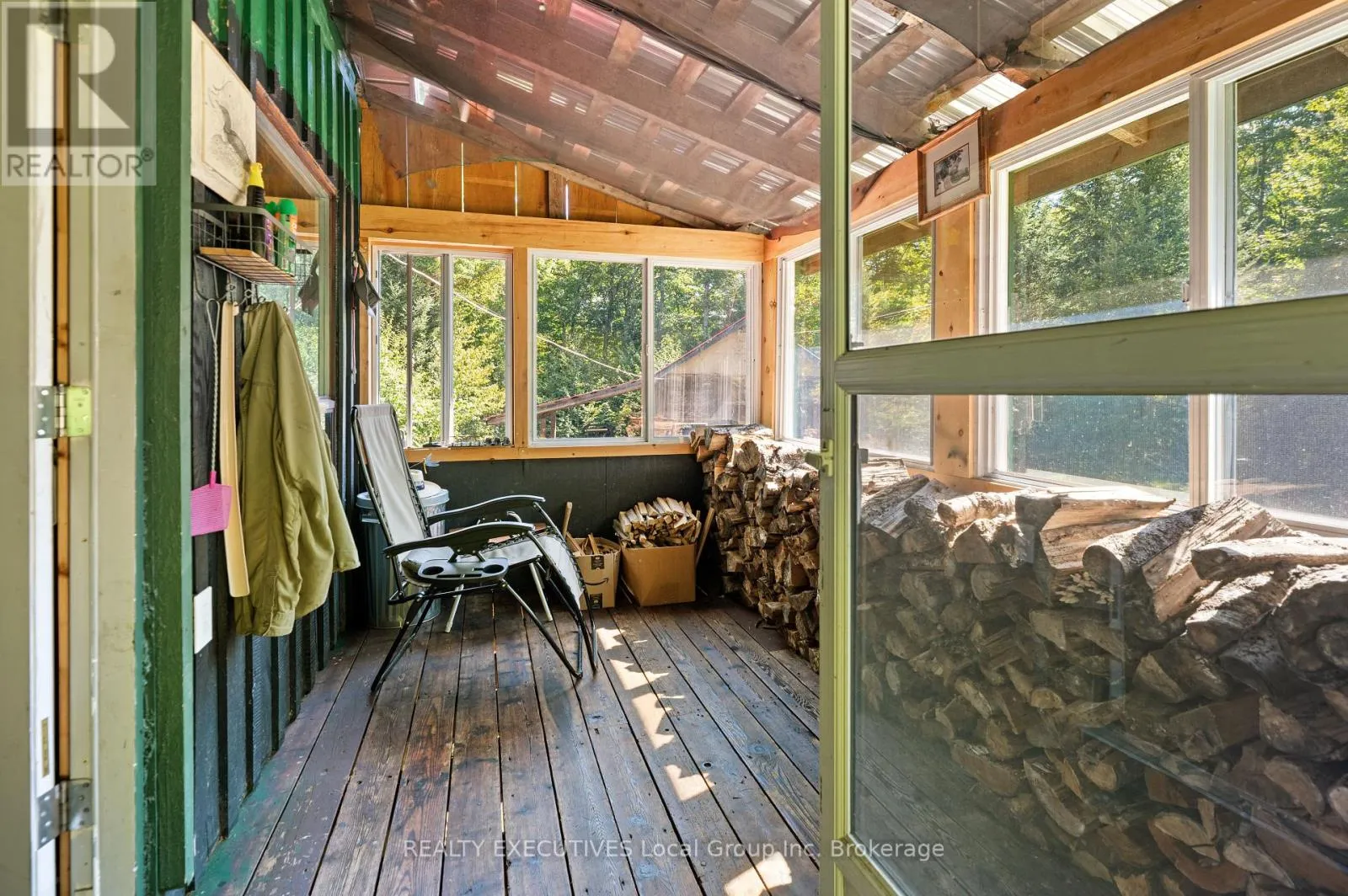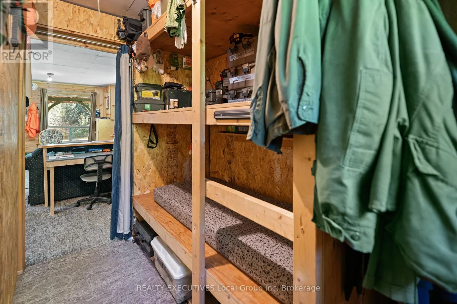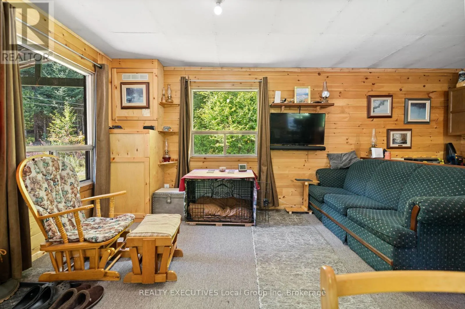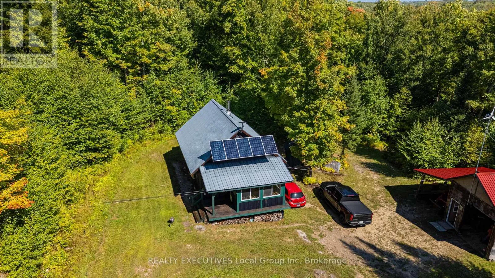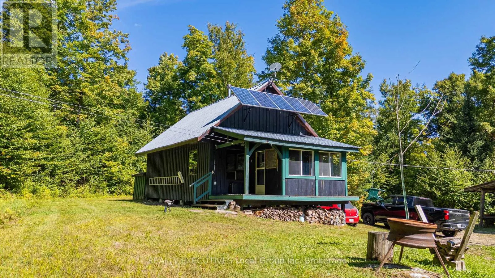 Cross Streets: Rye Rd and Granite Hill Rd. ** Directions: South on Hwy 11S, Exit to Hemlock Rd turn left onto Hwy 522B (Hemlock Rd.) turn right onto Main St W (HWY 522) follow and turn left onto Granite Hill Rd (road turns into a Seasonal municipal road property marked on right 876 Granite Hill Rd. 876 Granite Hill - Your Own Off-Grid Wilderness Retreat. Calling all outdoors people and nature lovers! This isn't just a hunt camp, it's your private escape on 98+ acres of rugged Northern Ontario beauty. Tucked away in Nipissing, this well-maintained off-grid cabin is the perfect base for adventure, solitude, or simply disconnecting from the daily grind. Step onto the covered front deck and into the screened porch, a perfect spot to store firewood or enjoy a bug-free view of the woods. Inside, the open living space is warmed by a dependable wood stove, with room for a kitchen area, living zone, and two peaceful bedrooms for rest after long days outside. The cabin is powered by a robust solar system with generator backup, and a drive-in shed with a lean-to offers storage for gear and tools. A rainwater collection system handles cleaning needs, and an outhouse keeps things simple. Want to stay connected? Starlink-ready internet means you can stream, work, or check in when you choose. Explore your own extensive trail network, four included tree stands, and direct access to even more Crown Land, ideal for hunting, ATV rides, snowmobiling, or just wandering. You're also just a short drive from the Rockcut Shooting Club in Trout Creek. Access is via a seasonally maintained municipal road. The property includes an environmentally protected area, offering even more natural beauty and privacy. Included: wood stove, generator, four tree stands, solar power system, and shed. If you've been dreaming of a self-sufficient retreat where life moves at your pace not the world's, this is your chance. Unplug, explore, and make 876 Granite Hill your own year-round sanctuary. Buyer to conduct due diligence regarding future development. Environmentally protected area located on property. Viewings by appointment only. (id:27476)