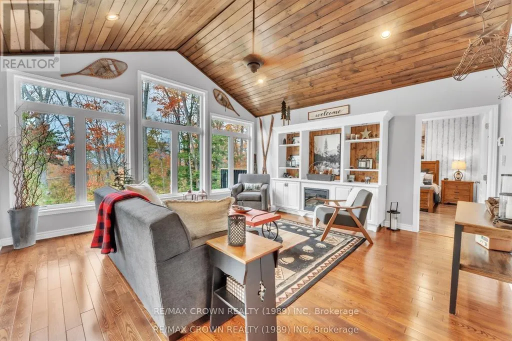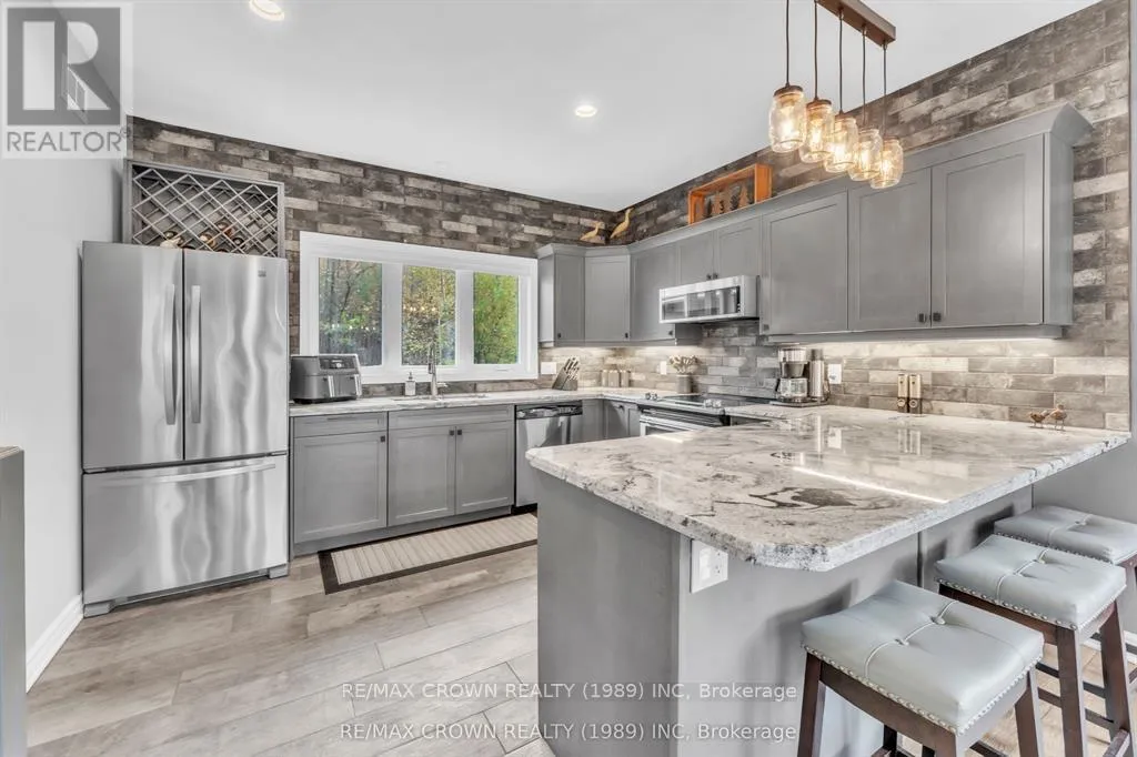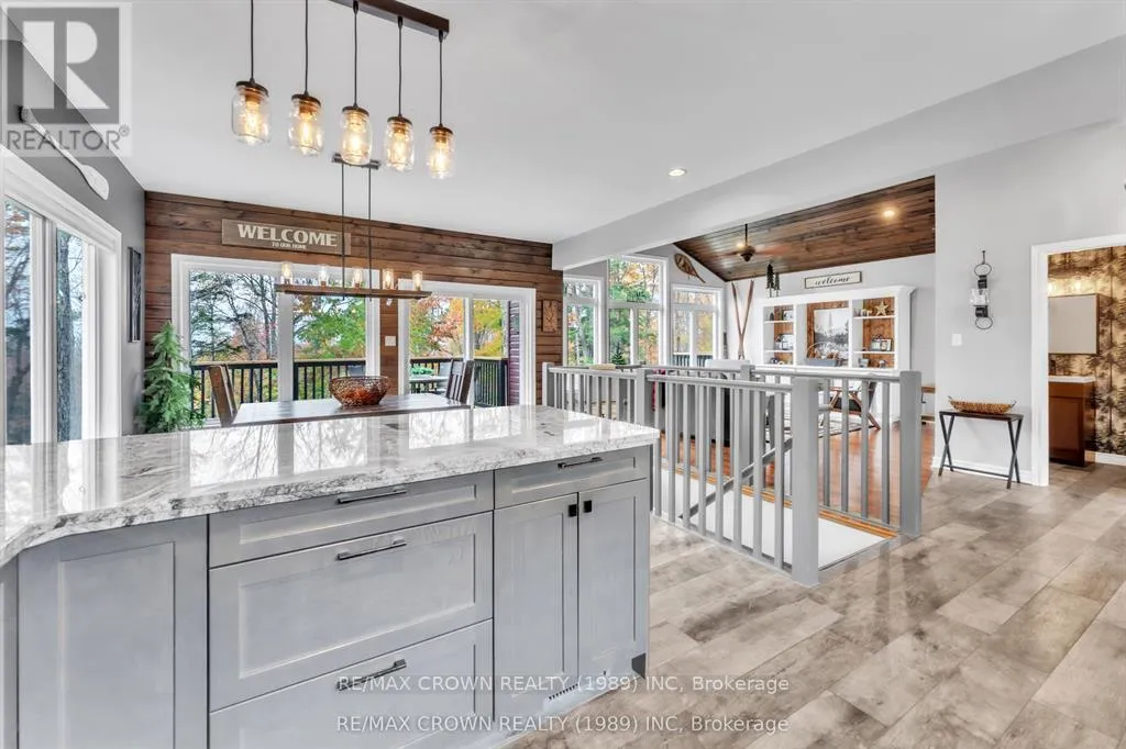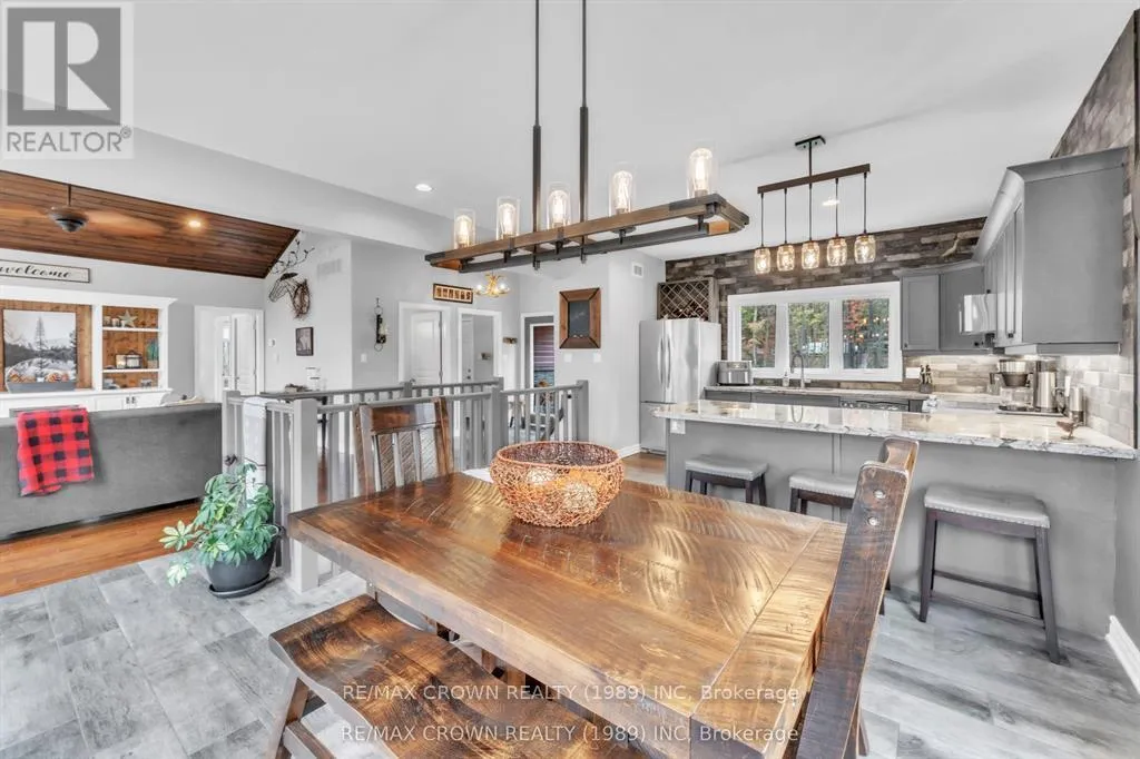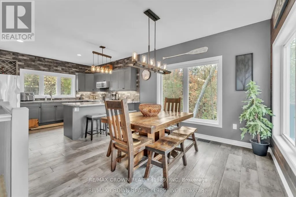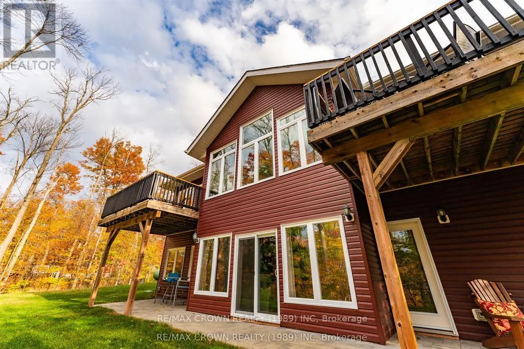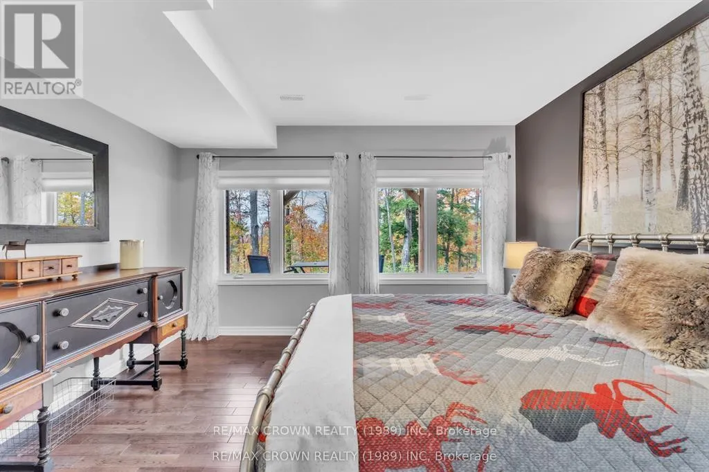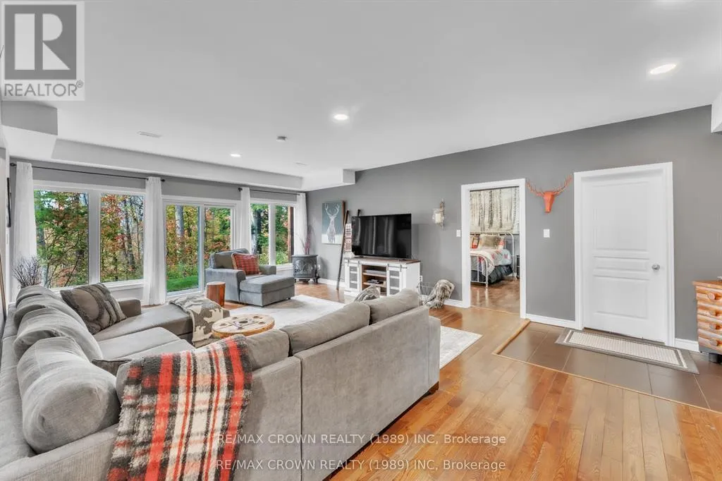 Ski Hill Road Nestled on scenic Ski Hill Ridge at the Powassan border, this meticulously crafted 3-bedroom, 3-bathroom home offers the perfect blend of modern comfort and natural beauty. Set on a private 1-acre cul-de-sac lot surrounded by mature maple forest, the property features seasonal views of Lake Nipissing and over 2,500 sq ft of finished living space. The pristine, landscaped grounds include a paved double driveway, a defined fire pit area, and a large storage shed offering both functionality and aesthetic appeal in a peaceful, woodland setting. Step inside to find a thoughtfully designed open-concept layout with soaring 9-foot ceilings throughout and a cathedral ceiling in the main living area, creating an airy, inviting atmosphere. The custom kitchen flows seamlessly into a spacious dining and living area with sliding doors that open to an elevated deck perfect for enjoying your forested backdrop in any season. A convenient two-piece powder room is tucked just off the main space, ideal for guests and everyday use. The primary suite offers a private retreat, complete with a walk-in closet, a luxurious 4-piece ensuite with a soaker tub and walk-in shower, and direct access to its own elevated deck ideal for quiet mornings or winding down under the stars. A generous mudroom/laundry room connects the home to a 24' x 24' insulated garage, making daily routines efficient and organized. Downstairs, the fully finished walkout lower-level doubles your living space and features a large open rec room, two additional bedrooms, a 3-piece bathroom, utility room, and ample storage. A full-length covered lower deck offers additional outdoor living space perfect for entertaining or simply enjoying the serene surroundings. Styled like a feature in a Muskoka lifestyle magazine, this home is both a tranquil retreat and a stylish full-time residence. Located just 10 minutes from Powassan and 30 minutes to North Bay, it delivers the best of Northern living with easy access to amenities. (id:27476)