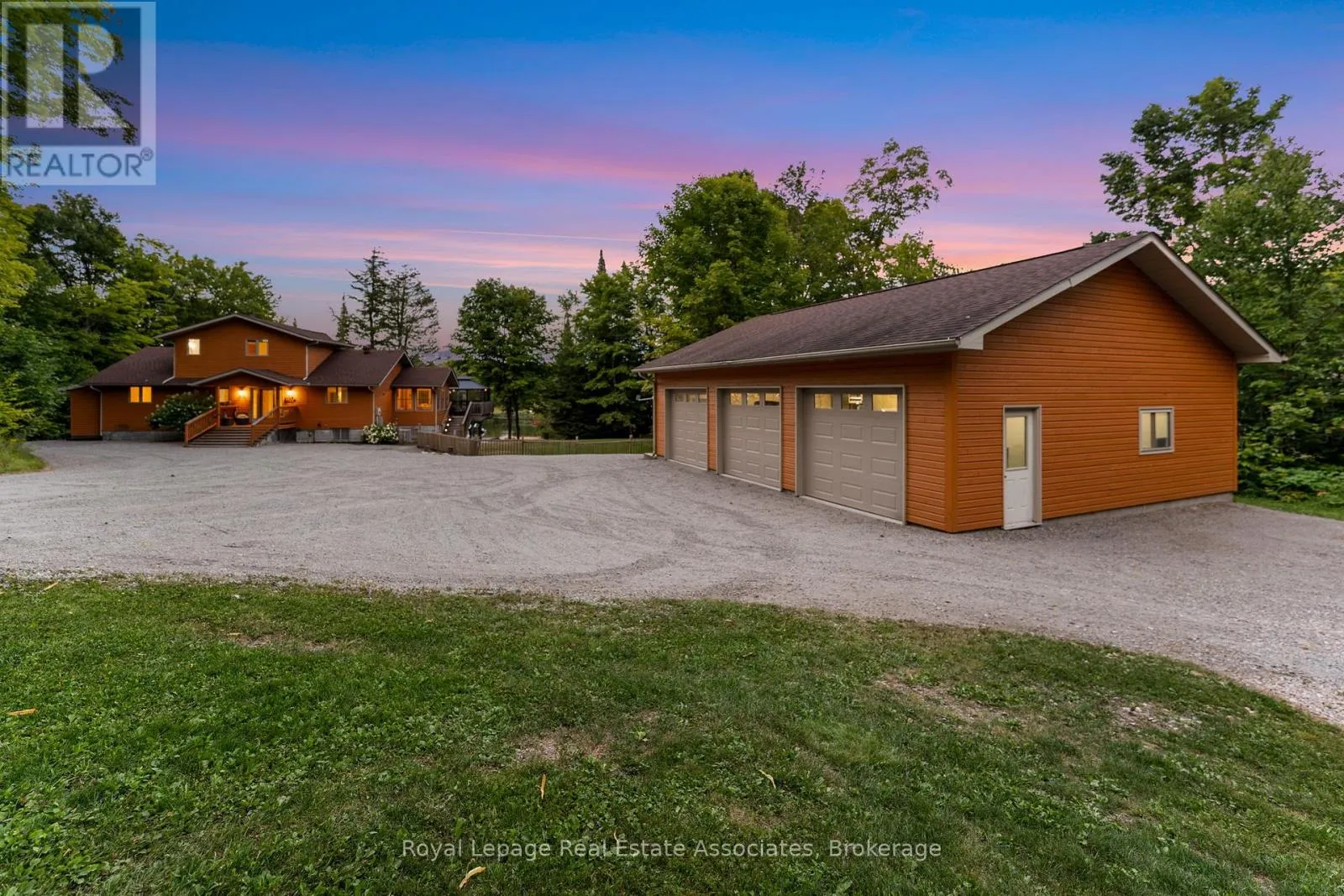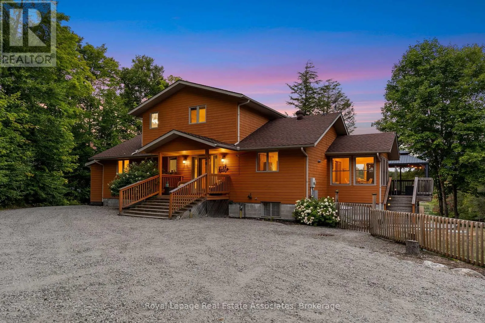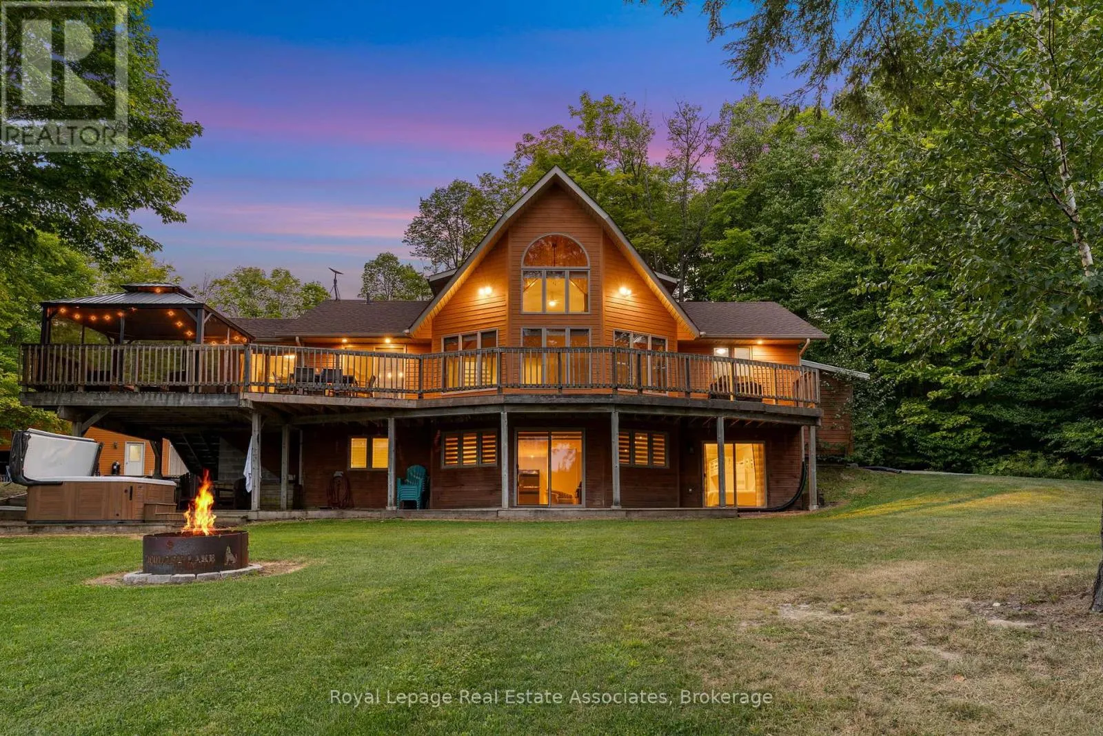 Hwy 534 & Wolfe Lake Rd. Welcome to your dream escape on the crystal-clear, spring-fed waters of McQuaby Lake. Built in 2002, this quality-crafted Lake Home is set on a private, park-like lot and offers the perfect blend of comfort, style, and function. Step inside to a bright and open foyer leading to a dramatic vaulted living room with a wall of windows framing gorgeous lake views. The chefs kitchen, complete with granite counters and stainless-steel appliances, connects seamlessly to the dining area, sunroom, and expansive deck with gazebo ideal for entertaining or simply soaking in the scenery. The main level features two spacious bedrooms and a 4-piece bath, while the second floor is dedicated to a private loft-style primary suite with a walk-in closet and ensuite overlooking the main living space. The fully finished lower level extends your living space with a family room, walk-out to the hot tub and lake, plus additional flexible rooms perfect for a home office, gym, or a fourth bedroom with patio doors. Outside, you'll find a cedar-sided, insulated and heated 3 car garage (40 x 30), a lakeside storage shed, and a garden shed. With thoughtful high-end finishes throughout, this home was built to last and designed for lakeside living at its best. Roof 2019, A/C 2021, Furnace 2021, Generator 2021, Dock 2021, Garage Heater 2024, Garage insulation 2021, hot tub cover 2025. (id:27476)