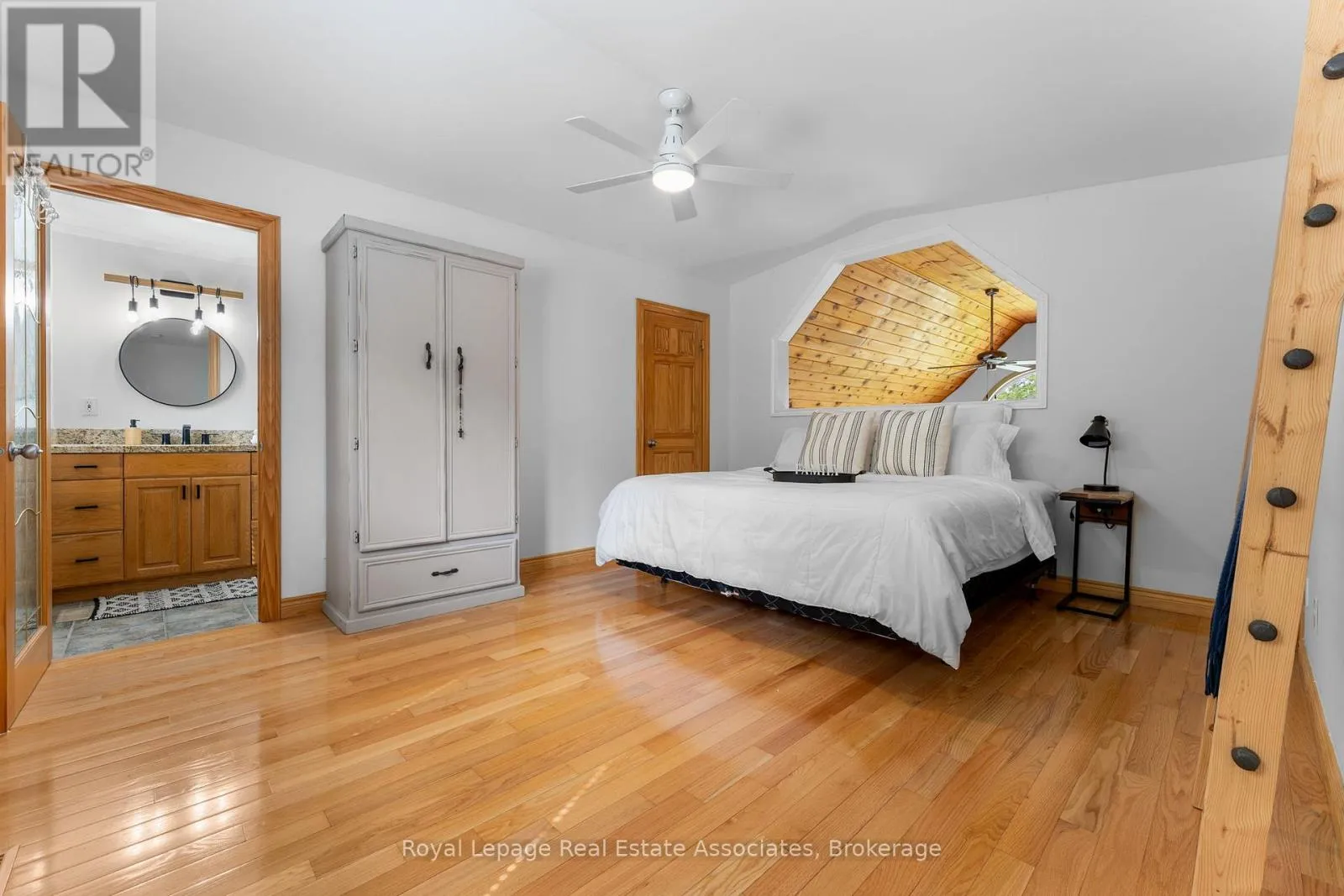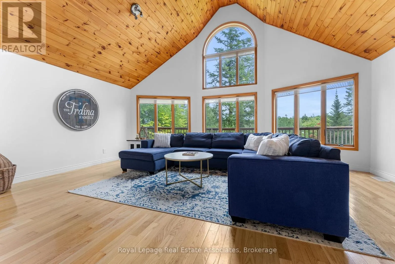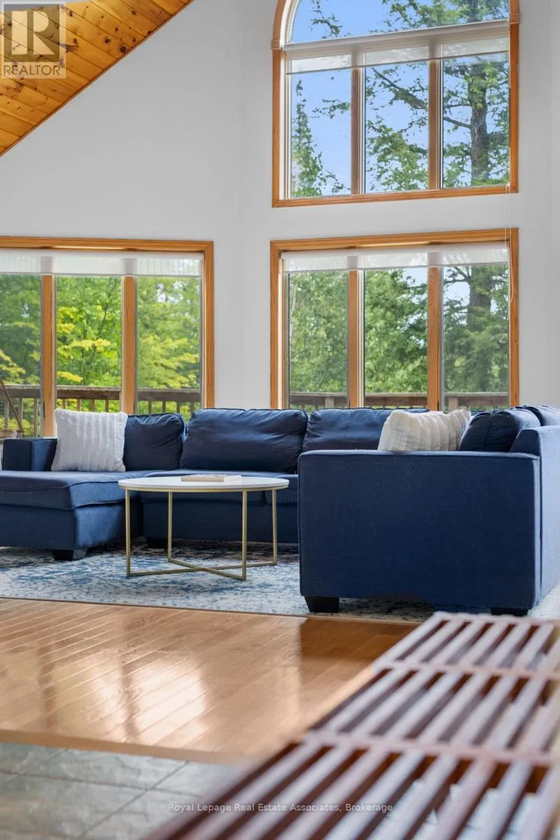 Hwy 534 & Wolfe Lake Rd. Welcome to your dream escape on the crystal-clear, spring-fed waters of McQuaby Lake. Built in 2002, this quality-crafted Lake Home is set on a private, park-like lot and offers the perfect blend of comfort, style, and function. Step inside to a bright and open foyer leading to a dramatic vaulted living room with a wall of windows framing gorgeous lake views. The chefs kitchen, complete with granite counters and stainless-steel appliances, connects seamlessly to the dining area, sunroom, and expansive deck with gazebo ideal for entertaining or simply soaking in the scenery. The main level features two spacious bedrooms and a 4-piece bath, while the second floor is dedicated to a private loft-style primary suite with a walk-in closet and ensuite overlooking the main living space. The fully finished lower level extends your living space with a family room, walk-out to the hot tub and lake, plus additional flexible rooms perfect for a home office, gym, or a fourth bedroom with patio doors. Outside, you'll find a cedar-sided, insulated and heated 3 car garage (40 x 30), a lakeside storage shed, and a garden shed. With thoughtful high-end finishes throughout, this home was built to last and designed for lakeside living at its best. Roof 2019, A/C 2021, Furnace 2021, Generator 2021, Dock 2021, Garage Heater 2024, Garage insulation 2021, hot tub cover 2025. (id:27476)