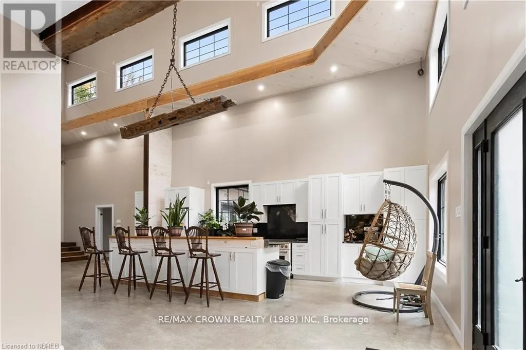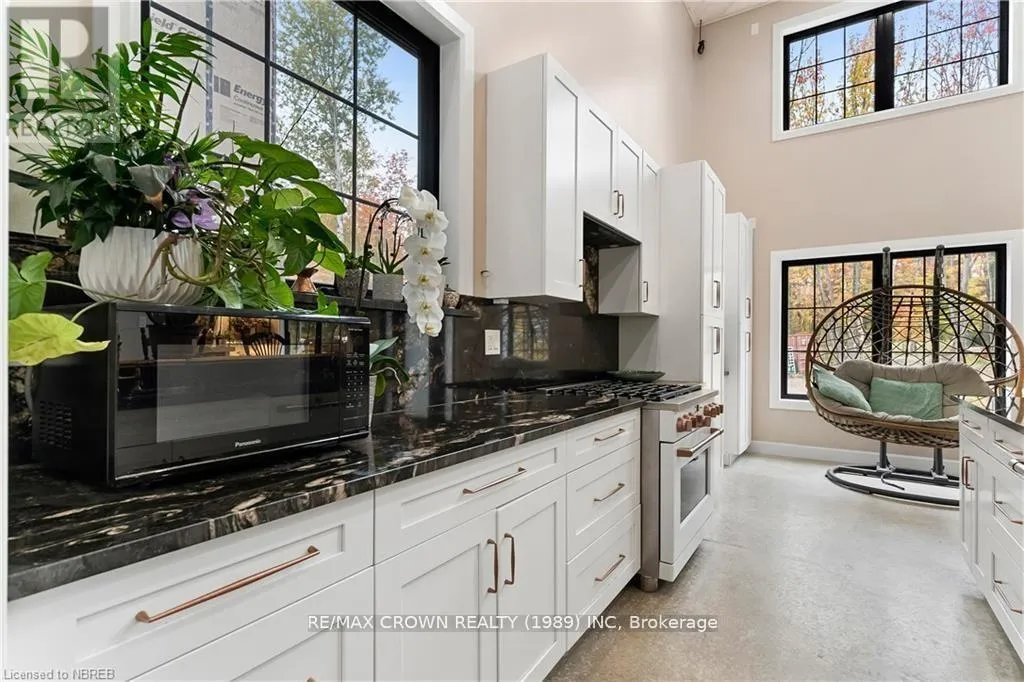 Mountainview Road This architectural masterpiece is a rare find! Nestled on approximately 1 acre in a quiet and tranquil cul-de-sac in the sought-after Ski Hill Ridge of Powassan, this 4-bedroom, 3-bath home is a perfect blend of elegance and modern design. The soaring 30-foot ceilings create a sense of grandeur throughout the open-concept living and kitchen area. The main level features three spacious bedrooms, a full bathroom, and a large mudroom connecting the home to the expansive garage, which includes its own bathroom and office space. The office offers direct access to a large deck, hardwired for a hot tub, and seamlessly connected to the Primary bedroom an ideal space for relaxation. Upstairs, the mezzanine overlooks the main living area and is wired for a projector, making it a spectacular space for entertaining. The home is equipped with high-end finishes, 3-zone in-floor heating extending throughout the home and garage, ensuring comfort year-round. Though some finishing touches are still required, this home is already a showstopper. Set on a serene lot in a peaceful neighborhood, homes like this don't come around often don't miss your chance to own a true architectural gem. (id:27476)
