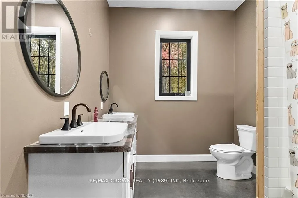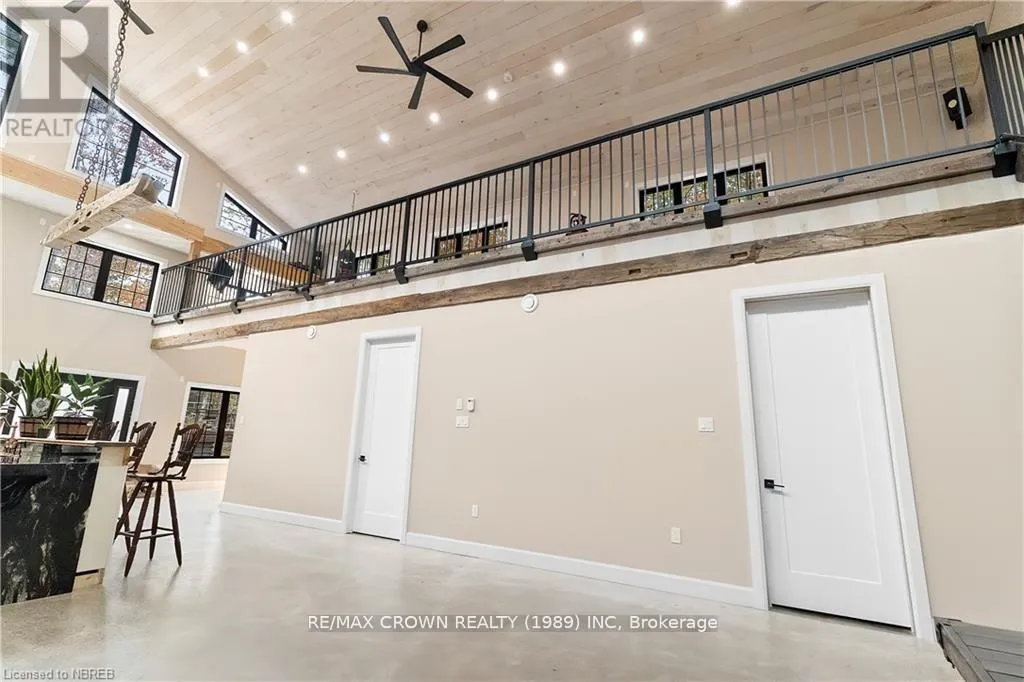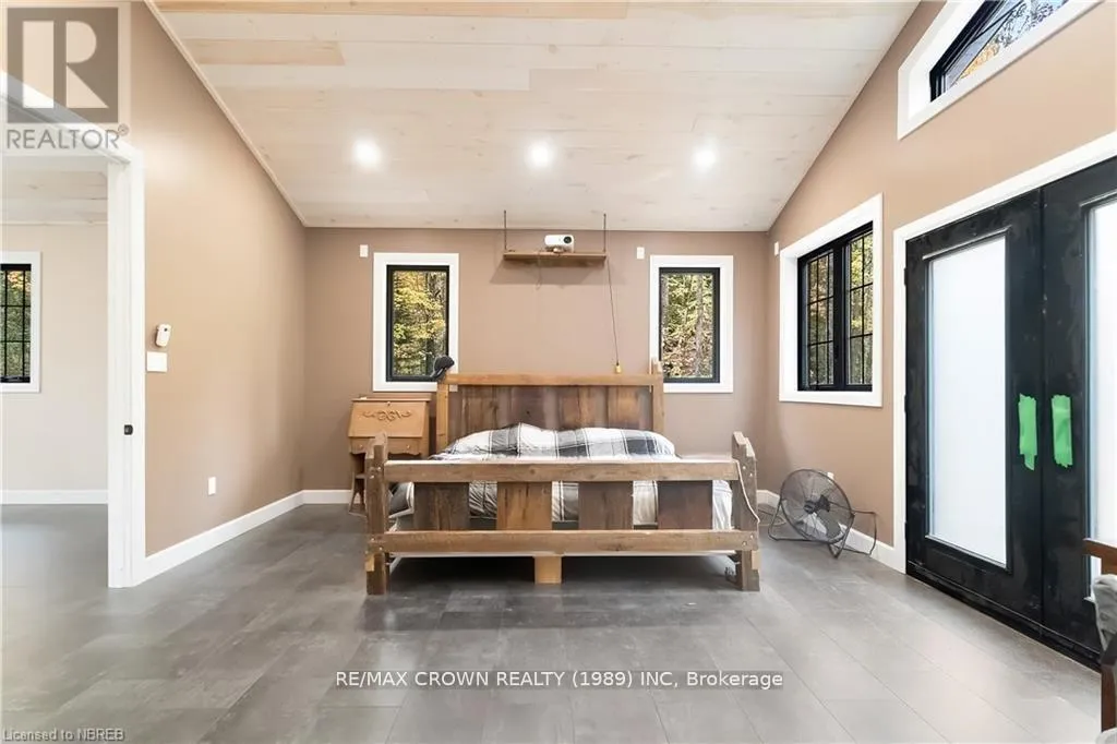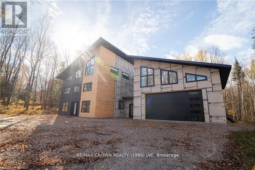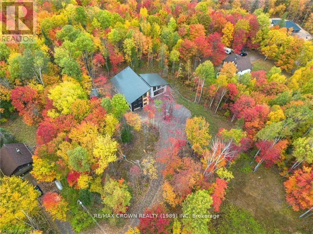 Mountainview Road This architectural masterpiece is a rare find! Nestled on approximately 1 acre in a quiet and tranquil cul-de-sac in the sought-after Ski Hill Ridge of Powassan, this 4-bedroom, 3-bath home is a perfect blend of elegance and modern design. The soaring 30-foot ceilings create a sense of grandeur throughout the open-concept living and kitchen area. The main level features three spacious bedrooms, a full bathroom, and a large mudroom connecting the home to the expansive garage, which includes its own bathroom and office space. The office offers direct access to a large deck, hardwired for a hot tub, and seamlessly connected to the Primary bedroom an ideal space for relaxation. Upstairs, the mezzanine overlooks the main living area and is wired for a projector, making it a spectacular space for entertaining. The home is equipped with high-end finishes, 3-zone in-floor heating extending throughout the home and garage, ensuring comfort year-round. Though some finishing touches are still required, this home is already a showstopper. Set on a serene lot in a peaceful neighborhood, homes like this don't come around often don't miss your chance to own a true architectural gem. (id:27476)