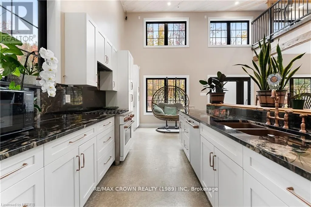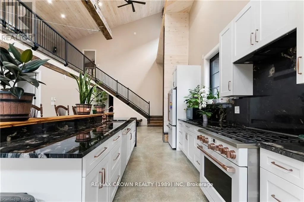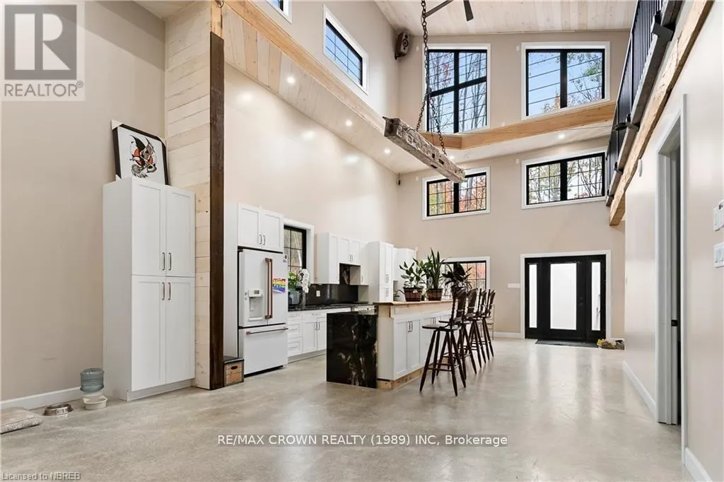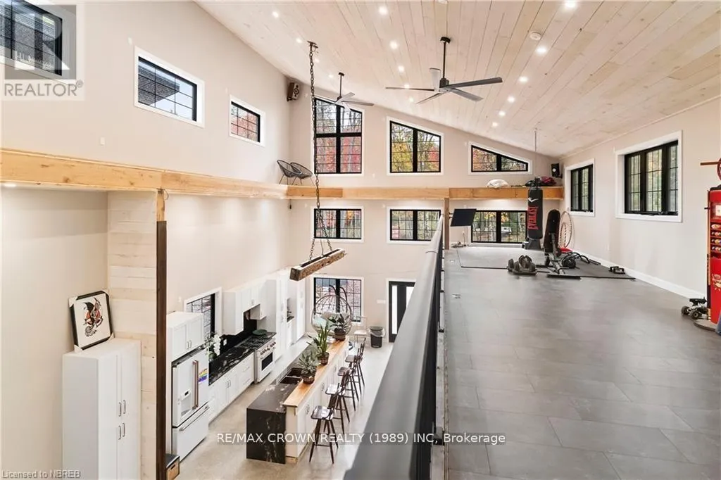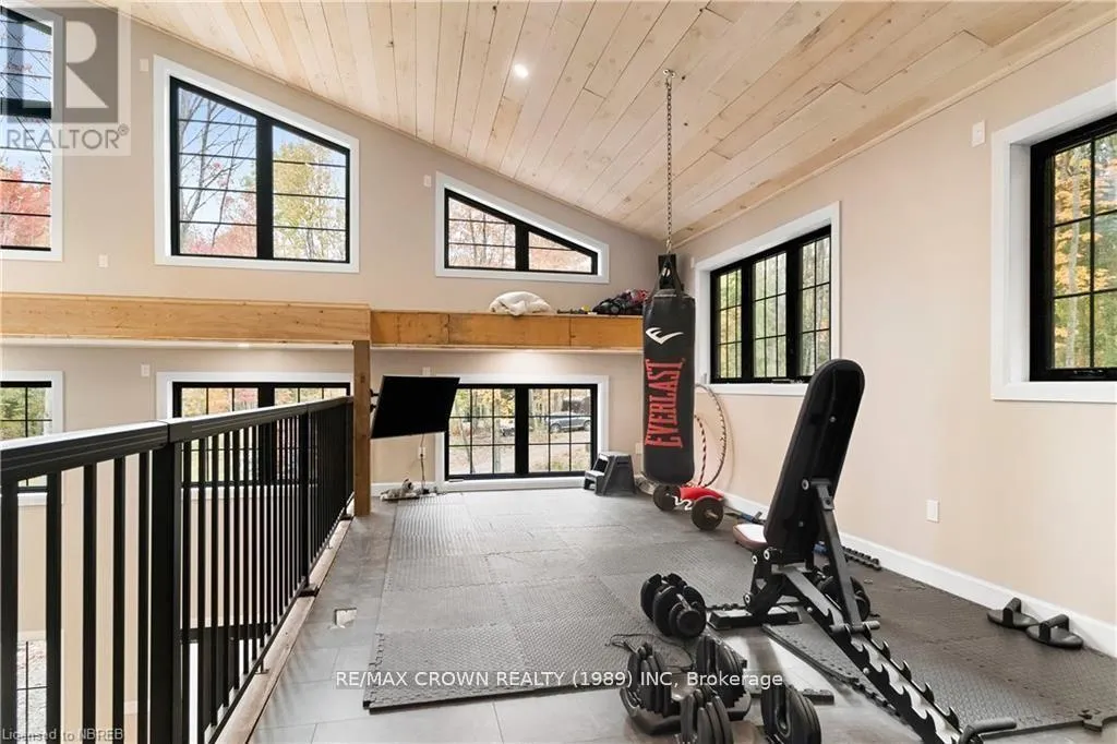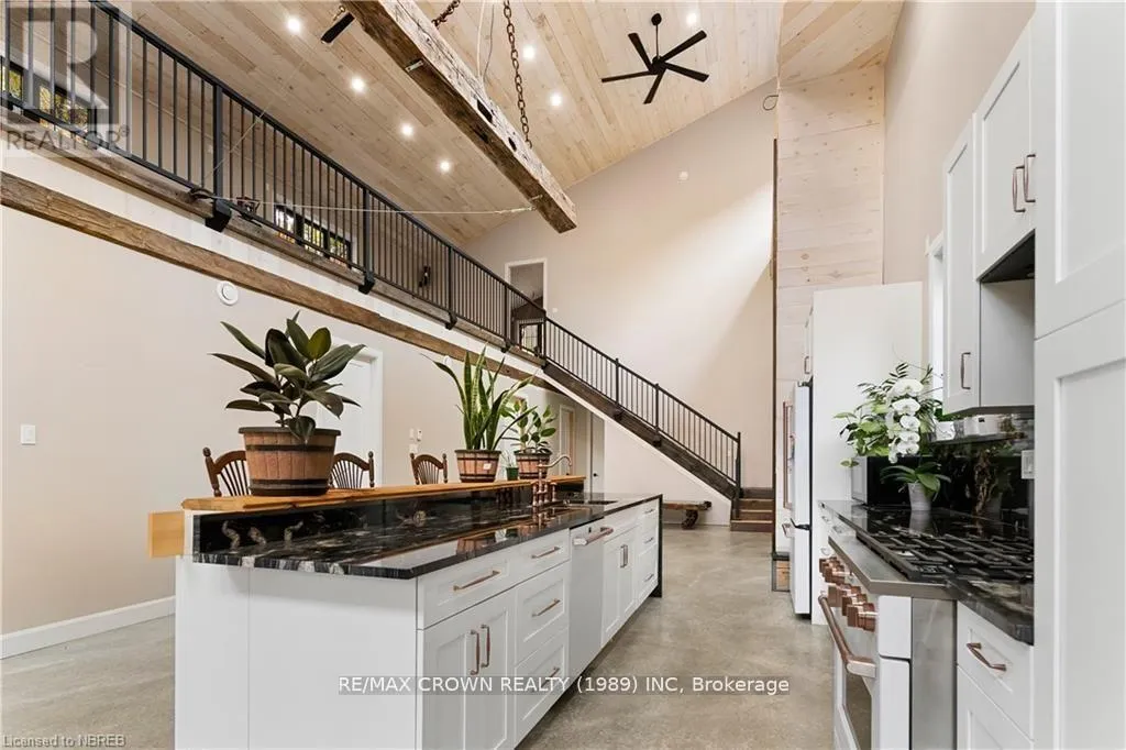 Mountainview Road This architectural masterpiece is a rare find! Nestled on approximately 1 acre in a quiet and tranquil cul-de-sac in the sought-after Ski Hill Ridge of Powassan, this 4-bedroom, 3-bath home is a perfect blend of elegance and modern design. The soaring 30-foot ceilings create a sense of grandeur throughout the open-concept living and kitchen area. The main level features three spacious bedrooms, a full bathroom, and a large mudroom connecting the home to the expansive garage, which includes its own bathroom and office space. The office offers direct access to a large deck, hardwired for a hot tub, and seamlessly connected to the Primary bedroom an ideal space for relaxation. Upstairs, the mezzanine overlooks the main living area and is wired for a projector, making it a spectacular space for entertaining. The home is equipped with high-end finishes, 3-zone in-floor heating extending throughout the home and garage, ensuring comfort year-round. Though some finishing touches are still required, this home is already a showstopper. Set on a serene lot in a peaceful neighborhood, homes like this don't come around often don't miss your chance to own a true architectural gem. (id:27476)