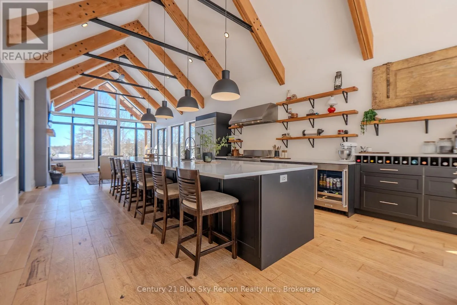 Cross Streets: Green Acres. ** Directions: Hwy 534 to Wolf Lake Rd, Right on Green Acres Rd to Niagara Rd property on right. Custom Waterfront Luxury on 1 Acre - 5 Bed, 3 Bath. Experience exceptional craftsmanship and year round lakeside living in this custom built 5 bedroom, 3 bath waterfront home set on a beautifully landscaped 1 acre lot. Designed for comfort, efficiency, and unforgettable entertaining, this property blends rustic elegance with modern performance. Step into a breathtaking great room featuring soaring cathedral ceilings framed by striking Douglas Fir beams. A Napoleon wood burning factory fireplace with a large 50-pound firebox and zero gravity glass and screen creates a dramatic focal point and a warm, inviting atmosphere. NorthStar windows-backed by a lifetime warranty-flood the home with natural light and frame serene lake views. This home is equipped with central air, propane heat, and a wood boiler, offering efficient and flexible climate control year round. An ICF foundation ensures superior insulation and long term durability. A Generalink hook up adds peace of mind and convenience. Enjoy a gentle, sandy entrance into the lake-perfect for swimming, wading, and family fun. The private dock offers 5 ft of depth at the end, ideal for boating and water toys. A covered 16' x 16' concrete patio extends your living space outdoors, while the driveway continues all the way to the water, allowing you to launch your boat with ease. Relax under the stars in your brand new saltwater hot tub, positioned to take in the tranquil waterfront setting. A large heated garage provides ample room for vehicles, tools, recreational gear, or a workshop-perfect for hobbyists or those needing extra space. Situated on a year round maintained road, this property offers the rare combination of privacy, convenience, and four season accessibility. (id:27476)