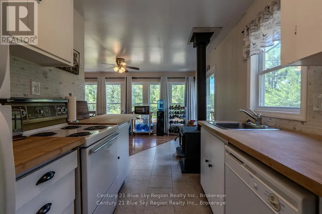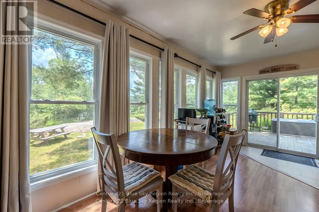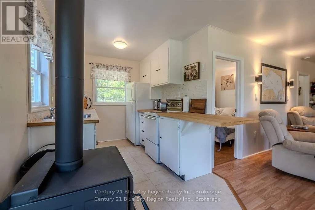 Cross Streets: Bear Creek. ** Directions: Hwy 654 right on Muskeg rd, left on Sunset cove rd, left on Bear creek Rd, left on RustonRd (open gate and close after ). Escape to your Private Waterfront oasis on Lake Nipissing! Discover true Northern Ontario living at this secluded, turnkey retreat on the shores of Beautiful Lake Nipissing nestled on a private road, this charming 3 bedroom, one bath cottage offers eveything you need for your enjoyment. Highlights include: waterfront paradise- sheltered south bay with sandy bottom for great swimming, a double boathouse with docking for four boats, plus an adorable bunkie for guests and additional outbuildings. This property is surrounded by crown land to ensure privacy. Some new electrical in the kitchen and bunkie. New Woodstove with a WETT inspection to keep you warm year round. Large sundeck with firepit perfect for relaxing with family and friends. Ideal kayaking, canoeing or just soaking in the peaceful surroundings.The road access has been purchased and will be deeded to the new owner. Seller has already paid this fee . Seller is waiting for paperwork from the township. Call for your personal viewing (id:27476)