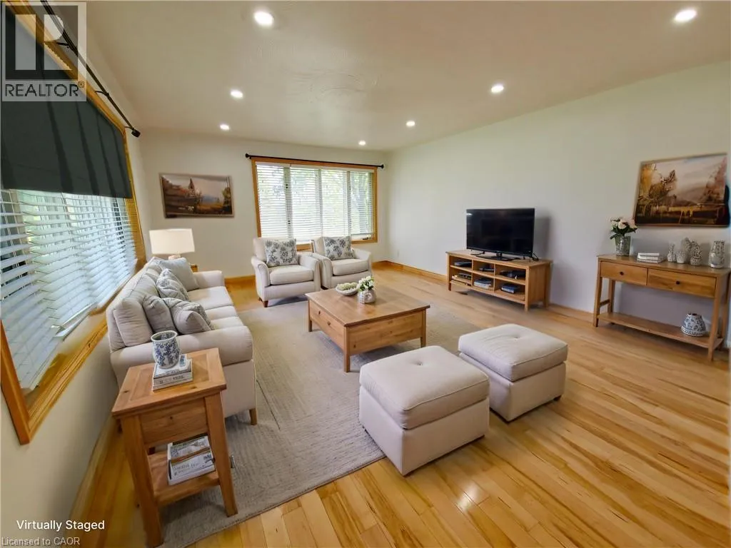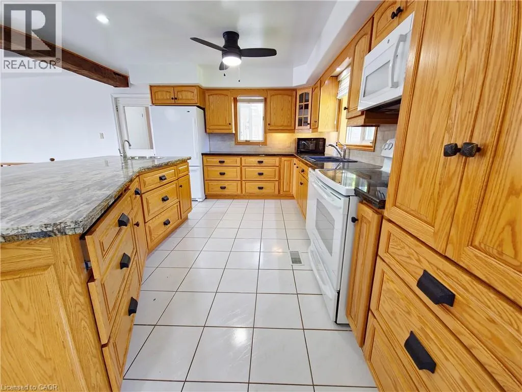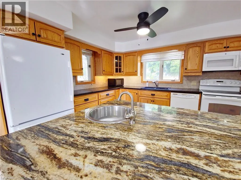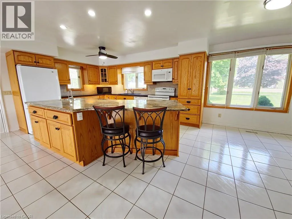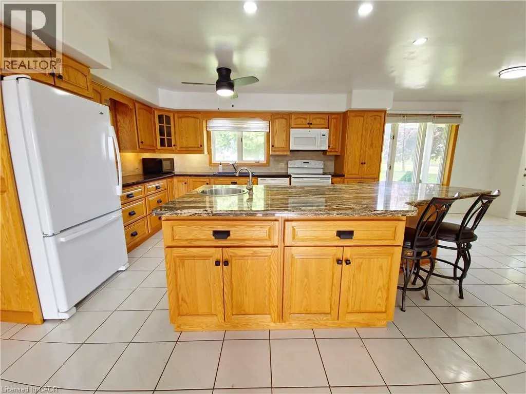 Highway 20 (Indian Line) to Cemetery Road Welcome to 17 Cemetery Rd! A custom built 1982 bungalow full of character, conveniently located mins from Hwy 403/Brantford, 46.82 acres with frontage on 2 roads. The main floor offers 2000 sq.ft of living space including the retrofitted garage, spacious living room with hardwood floors, a generous sized Primary bedroom, an additional guest room and a 4pc bathroom. Updated open concept kitchen with granite countertops and a 10â island ideal for entertaining, which opens to a dining room with 8â patio doors walking out to the upper deck with gorgeous views. An additional 1690 sq.ft of finished living space on the lower level with a spacious rec room, a beautiful stone fireplace, corner bar, additional bedroom with oversized windows letting in ample natural light, 3pc bath, laundry and multiple utility/storage/cold rooms, patio doors walkout to the 600 sq.ft deck for more views. Rustic garden shed with conc. Floor, hydro and metal roof. Approx 38ac of workable land incl random tile for excellent drainage, 40â x 100â metal clad shop separated into 40x30â insulated/heated bay w/16â ceilings, 16â overhead door with opener, concrete floor with hydro, and a 40x70â storage area with another powered garage door and 2 oversized doors for larger equipment. Extras â circular driveway, well and cistern, additional 5000+ sqft of indoor storage in the barn. (id:27476)