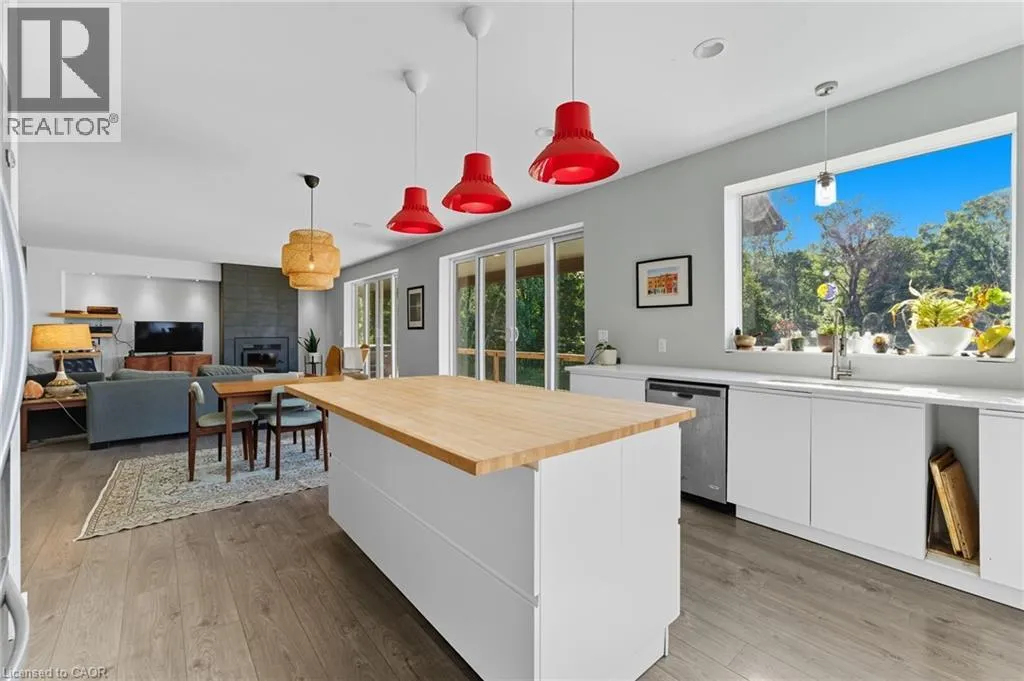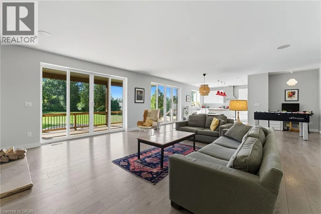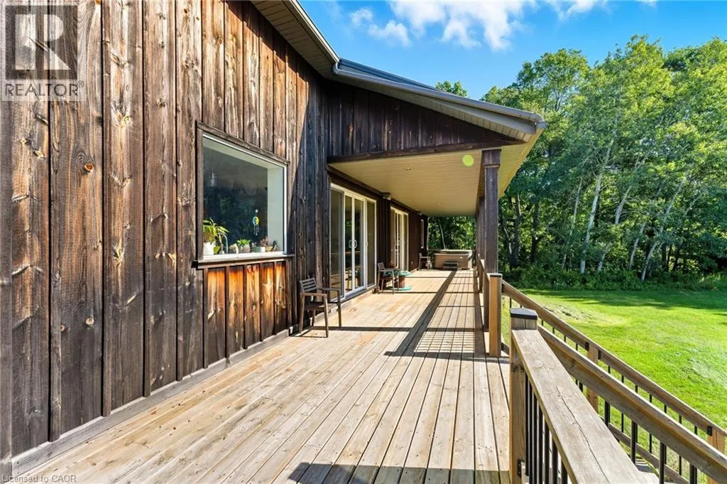 Mabee side Road (County Rd. 30) to Plowmans Line turn right, go to Carson Side Road, turn right to first road on left. house approx. 1/2 mile on left. Discover the perfect blend of privacy and entertaining with this exceptional country property with cottage vibes. 9 feet floor to ceiling concrete walls on both floors allows the space to feel expansive and open. This home offers a peaceful retreat with all the comforts of modern living. The custom built home features an open kitchen-dining-living space. The large windows frame the perfect nature scene from the backyard. The wood-burning fireplace creates the perfect ambiance for cozy nights amid the cold weather. Built-in speakers inside and out offers a way to change up the mood at any moment. Two sets of patio doors lead out to a spacious deck, complete with a space for a hot tubâideal for enjoying the tranquil surroundings year-round. Down the hall, you'll find a generously sized primary bedroom with a luxurious 5-piece ensuite, along with a second bedroom and a 4-piece main bathroom. The lower level offers nearly finished additional living space, including a third bedroom, a 4-piece bathroom, and a large recreational roomâperfect for a home theatre, games room, or family space. Outside, the private lot is framed by mature trees, offering both shade and seclusion. There is ample yard space to entertain, play, and throw the best get-togethers. (id:27476)