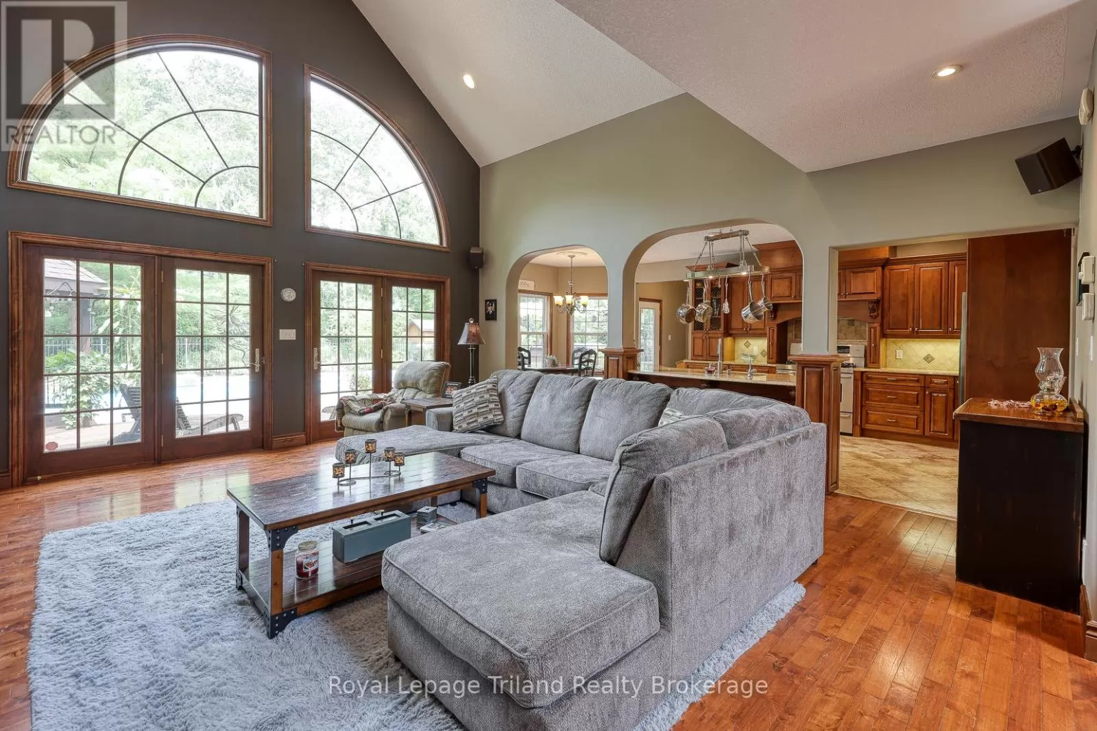 Cross Streets: Bell Mill Side Road. ** Directions: From HWY 3, turn south onto Bell Mill Side Road, turn West onto Plowman's Line, follow to 537. Experience the perfect blend of comfort, sophistication and serenity! Step into this country sanctuary just a few minutes south of Tillsonburg and rest assured you've found your "Home Sweet Home". With a sprawling 1.8 acres, rural panoramic views, a generous covered south facing front porch, mature landscaping, an outdoor oasis and an executive 4 bedroom home with over 3,000 square feet of finished space. Upon entry through the extra tall double doors you are consumed of love from the open concept plan that exudes timeless elegance. Any chef will be impressed by the well designed kitchen accented with granite counters, breakfast nook and a huge island w/ breakfast bar trimmed with modern arches. The Formal Dining Room is adjacent to the Kitchen and large enough for that 8 person farm table you've always wanted and there is already a fireplace present for you! The Great Room is adorned with a fireplace, hardwood flooring and a wall of windows facing your backyard oasis. A sunroom is accessorized with slate flooring, double door entry and access to the backyard. The Primary Suite is complete with a 5pc ensuite consisting of a jetted tub, corner glass shower, double vanity with solid wood cabinetry, a private water closet room and WI closet. Tucked behind the Kitchen is a laundry room with sink, storage & access to the dbl attached garage. A second staircase leads up to a private loft (second) Primary Suite with a 3pc bath. The main staircase welcomes you to the 3rd & 4th bedrooms, a 4pc bath and hallway overlooking the Great Room, Foyer and backyard view! The outdoor oasis must be seen - 18x36 inground salt water pool with rock waterfall (new pool liner September 2025), hot tub, gazebo, flagstone patio, expansive deck, outdoor stone wet bar plus there is lots of grass area, fire pit & a garden shed. This home offers endless opportunities for hosting gatherings or simply unwinding in its peaceful, mature country surroundings! (id:27476)