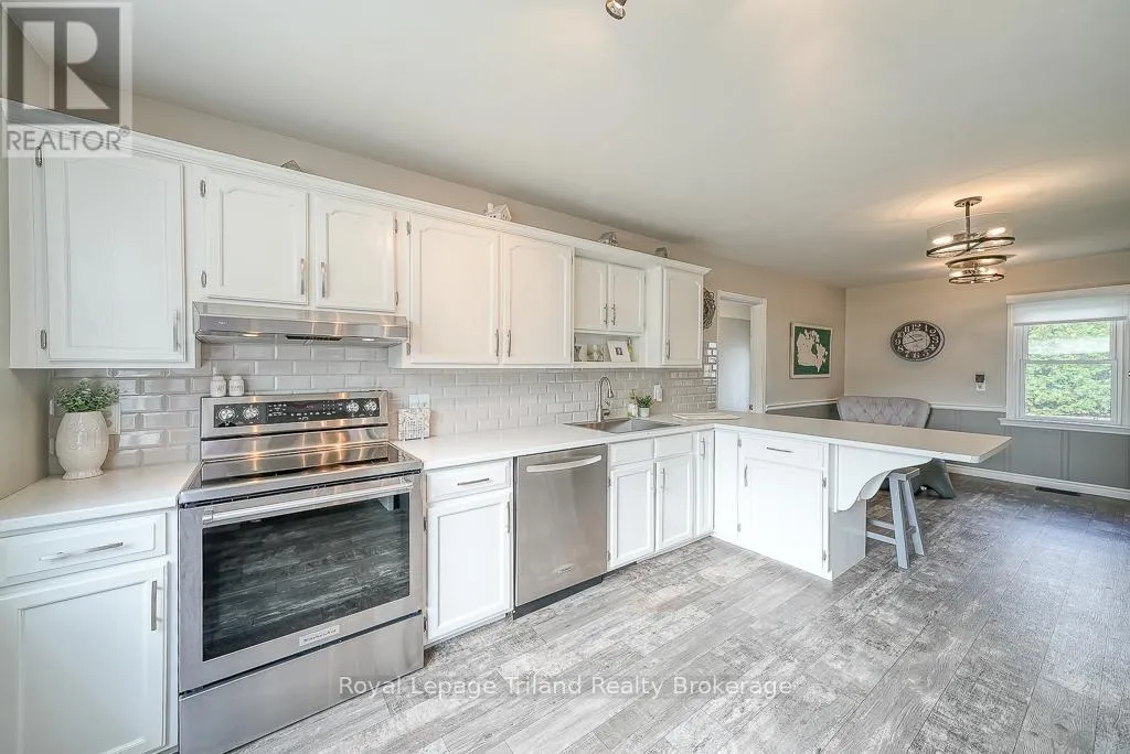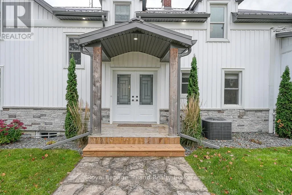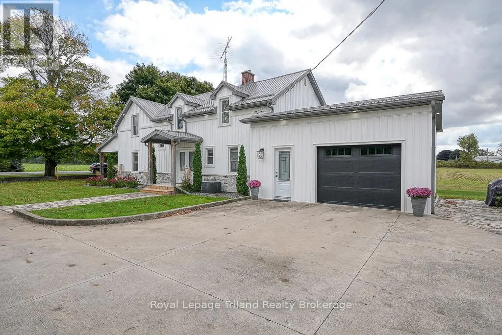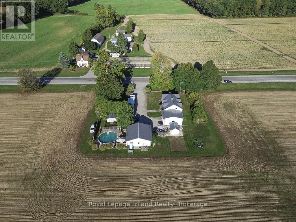 Highway 59 South of Courtland, past the \"S\" bends, property on the West side of the road before Andy's Corners. Country Paradise awaits you! Surrounded by farmland views this home is sure to impress with its 3 bedrooms, large rooms throughout, sprawling covered front porch, above ground swimming pool, detached and heated garage/shop and renovated inside AND outside! The main level has a generous renovated kitchen with breakfast nook. Formal dining room fit for large families including built-ins is adjacent to the kitchen. The oversized living room has a gas fireplace, crown molding and access to the covered front porch that is framed with white pine pillars. The side door entrance boasts a mudroom, laundry room complete with sink, counter and closet with handy access to attached garage. Upstairs are 3 sizeable bedrooms with the primary bedroom having ample closet space, and 5pc renovated bathroom. A walk-in storage closet in the hall landing plus a linen closet and lots of windows. Outside there are many things to enjoy including a concrete triple driveway, double detached garage (with heat & hydro), above ground pool with heater, garden shed and inground sprinklers. This home is magazine worthy and waiting for you to move in! New septic system installed September 2025. (id:27476)
