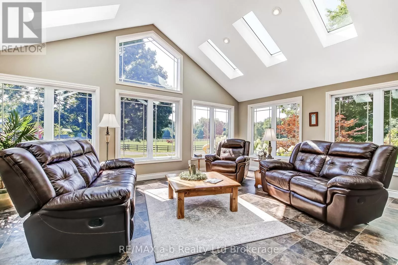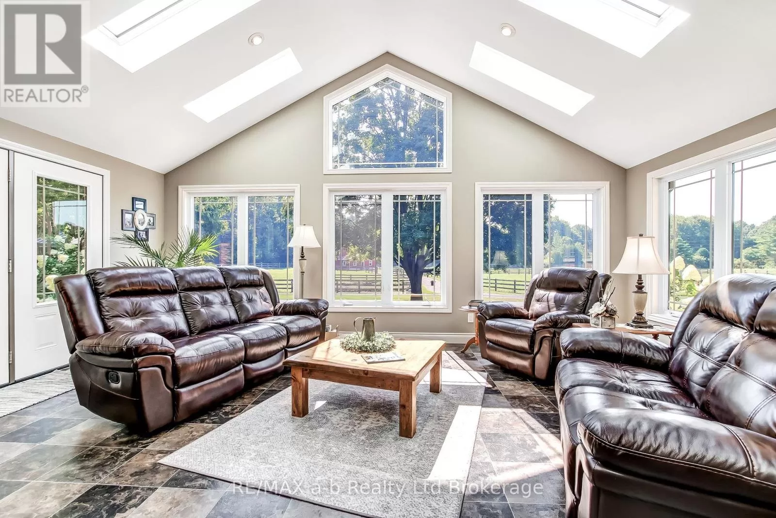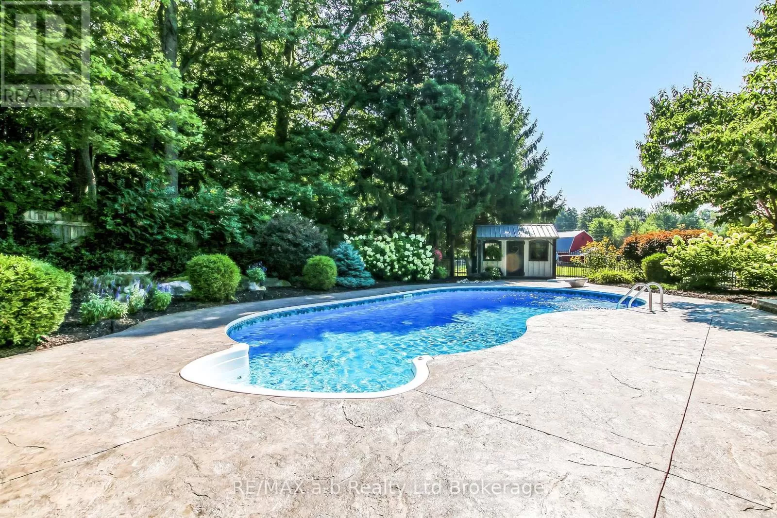 Cross Streets: Mabees Side Rd. (Reg.Rd.30); Burwell Road. ** Directions: South on Hwy #19. Turn left on Mabees Side Rd. (Reg.Rd.30) to Burwell Rd. Turn right. Serene, quiet, and elegant. Hard to describe this hobby farm with its nearly 9 acres, private pond, horse pastures, hip roof barn with stalls, hay storage, machine shop, and a renovated home sitting on small hill surrounded by tall trees. Within 10 minutes of Tillsonburg, the home with a curved driveway with a double car and heated garage, in ground swimming pool, pool house, irrigation, lighting, and a stand by generator, this home shows well during the day and night! Inside we have an oversized laundry/mudroom leading to a kitchen in a new additions with lots of windows, skylights, and surrounding views of the pastures. With three bedrooms on the main floor and two bathroom, and a large rec room and living room and another bathroom and bedroom in the walk out basement, this home has everything for a family or someone looking to take their horses or beef home! (id:27476)