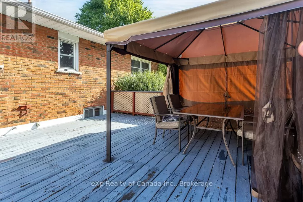 Cross Streets: Hwy 59. ** Directions: From Highway 59 turn east onto Highway 3/Main Street. Welcome to this solid all-brick bungalow, nestled on a generous 0.37-acre lot in the quiet community of Courtland. The main floor of the home offers a cozy living room with a fireplace, a large eat-in kitchen, 2 spacious bedrooms, and a bright 4-piece bathroom. The partially finished basement features a spacious rec room complete with a pool table-ideal for entertaining friends or family. Enjoy the outdoors on the welcoming front porch or host gatherings on the large back deck with a charming gazebo. The property also includes an attached 1-car garage and a large shed, providing plenty of storage space. This home is well-kept and full of potential, ready for your modern updates and personal touches. Don't miss a great opportunity to invest in a solid home with character, space, and room to grow in the heart of Courtland! (id:27476)