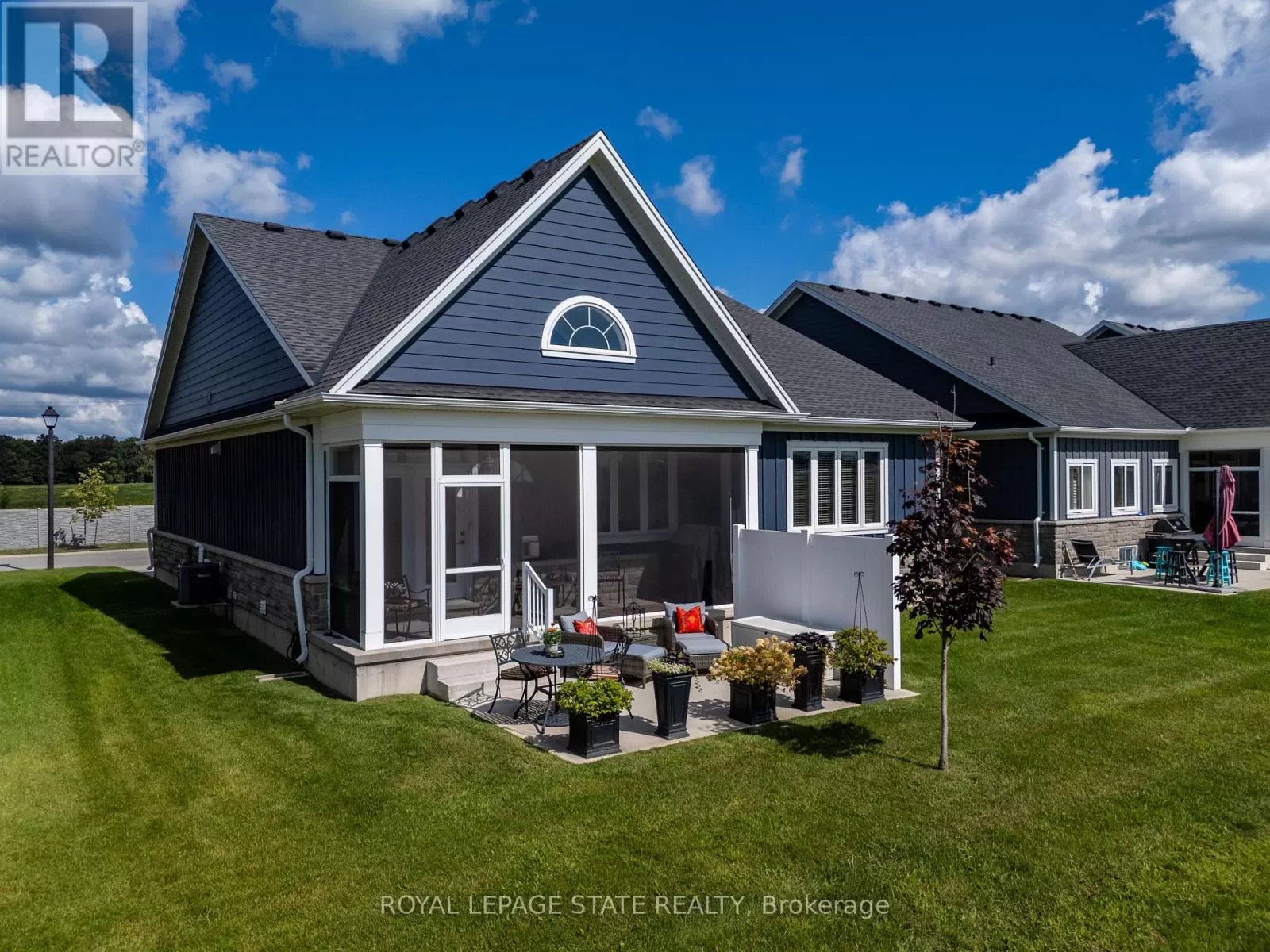 Cross Streets: New Lakeshore Rd. ** Directions: From Hwy 6 South- Turn left onto Lakeview Ave, Turn left onto New Lakeshore Rd, Turn left onto Dover Coast Blvd, and Turn left onto Schooner Dr. Gorgeous sought after bungalow style home on the 16th hole overlooking the fairway and green of a championship golf course. This home, built in 2018, is perfectly situated in the tranquil master planned adult lifestyle community Dover Coast which is dedicated to designing a carefree resort style living. Welcome to this stunning bungalow that offers a perfect blend of style and comfort. As you step inside, you are welcomed by a large foyer, bright and spacious Great Room with vaulted ceilings, NG fireplace, and door to the rear screened in porch. The kitchen is well appointed with chic "Anew" grey cabinetry, granite counters, and ample storage and counter space. The main floor features two bedrooms and an office, laundry and inside entry from the attached garage. The primary bedroom boasts 3-piece ensuite featuring a glass and tile shower, and large walk in closet. The second bedroom has ensuite privileges to the main 4 piece bath. In the lower level of the home you will find a large bedroom, two piece bath, high ceilings, high efficiency furnace, air exchanger and on demand water heater. Outside this home offers concrete drive with space for 4 cars, concrete walks, attached two car garage, relaxing covered front porch, screened-in back porch and rear concrete patio with beautifully landscaped yard and gardens. Covered in the condo fees are lawn care and cutting, irrigation, snow removal, the dog park and pickleball courts. Dover Coast residents also enjoy access to a tiered waterfront sun deck and swimming area located behind Davids Restaurant. This property is a must-see for anyone looking for a beautiful, meticulously maintained home in a fantastic location. Dont miss the opportunity to make this your dream home. (id:27476)