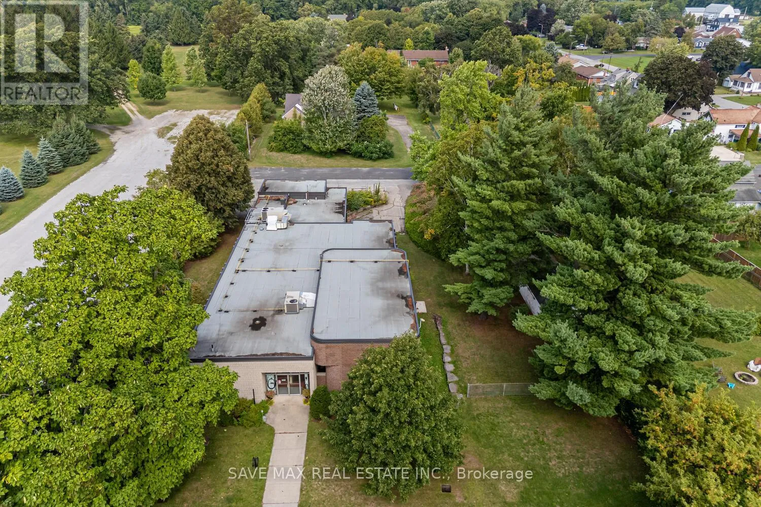 12 concession Rd and George street The main floor features a large reception area and lobby, a variety of private and general offices, a board room and 4 washrooms. There is a front and rear entrance. Floors : Terrazzo, ceramic tile, carpet Walls: Painted gyproc Ceilings: Suspended ceiling tile Trim: Painted metal. The basement features two large open general office areas, a rear general office, lunch room with a kitchenette and mechanical rooms. Asphalt paved front and rear driveways. Asphalt paved front and rear parking lots. Exterior lighting, Landscaped yards, including mature trees Total land area is 0.83 acres. (id:27476)