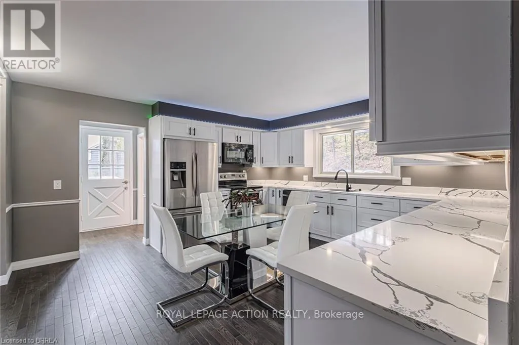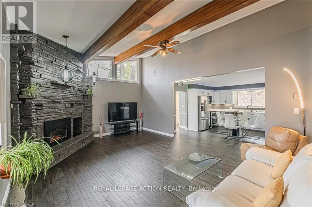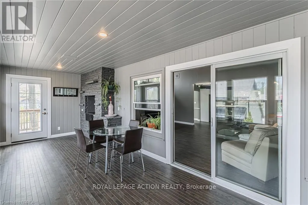 Cross Streets: Douglas Street. ** Directions: Take Hwy 6 over lift bridge, turn left on Grand Street (the upper road) - property is less than 1 minute up the road - on the left hand side. Experience Port Dover living in this updated bungalow overlooking the channel! With a grand total of over 3300 sq. ft, this home offers 4 bedrooms, 3 bathrooms, and 2 kitchens - this versatile layout is ideal for possible Air BNB, multi-generational living or accommodating guests. A double door entry leads to a large foyer with vaulted ceilings and hardwood flooring that extends throughout the main level. The striking newly designed eat-in kitchen showcases Cortez counters, under/upper mount lighting & contemporary style cabinetry. This space opens to the great room that features beamed vaulted ceilings, gas fireplace with stone back drop & Clerestory windows that flood the space with natural light- from here, a sliding door leads you to a 4-season sunroom complete with charcoal grilling station & garden door access to a deck area. The vaulted beams span across an open ceiling over an office area (that could act as an additional bedroom) and continue into the massive primary bedroom. This space features 3 double closets, vaulted ceilings, 5-piece ensuite & views of the canal. A conveniently located laundry area off the kitchen provides access to a side deck & driveway & a 3-piece bath completes the main level. The lower level is updated & perfectly set up as an in-law suite. It offers a full kitchen, dining area, living room with fireplace, three bedrooms, a 3-piece bath & laundry area. It also features a bright sunroom with a view of the channel & side door entry to the lower deck. An optional secondary access off this sitting room leads to another sunroom that connects to the main living area. The multi-purpose layout and entry points of this move-in ready home provides endless possibilities for the new owner! Experience popular Lake Erie's many amenities & attractions including Live Theatre, Music in the Park, Links Golf Course, Fine Dining, Eclectic Shops, Bistros/Eateries & Famous Beach Front. (id:27476)