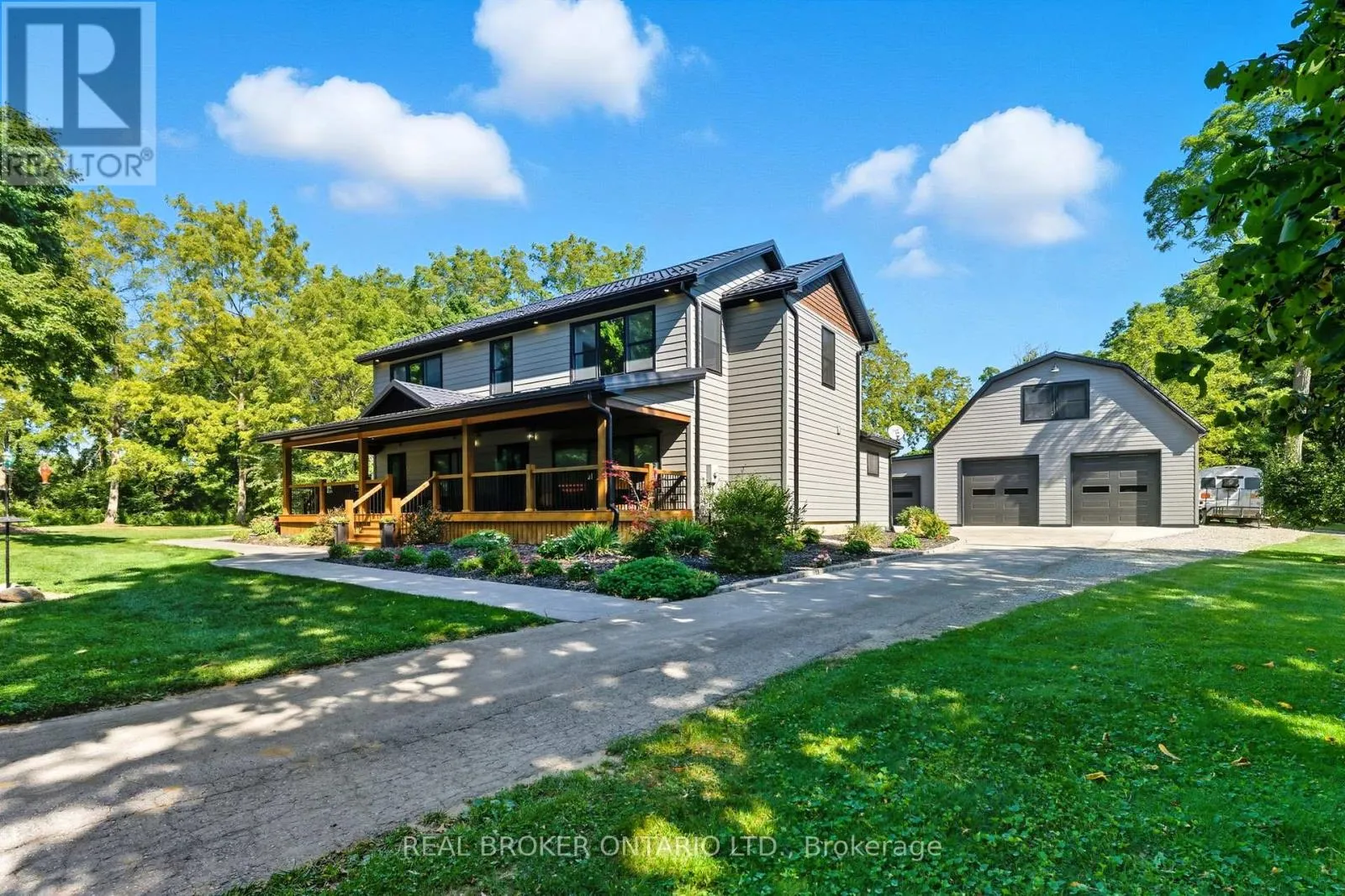 NORTH RD- LAKESHORE RD Welcome to your private country retreat just minutes from Port Burwell and the shores of Lake Erie! This beautifully crafted 4+1 bedroom, 2.5-bathroom home sits on a picturesque 4.28-acre lot and offers the perfect blend of modern living and rural charm. Step onto the covered cedar front porch and into an open-concept main floor designed for both style and function. The bright and airy living space features engineered hardwood flooring and flows seamlessly into a gourmet kitchen, complete with stunning white floor-to-ceiling Pioneer cabinetry, a contrasting black island with granite countertops, and a massive walk-in pantry. A main floor bedroom, full 4-piece bathroom, and convenient laundry room round out this level. Upstairs, you'll find a spacious primary bedroom with a large walk-in closet, two additional generous-sized bedrooms, and a luxurious 4-piece bathroom featuring a glass walk-in shower. The fully finished basement extends your living space with an additional bedroom, large rec room, and ample storage, perfect for a growing family or guests. Outside, the possibilities are endless! The 32' x 40' shop is a dream for hobbyists or business owners, featuring two 10' x 10' doors, a loft area, two separate 100-amp panels (with 200 amps at the pole), a cozy wood stove, and heated floors. Other highlights include a durable steel roof, Hardie Board exterior siding, and unbeatable privacy, all just minutes from the beach, marina, trails, and village amenities. Whether you're looking for peaceful country living, space to grow, or a functional live/work setup-this one checks all the boxes! (id:27476)