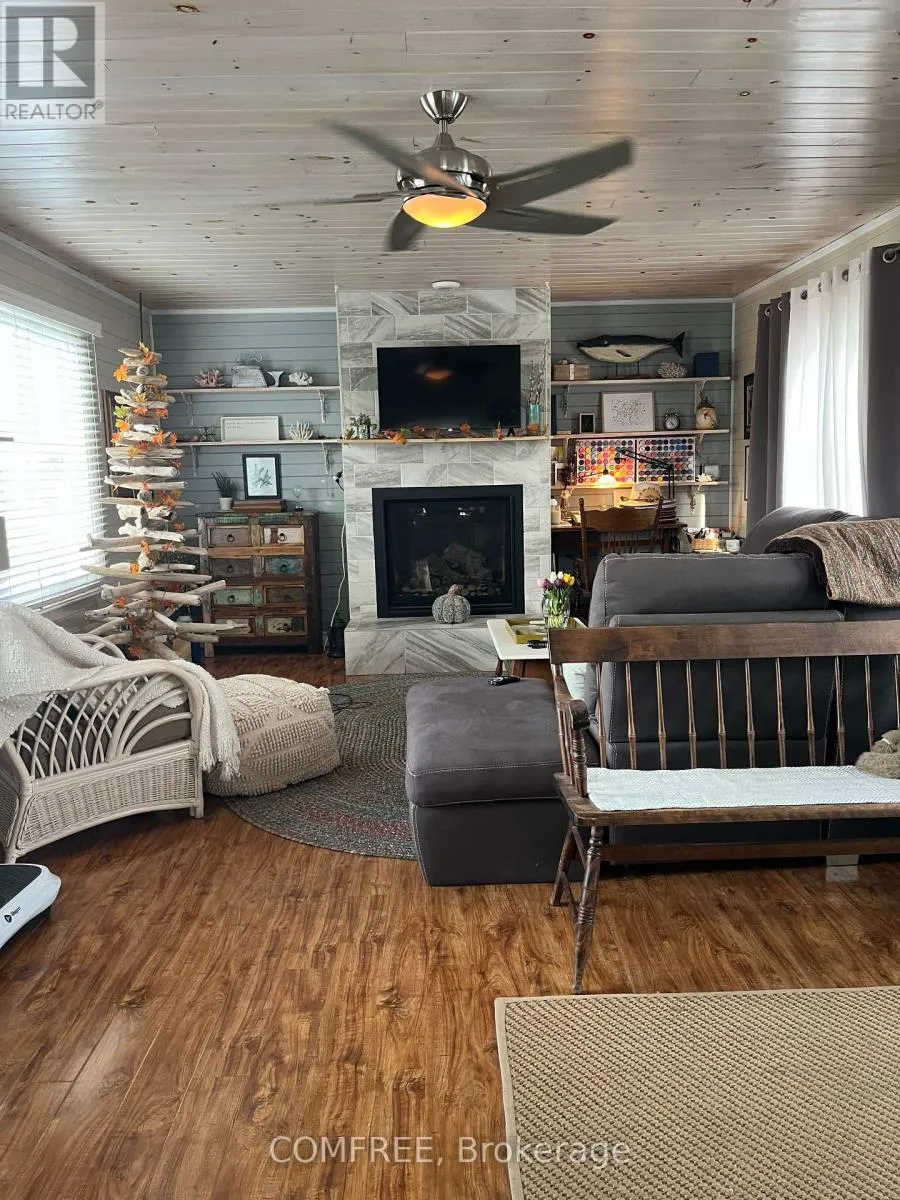 Cross Streets: 59 Hwy - Erie Blvd. ** Directions: 59 Hwy to Erie Blvd. Year round cottage, located on a channel to Long Point Bay. Shared deeded beachfront lot with stairway to beach. Cottage has 2 bedrooms on the upper floor along with a bathroom, kitchen and living room. Master bedroom has a walkout balcony. Lower ground floor is not heated and has garage, one bedroom/ mudroom with stairs to kitchen. There is a boathouse lounge with half bath and access to dock and boathouse. . Boathouse holds up to 26 boat with automatic lift and a 30dock. Cottage has electric baseboards but mainly use propane fireplace and ductless AC/Heat unit which is rental from Enercare. Property currently has fibre internet with strong signal with Execulink. Large upper patio with bbq that is great for quiet evenings or fun with friends. Cistern water and septic tank. Both have local services available. (id:27476)