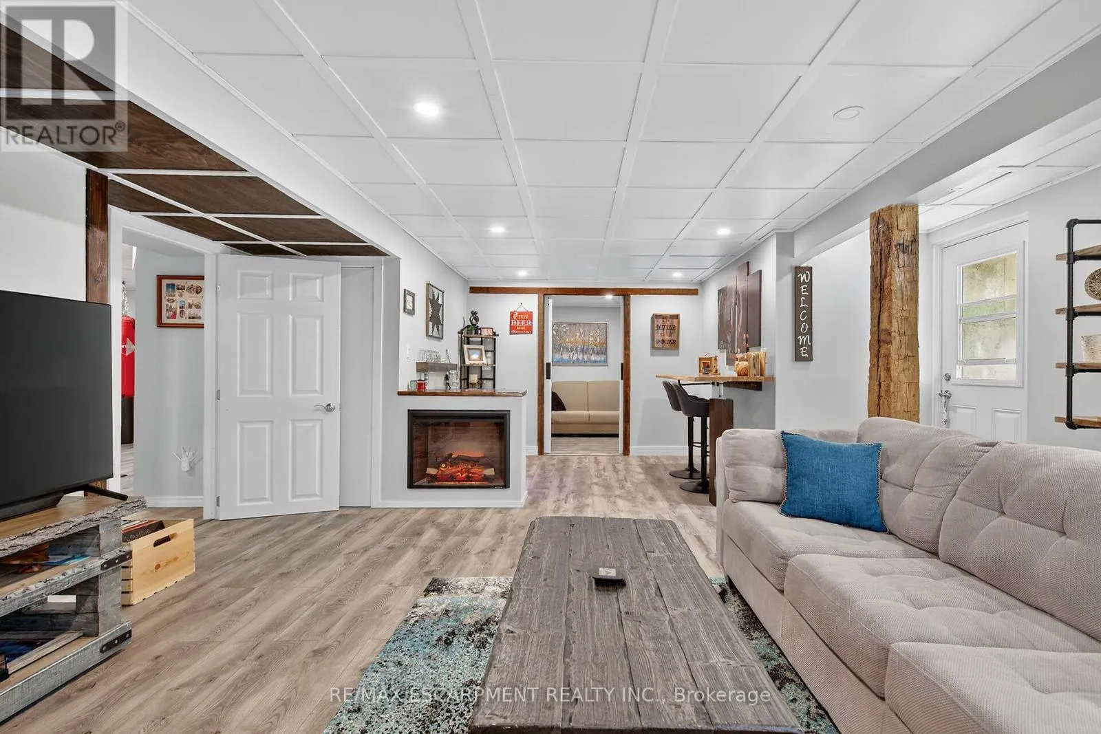 Cross Streets: Cockshutt Rd. ** Directions: Hwy 6 (Main St) to Prospect St to Dover Mills Road or Hwy 5 (Cockshutt Rd) to Dover Mills Rd. Welcome to this extensively updated 2+2 bdrm, 2 bath metal-roofed bungalow in one of Port Dover's most sought-after neighbourhoods! Enjoy the private premium-sized lot, situated across from peaceful farmland, with fenced pool-ready backyard. Entertain in the stylish living room, boasting linear fireplace framed by reclaimed wood. Host family and friends in the huge eat-in kitchen featuring walk-in pantry, new appliances, tons of storage and a southerly walk-out to new cedar deck and high-end gazebo with metal louvered roof. Main floor bath renovated top-to-bottom in 2025 with rainfall tiled shower. Too many upgrades to list, including new windows throughout, furnace/AC, luxury vinyl flooring, 200-amp panel. Spacious and tastefully renovated basement with private entrance offers in-law or rental income potential. Short walk to waterfall and nature trails; minutes from Port Dover's vibrant downtown, schools and sandy beach. (id:27476)