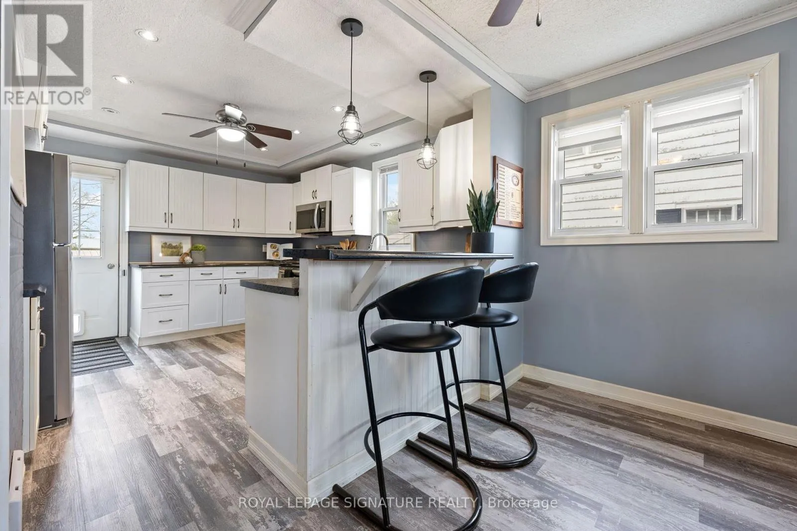 Main Street turn north on Nelson Street East Attention First-Time Homebuyers, Small Families, And Savvy Investors! Discover this fully renovated 3-bedroom gem in the heart of Port Dover, where coastal charm meets everyday convenience. Perfectly situated within walking distance to downtown shops and restaurants, the sandy beach, scenic Silver Lake Park, nature trails, and local schools, this thoughtfully updated home offers the lifestyle you've been searching for. Step inside to a spacious, sun-filled living room ideal for relaxing or entertaining, and a large eat-in kitchen featuring brand-new stainless steel appliances (24) and abundant counter space for your culinary creations. Upstairs, you'll find three comfortable bedrooms and a beautifully refreshed 4-piece bath complete with quartz counters and a new Bath Fitter tub and shower surround. Nearly every inch of this home has been enhanced for modern living, with stylish new light fixtures inside and out, sleek new baseboards, new flooring and carpeting throughout, updated ductwork, upgraded insulation, and striking new siding, soffits, fascia, eavestroughs, and guards. Energy efficiency has been improved with spray-foamed sill plates around the home and portions of the basement newly spray-foamed, drywalled, and painted (25). Enjoy peace of mind with newer windows, a new A/C unit, and durable shingles installed in 2020. Outside, escape to your fully fenced yard a private oasis featuring a newly extended upper deck, lower deck, and lush green space for outdoor entertaining. The mutual driveway provides each owner with their own designated side for parking, with no parking issues, and the shared garage is divided by an interior wall for added convenience. All appliances are included for a smooth, stress-free move. With the majority of upgrades completed in 2023, plus the added touch of a colourful new Govee light on the front porch, this turnkey property invites you to settle in and enjoy all that Port Dover's vibrant lakeside community has to offer! (id:27476)
