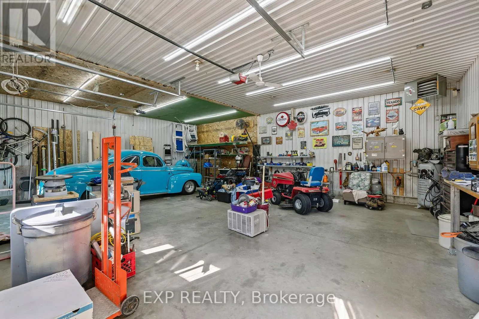 Cross Streets: Hwy 24. ** Directions: West from Hwy 24. Looking for the home of your dreams in the country with a shop? This warm and inviting all-brick bungalow sits on a picturesque 0.76-acre lot and boasts a huge 28' x 36' workshop/garage-the ideal setup for hobbyists, tradespeople, or anyone craving extra space. Meticulously cared for, this beautifully maintained home showcases thoughtful updates inside and out. Step inside to discover a bright, light-filled layout featuring a modern eat-in kitchen that opens seamlessly to the living room, complete with pot lights and a stunning electric fireplace with custom mantel. The main floor offers 2 spacious bedrooms, 2 full bathrooms, and the convenience of main-floor laundry. A seasonal sunroom at the back of the home invites relaxation, offering peaceful views of your very own slice of country paradise. The lower level impresses with a large rec room and bar area, perfect for entertaining, plus abundant storage and potential to add a 3rd bedroom if desired. Step outside to enjoy the new concrete patio (2025) with hot tub and outdoor bathroom (2025), ideal for summer gatherings. The new driveway (2025) and new composite front porch with glass railings add to the home's curb appeal, while the pergola off the shop creates a perfect outdoor retreat. The detached heated workshop/garage features a steel roof and plenty of space for projects, vehicles, or toys. Nature lovers will appreciate the raspberry and strawberry bushes, vegetable gardens, and apple trees, along with a large shed for your lawn tractor and garden tools. Surrounded by tranquil countryside views, this property offers the perfect blend of comfort, functionality, and rural charm. Book your showing today - homes like this don't come around often! (id:27476)