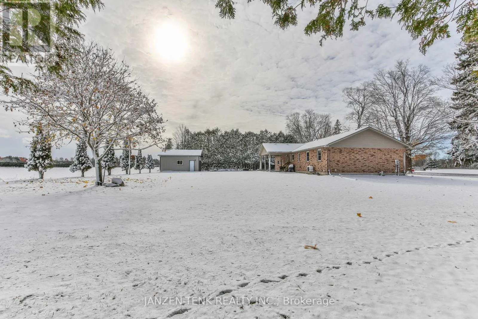 Cross Streets: Glen Meyer Rd/ 1st Conc. ** Directions: FROM REGIONAL RD 23, WEST ON 1ST CONCESSION, PROPERTY ON EAST SIDE. Country Living Made Easy! You'll love this cozy 3-bedroom, 2-bath brick bungalow set on a beautiful 0.72-acre lot backing onto open fields. The main floor features a bright kitchen, laundry room, and comfortable living spaces. Downstairs, there's a big basement with an extra two bedrooms, tons of storage, and space to finish a future family room. Plus, a handy shop for your hobbies or extra storage! Enjoy peaceful country living just minutes from town. (id:27476)