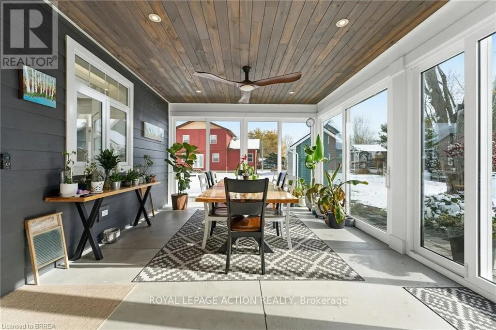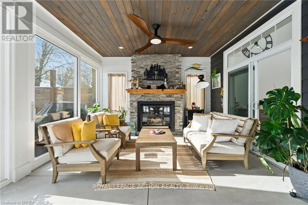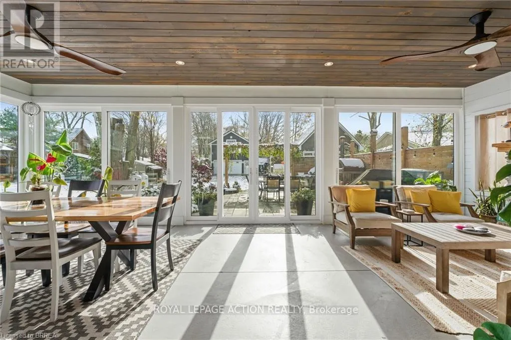 Cross Streets: Cedar Street. ** Directions: Head South on Turkey Point Road, turn right on Cedar Street, turn right on Arnold Street, property on left. Luxury Meets Laid-Back Beach Living ?? Just a 5-minute stroll to the sandy shores of Turkey Point, this breathtaking 2020 custom-built home blends modern luxury with the easy charm of beachside life. From its metal roof and premium PVC siding to the detailed craftsmanship throughout, this home was built to impress-and built to last. Step inside and fall in love with the grand open-concept design, soaring 19' ceilings, and in-floor heating that keeps every step warm. The chef's kitchen is a true showpiece, featuring high-end Thermador appliances, a massive 9'x4' island, and the perfect flow for entertaining. Gather around the fireplace, enjoy dinner with friends, or take your morning coffee to the sunroom and listen to the sounds of nature. The main floor primary suite feels like a luxury retreat with its private spa-inspired ensuite and walk-in closet. Upstairs, two spacious bedrooms and a 4-piece bath offer the perfect space for family or guests. Outdoor living is simply unmatched-relax on the covered porch, unwind on the upper balcony, or cozy up by the fireplace in the 4-season sunroom. The detached 1.5-car garage includes a 9.5' covered carport and a beautiful 504 sqft bachelor apartment (bunkie) with separate access-ideal for guests or extra income. Every inch of this property exudes quality, style, and attention to detail. Homes like this rarely come available in Turkey Point. Come see what modern beach living really feels like-this one will take your breath away. (id:27476)