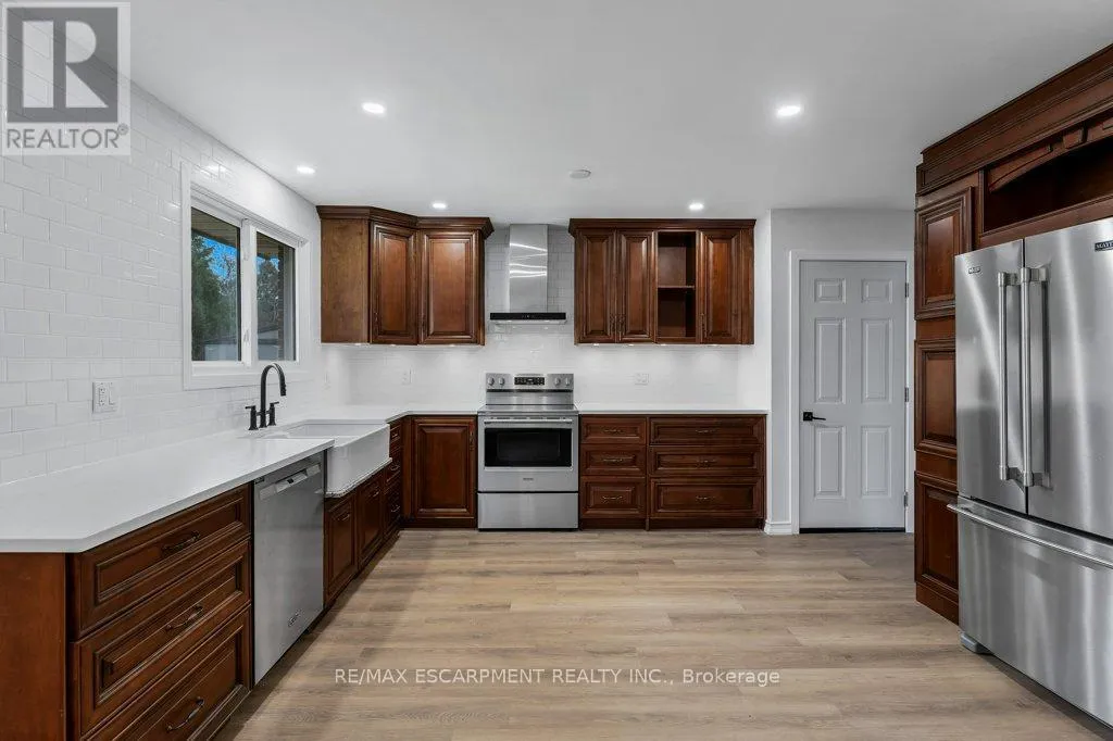 Cross Streets: Lingwood Drive. ** Directions: See map URL. Welcome Home to 14 Orchard Crescent. Wonderful 3+1 bedroom, 2 bath backsplit with Full In-Law Suite in the picturesque town of Waterford - a perfect opportunity for multi-generational living. The main level affords a recently refreshed eat-in kitchen, brand-new flooring and new windows installed (2024). (Front window replaced previously). Upstairs you will find 3 bedrooms with new flooring, in-suite laundry, and a full bath. Head down to the first lower level where you'll find a spacious family room with woodstove, large above-grade windows, and a second kitchen with breakfast bar. Private entrance to the backyard makes this a complete in-law suite. A versatile 10'x16' bunkie/mancave/she-shed for hobbies or relaxation. Oversized pie-shaped lot on a quiet crescent with parking for 5, plus garage. Get ready to explore the Waterford Ponds, Heritage Trail, antique markets & local breweries. Conservation areas nearby for paddling, fishing, or simply enjoying the peaceful countryside. Note: some pictures are virtually staged. (id:27476)