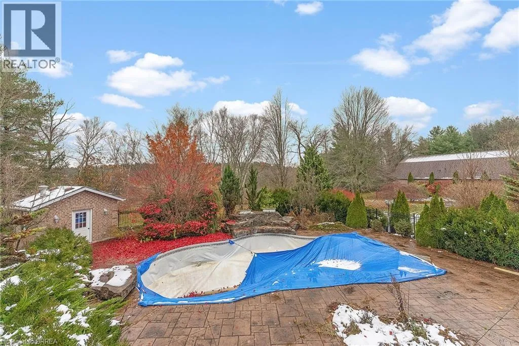 HWY 3 TO CHARLOTTEVILLE Exceptional acreage living (50+) featuring spacious outbuildings, pastoral forest setting, brick bungalow accessible with walkout, fully landscaped grounds and resort like pool area. Offering three main level bedrooms, a separate garage outbuilding with potential living quarters and services, and yet another additional barn with endless monetization possibilities, this one of a kind executive offering is sure to impress anyone seeking the privileges of privacy, nature and additional dwelling spaces. (id:27476)